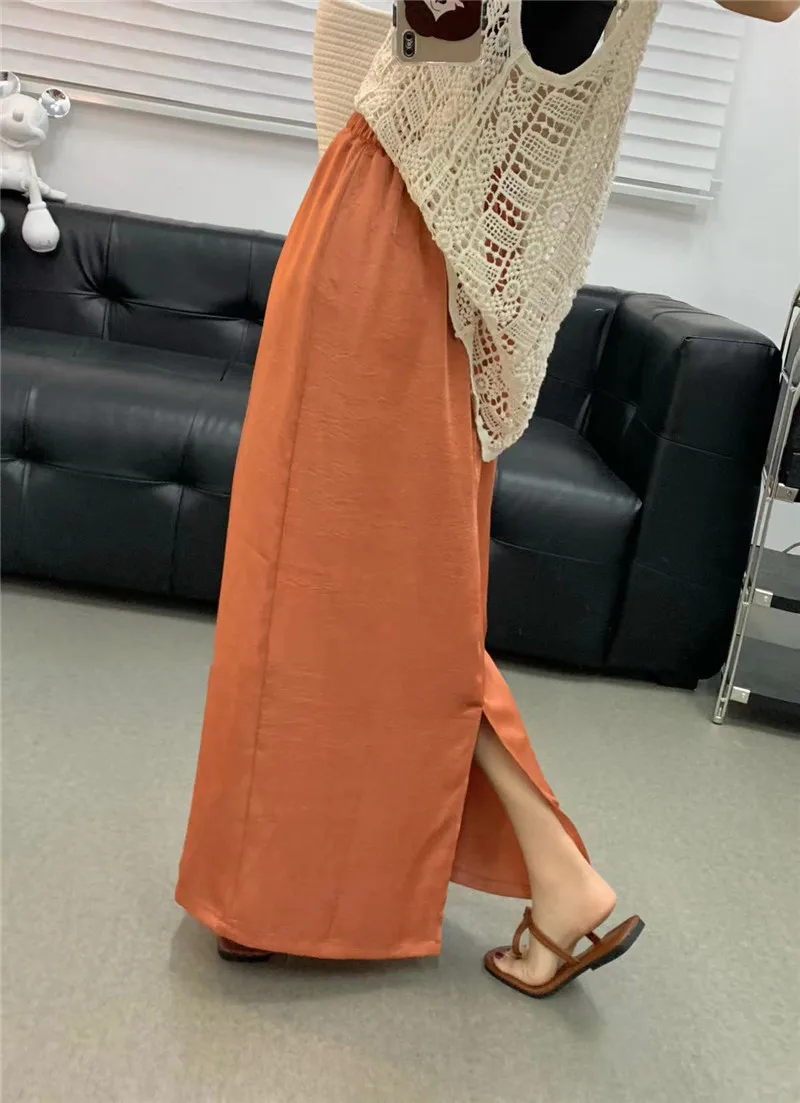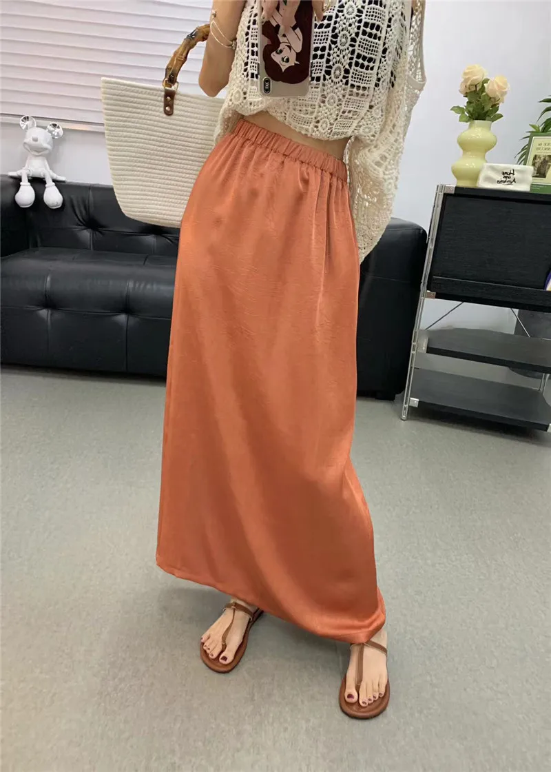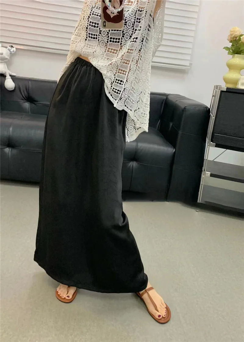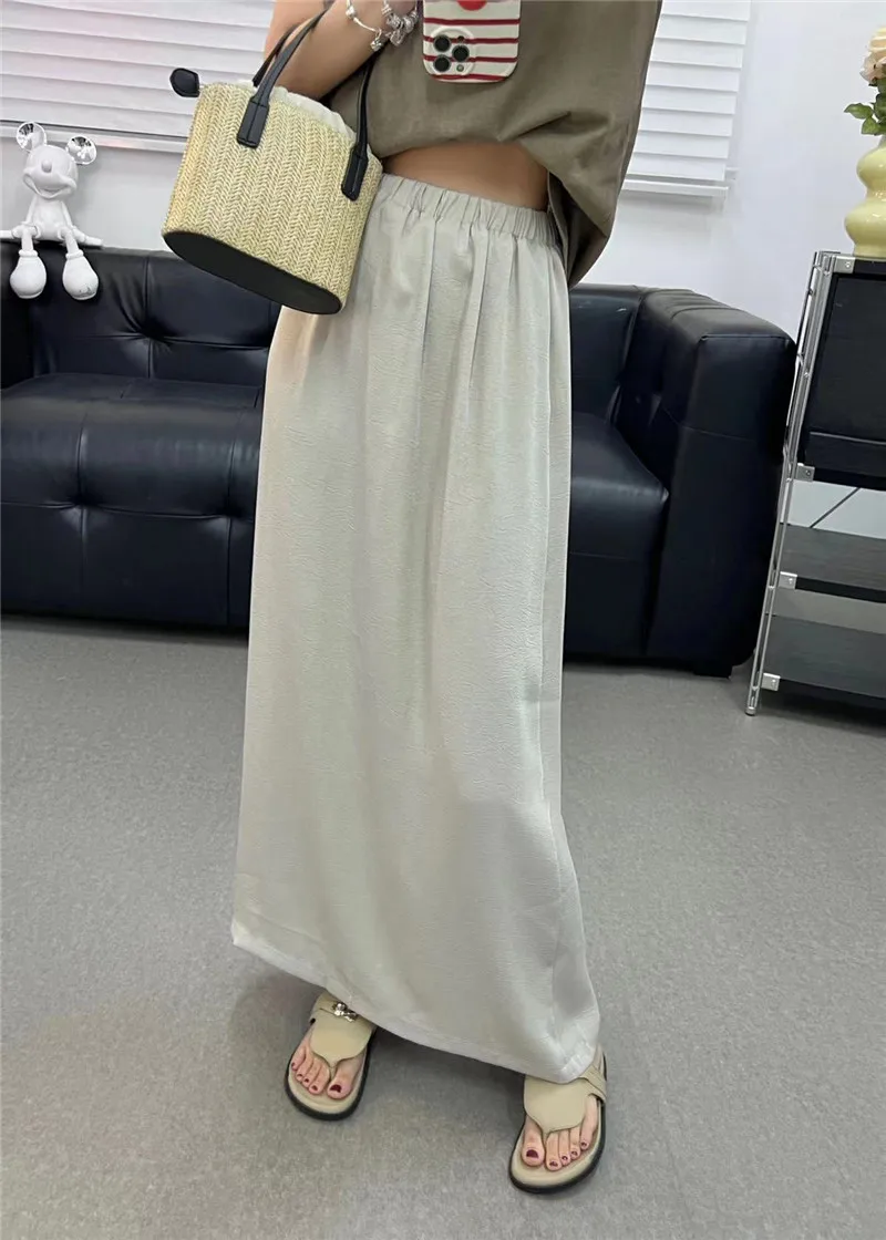 Woman's Elastic Waist Skirt Korean Fashion Vintage Style Ruched Leisure Maxi Skirts Women Elegant Temperament Jupes Black Khaki