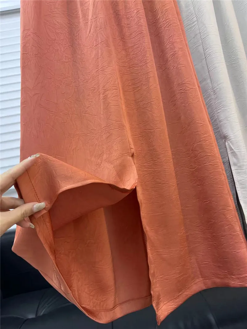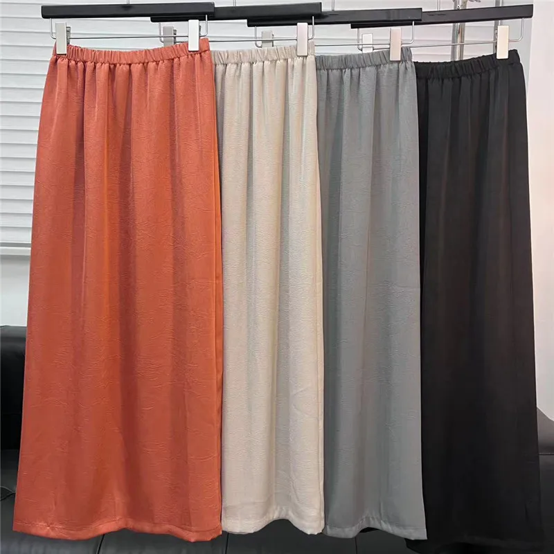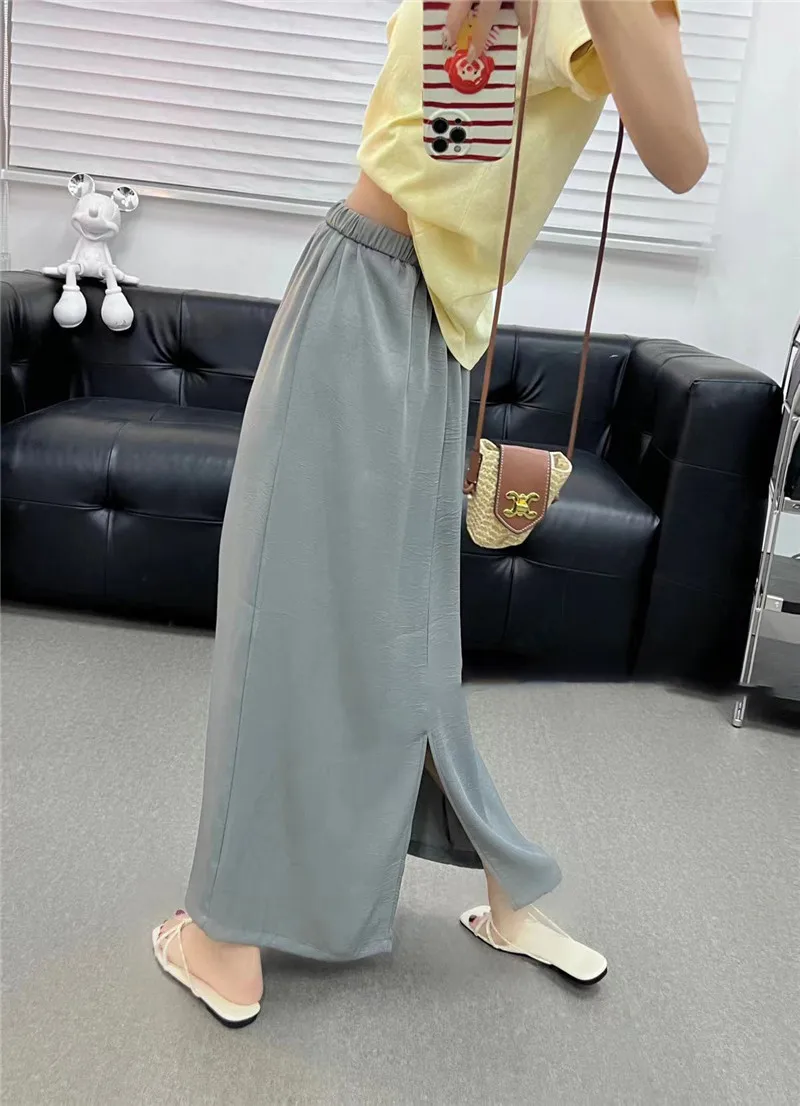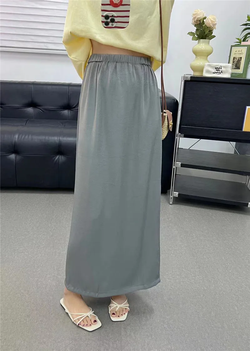 Woman's Elastic Waist Skirt Korean Fashion Vintage Style Ruched Leisure Maxi Skirts Women Elegant Temperament Jupes Black Khaki