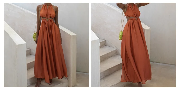 Women Casual Beach Crochet Summer Dress Evening Dress White Formal Ins Summer Halter Maxi Long Sexy Ladies Dress hollow Out Boho
