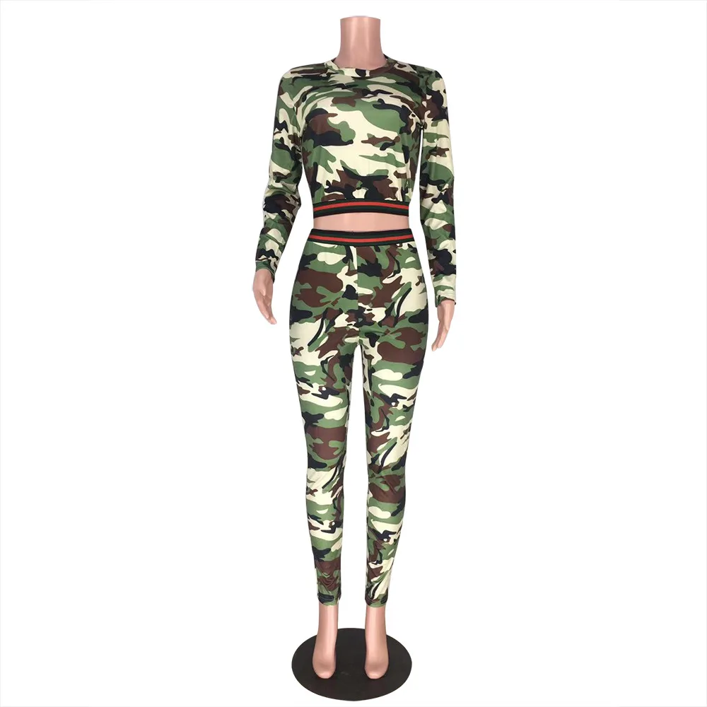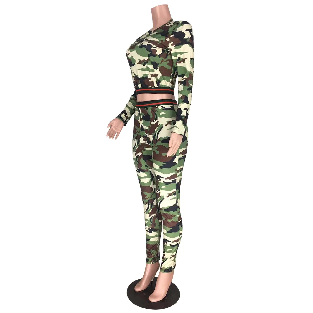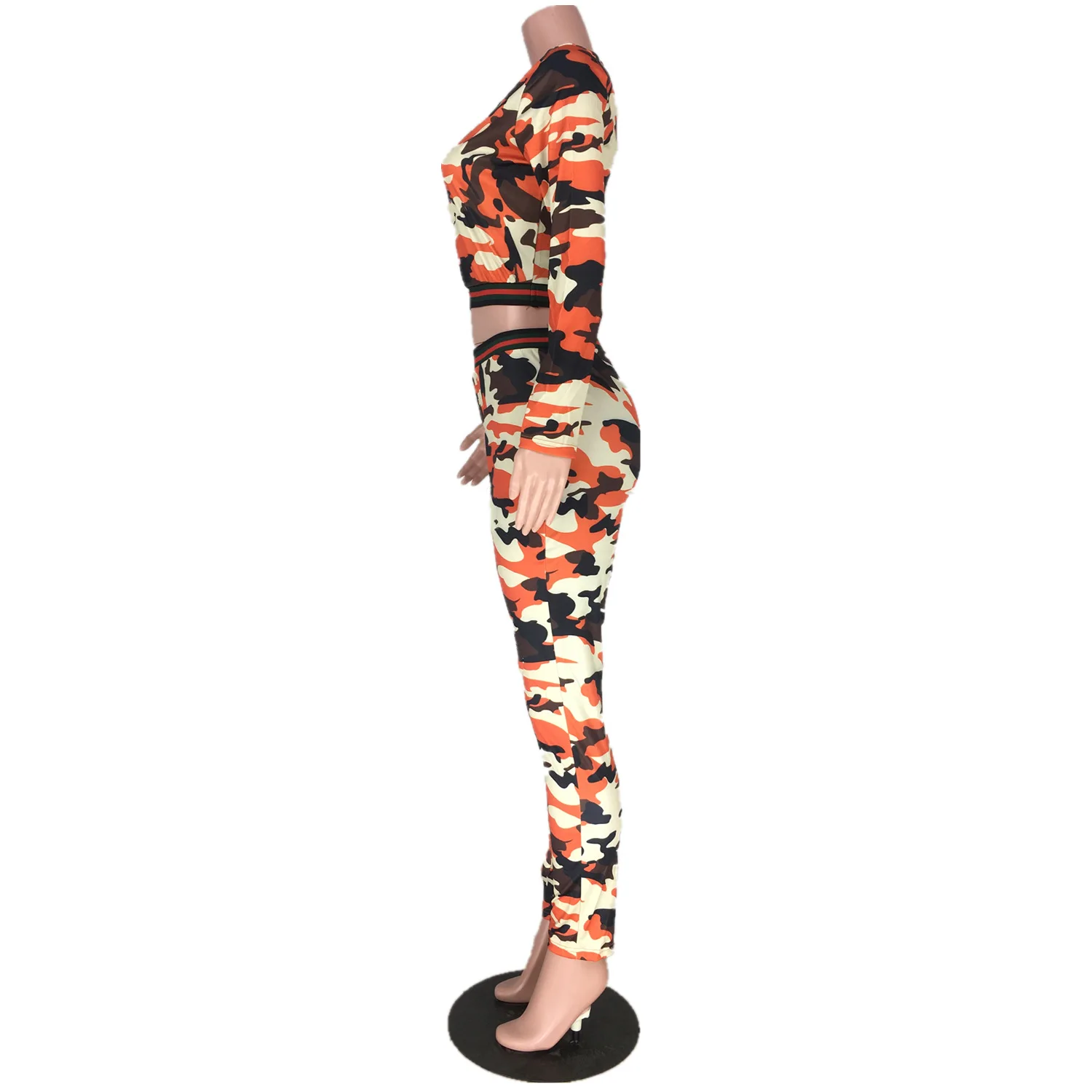 Women Casual Camo 2 Piece Outfits Jogging Suits Sweatsuit Long Sleeve Crop Top Leggings Pants Set Tracksuits