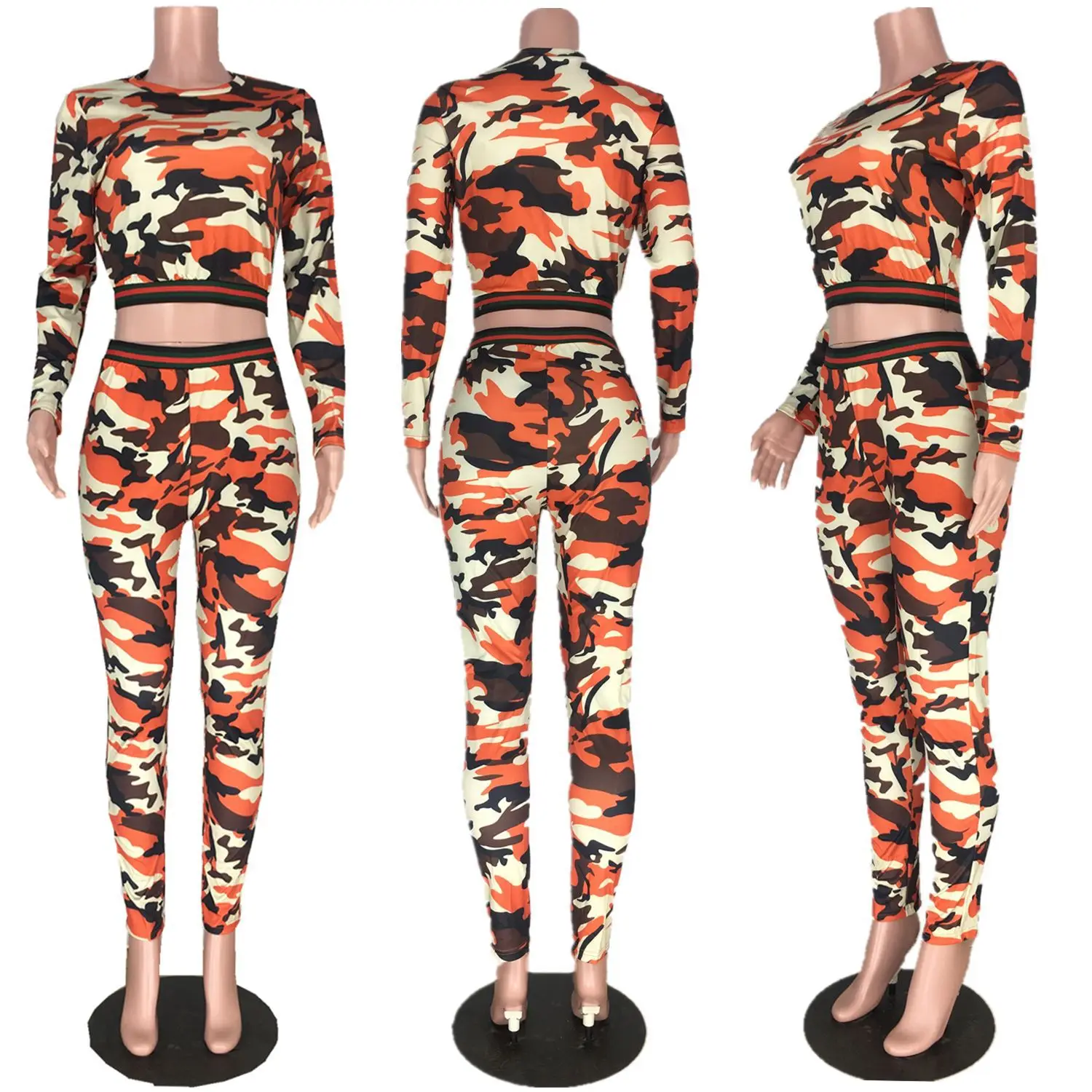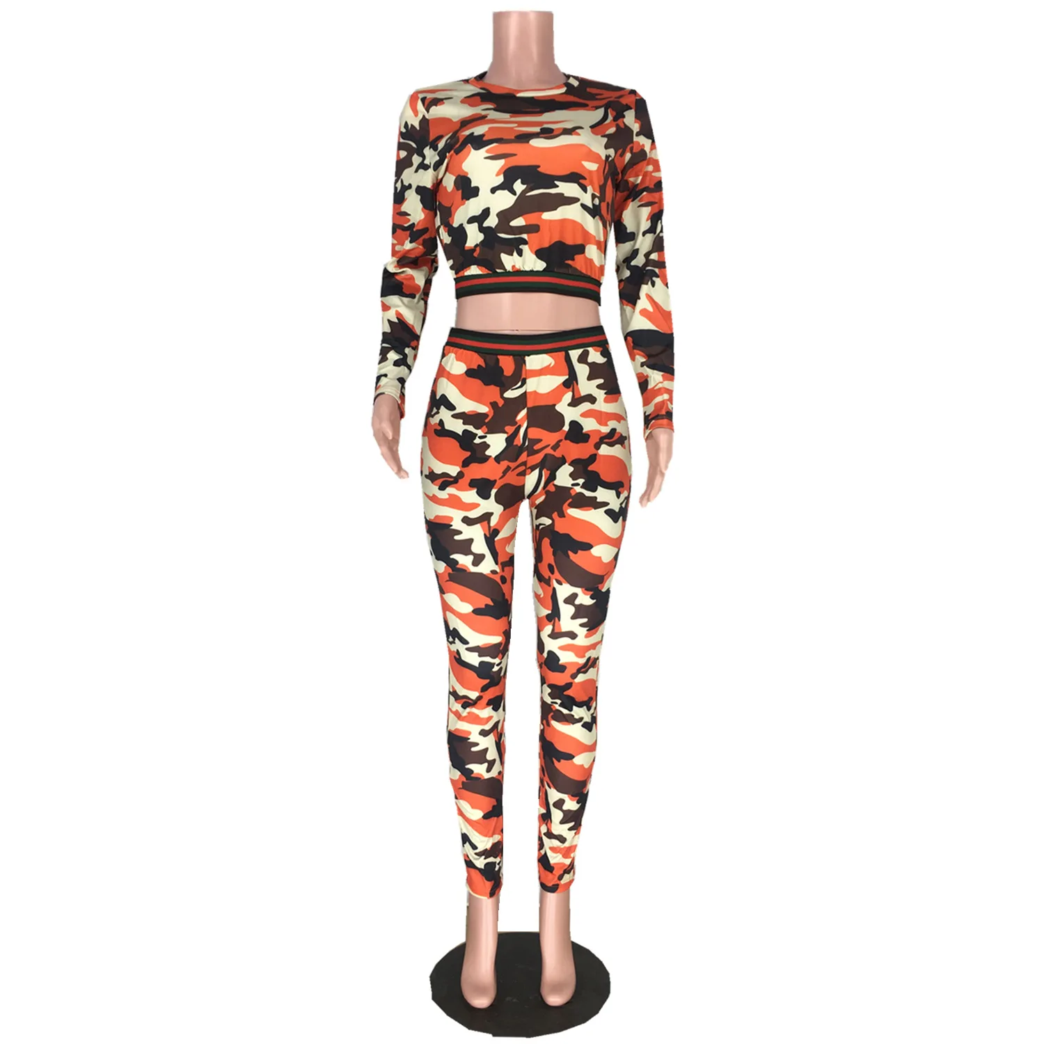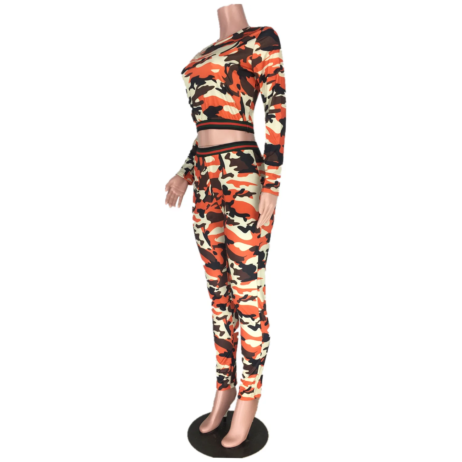 Women Casual Camo 2 Piece Outfits Jogging Suits Sweatsuit Long Sleeve Crop Top Leggings Pants Set Tracksuits