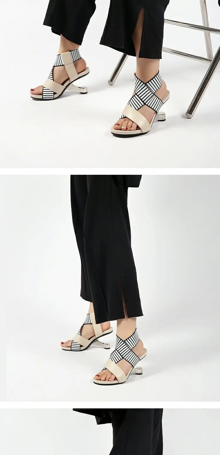 Women Casual Sandals Fashion Color Patchwork Open-toe Roman Shoes Cross Strap Lace Up High Heel Sandals Ladies Outdoor Sandalias