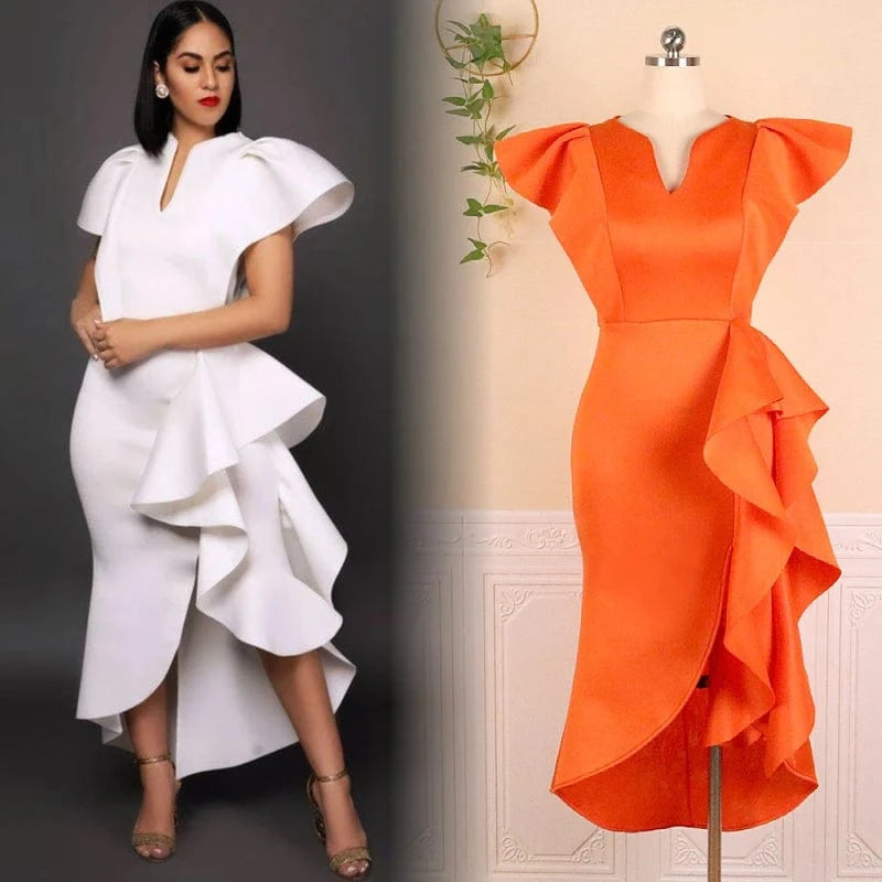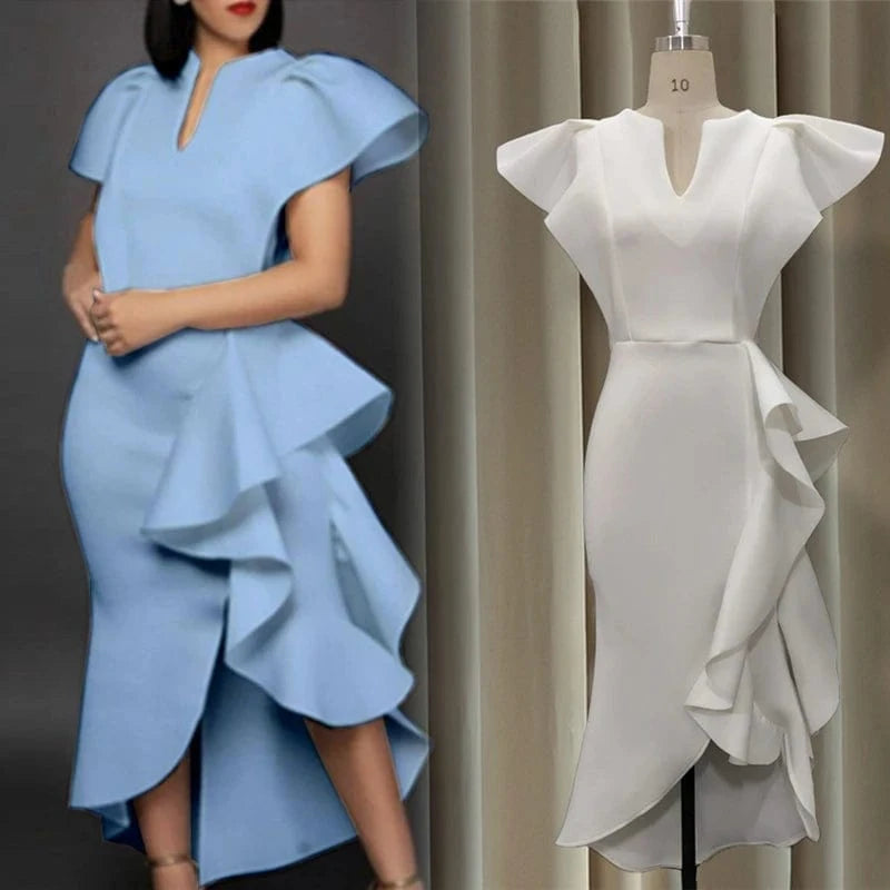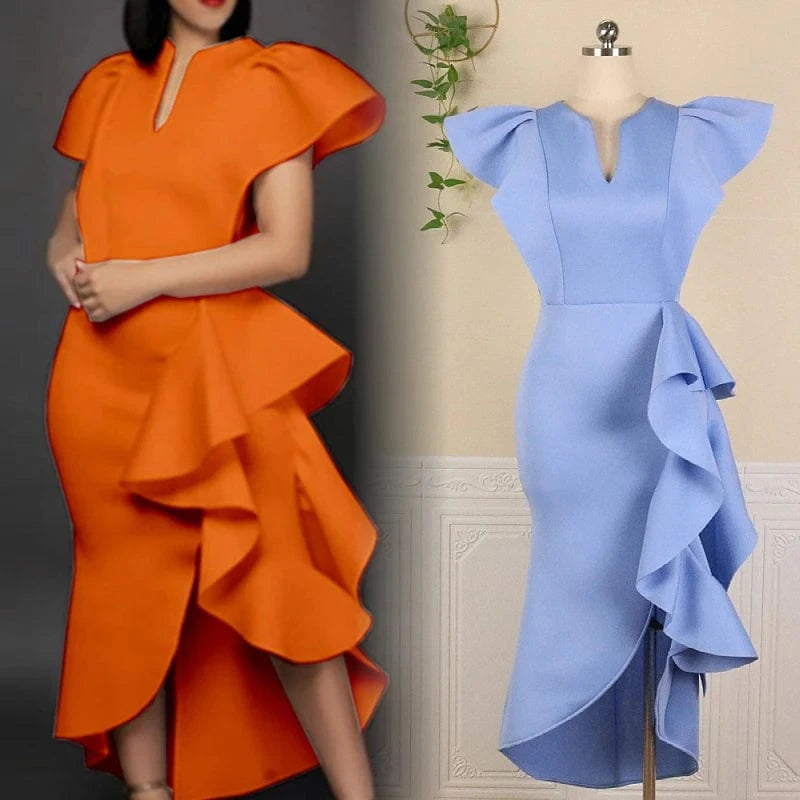 women clothing lady party gowns temperament elegant V collar ruffles high waist plus size slim fit irregular hem ladies prom dress women's evening dresses