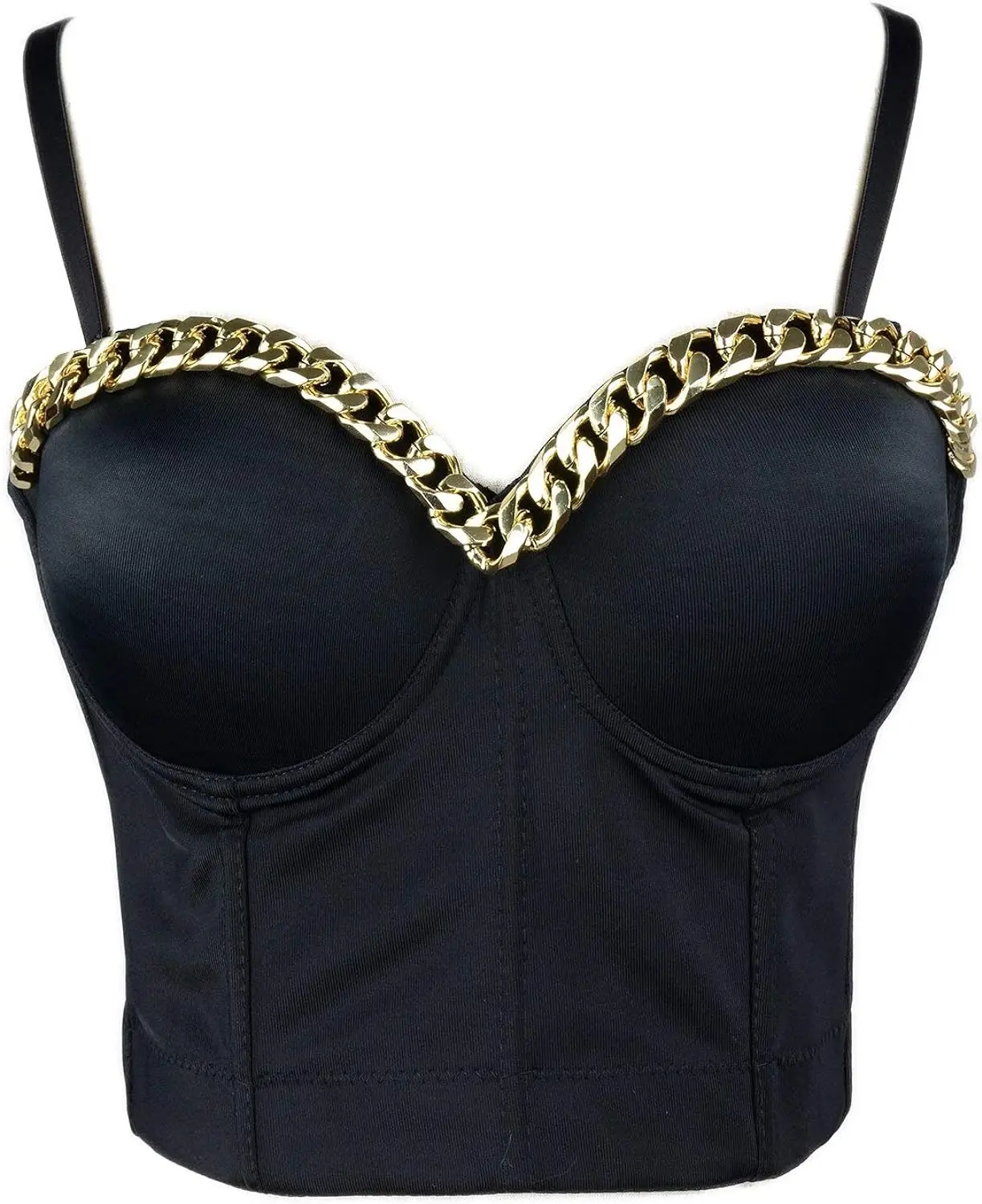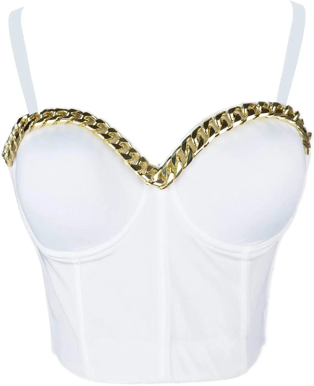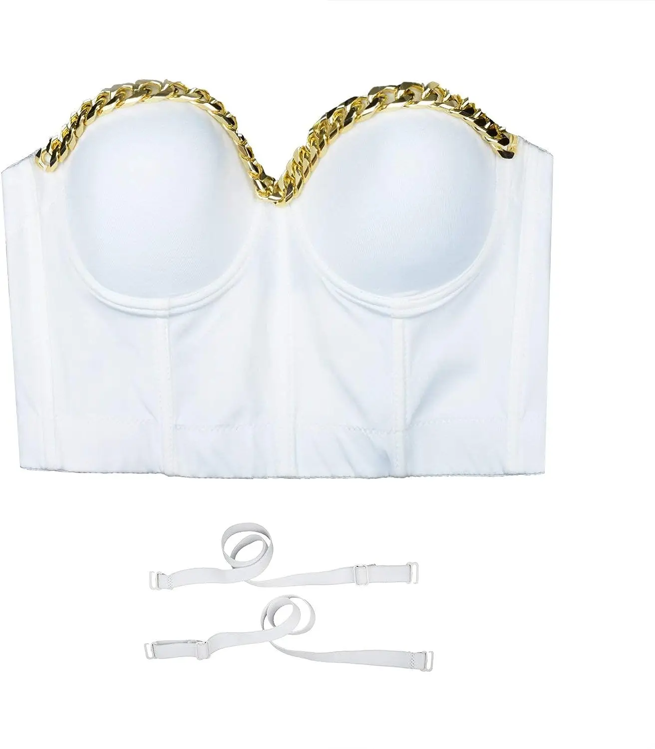Women Double-layer mesh sling corset Thin Slim Sling Bra Sexy Bustiers With Chain Decoration