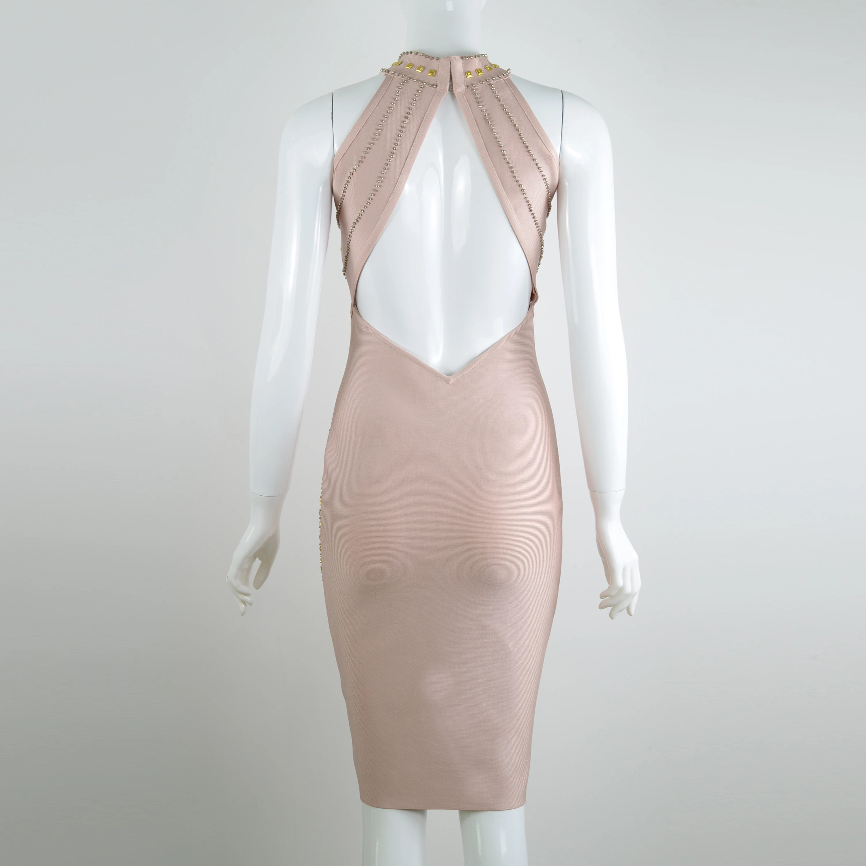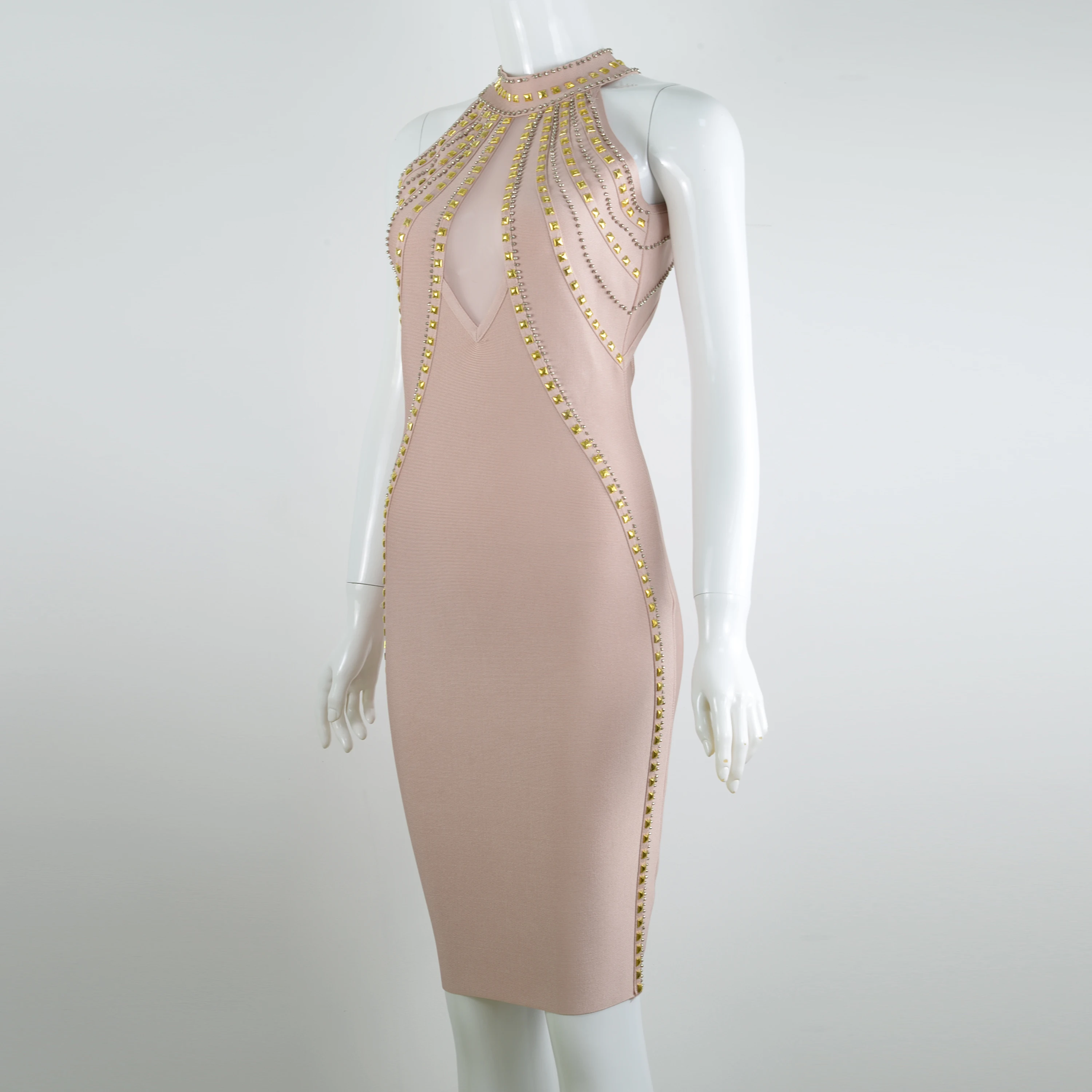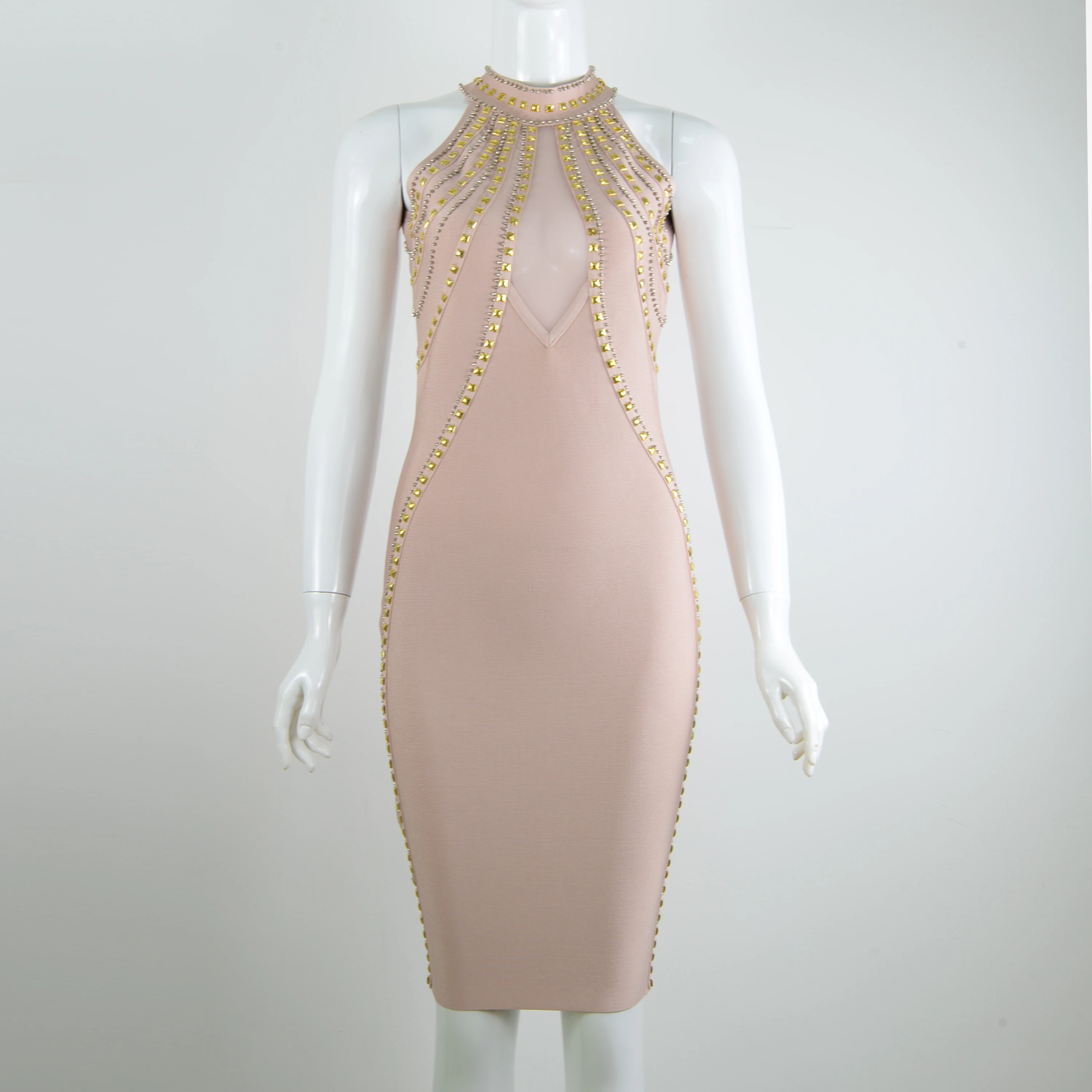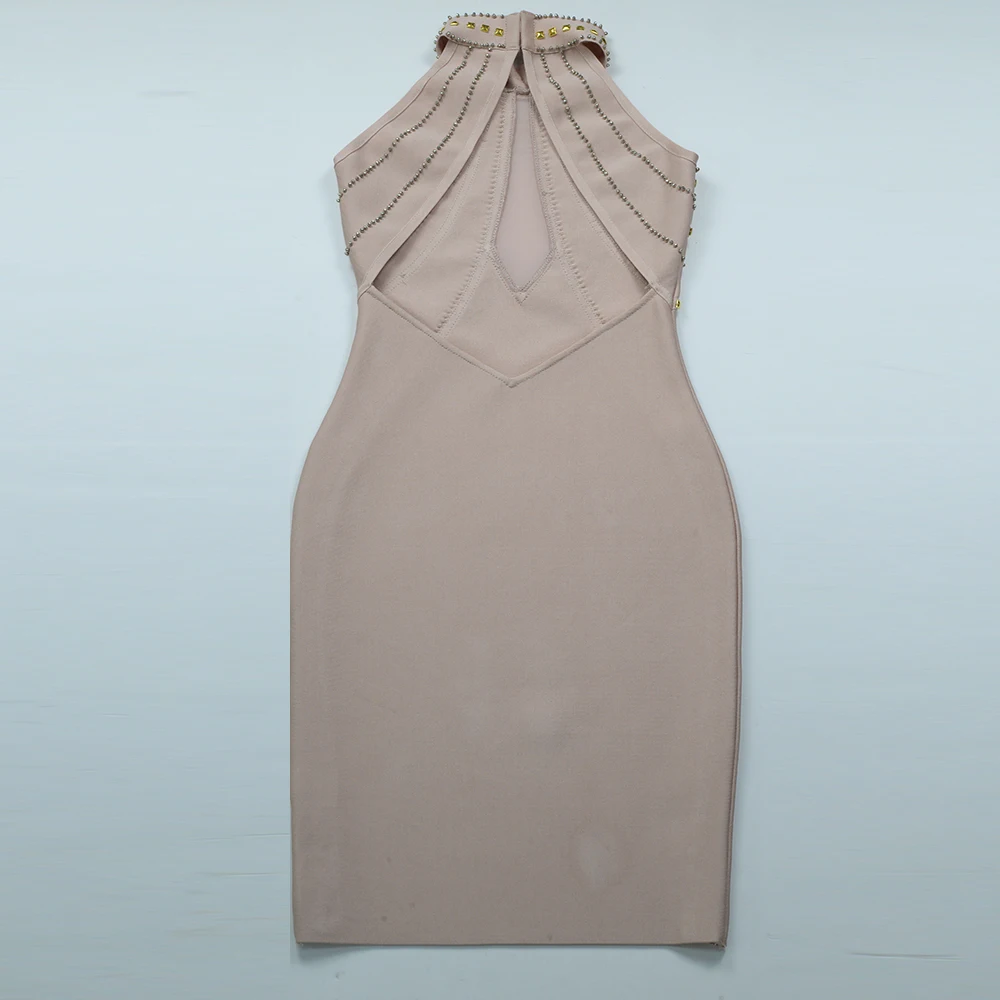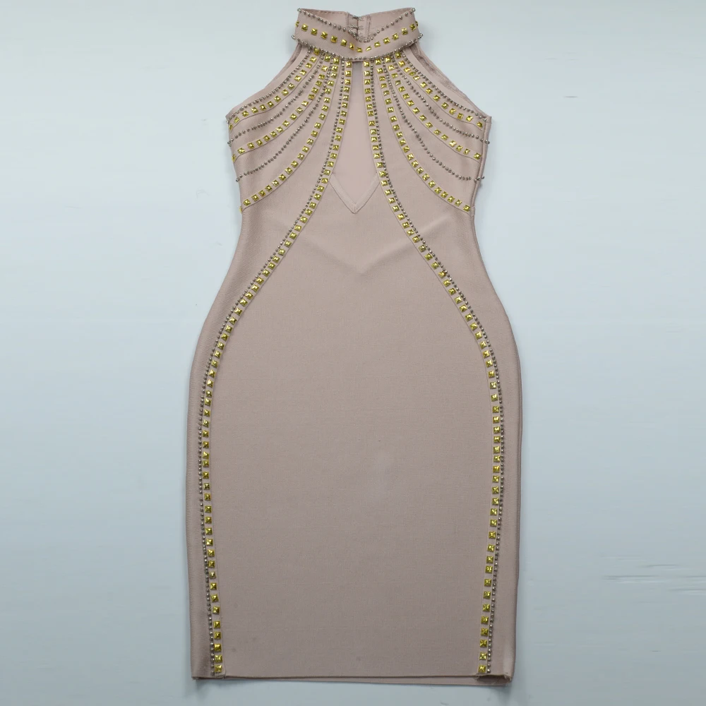 Women dresses new round neck sleeveless metal beading bandage dress bodycon ladies evening party club casual dresses