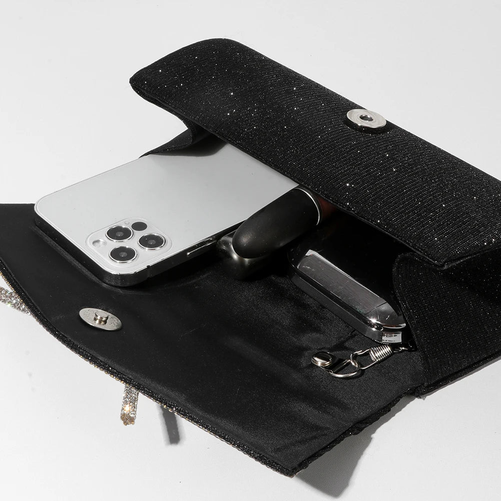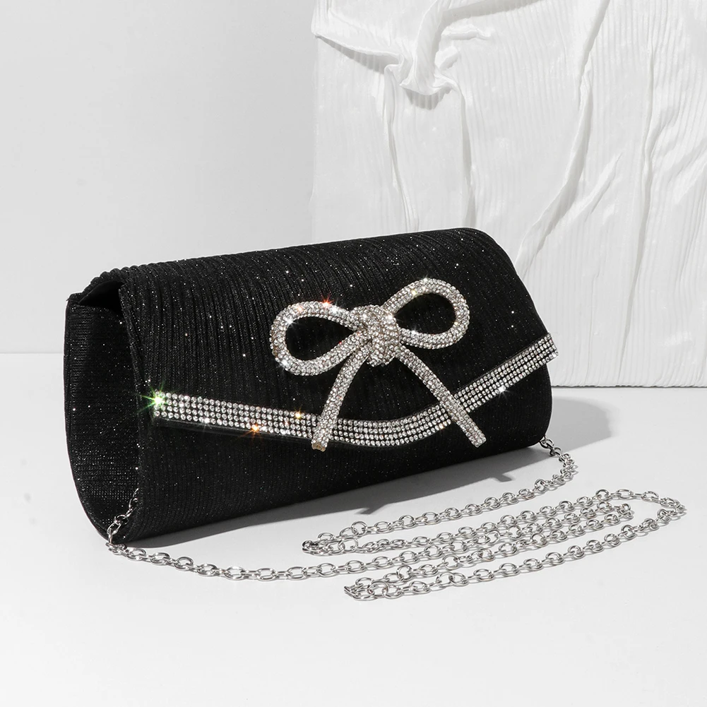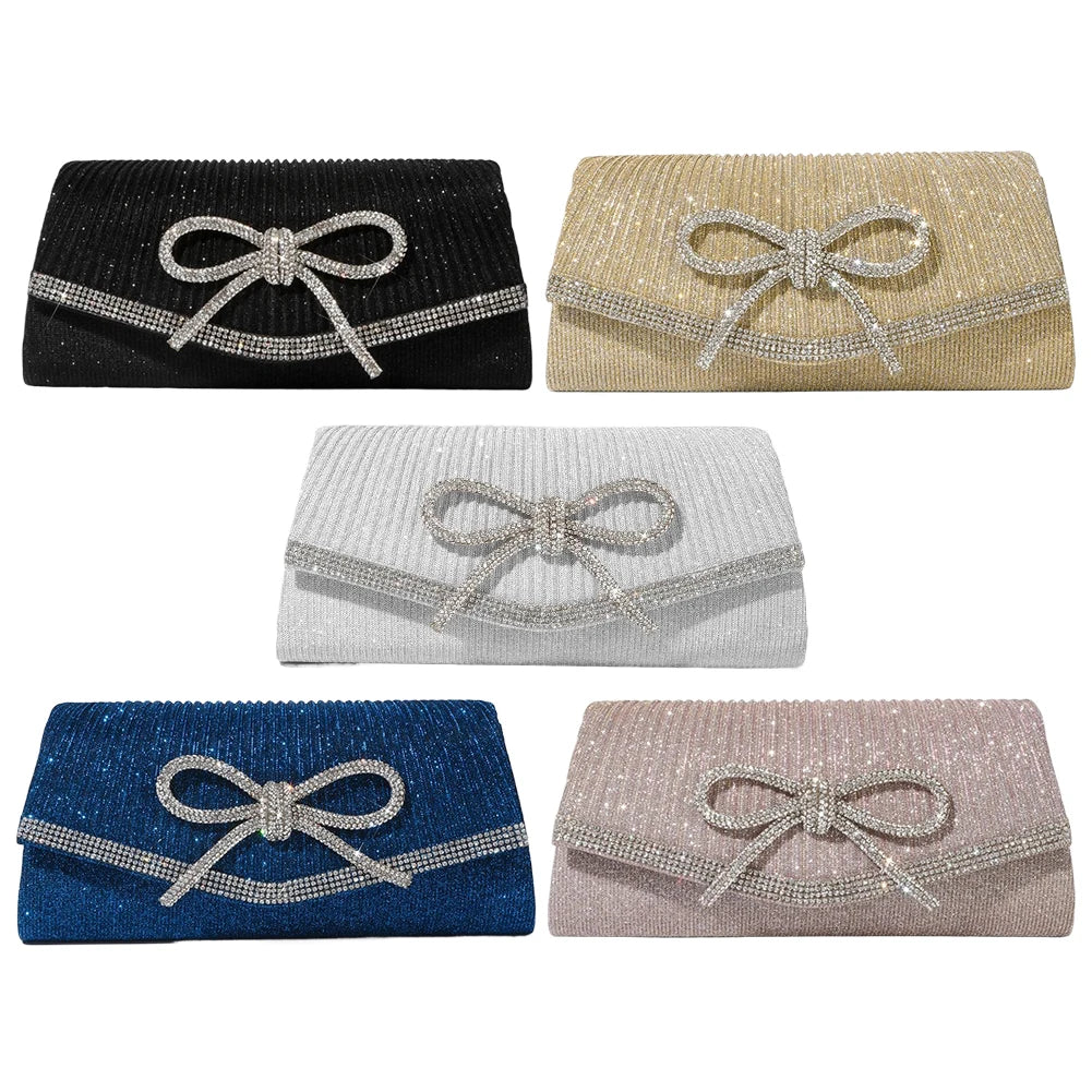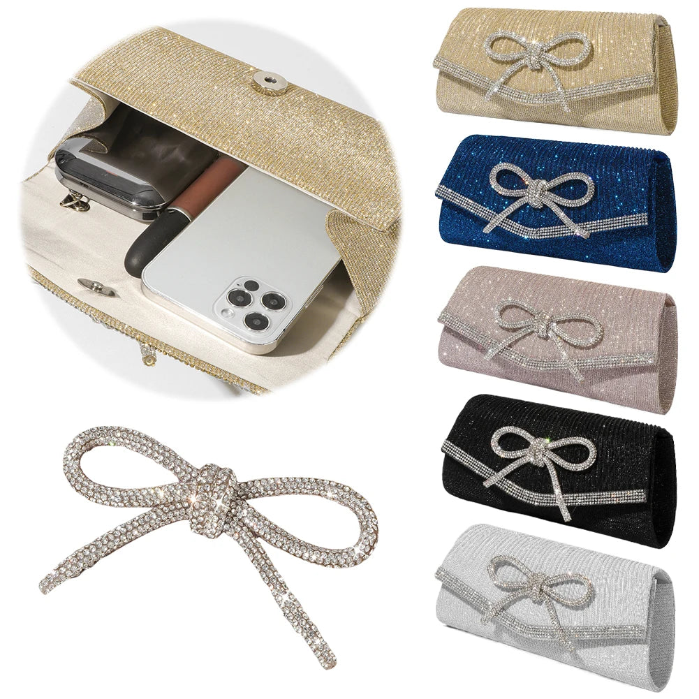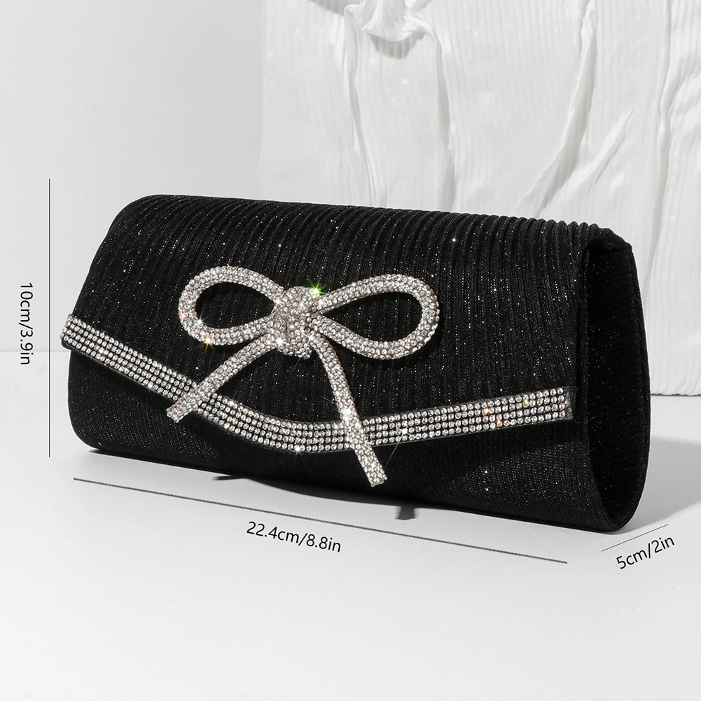 Women Evening Bag Bow Shoulder Bag Glitter Rhinestone Hobo Bag Adjustable Strap Wedding Party Purse