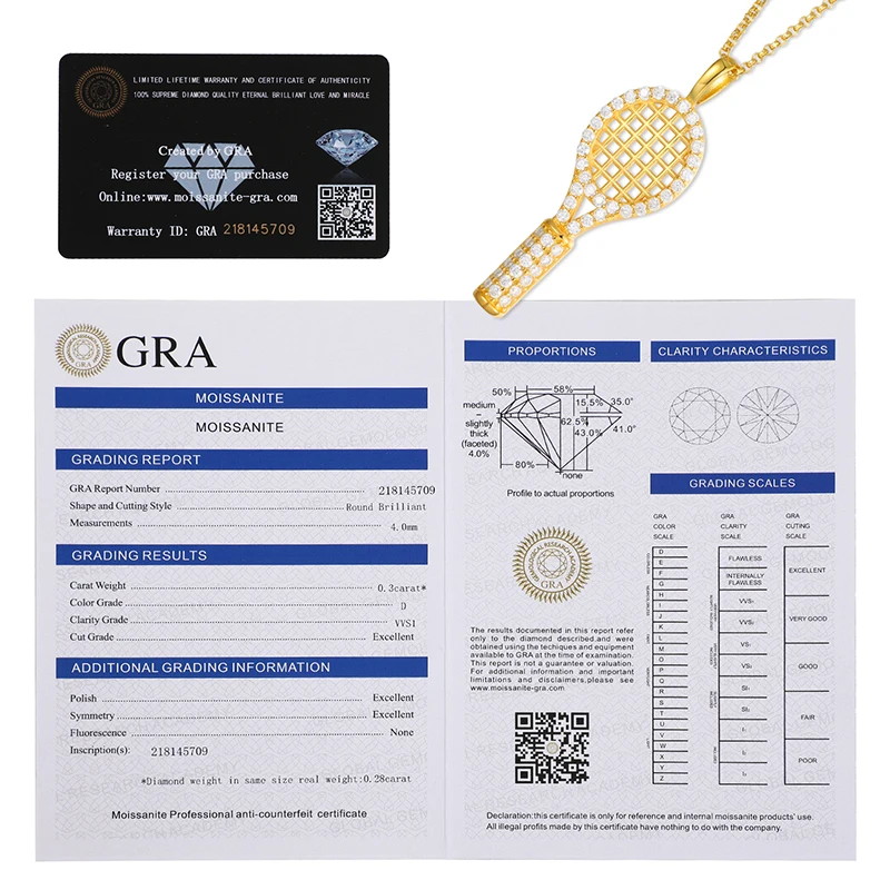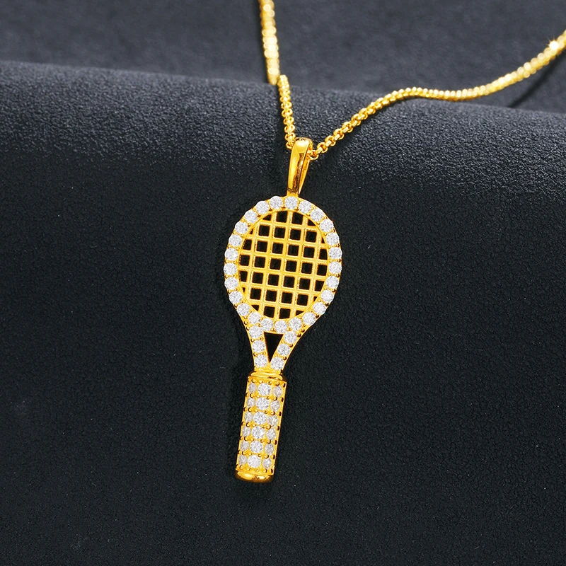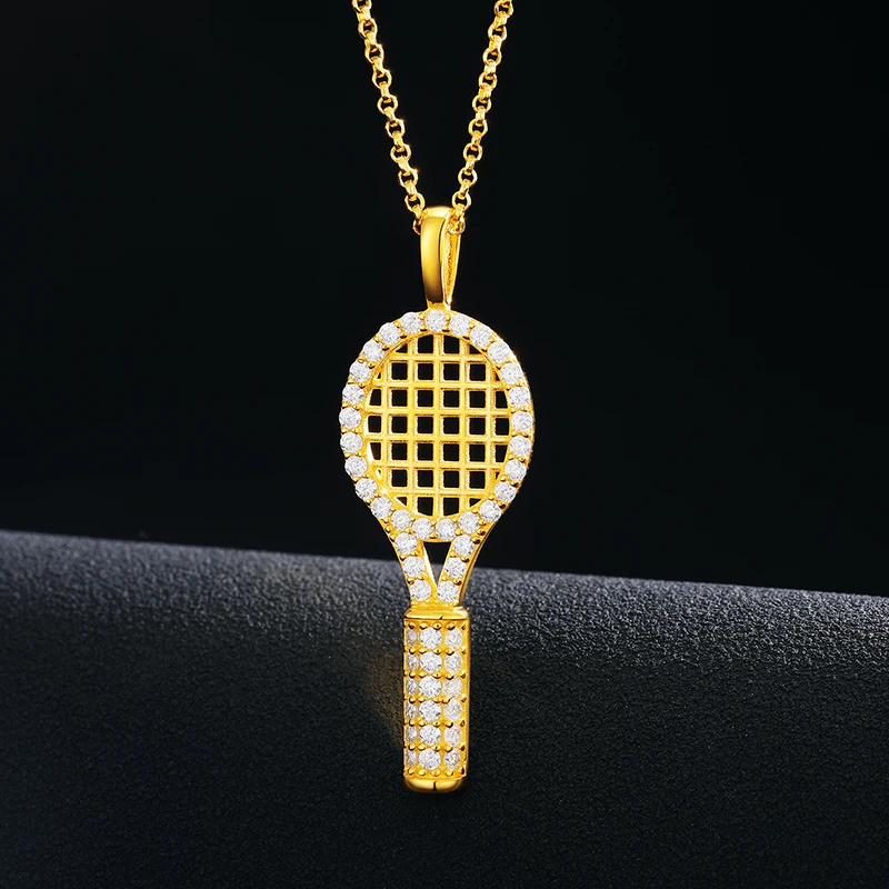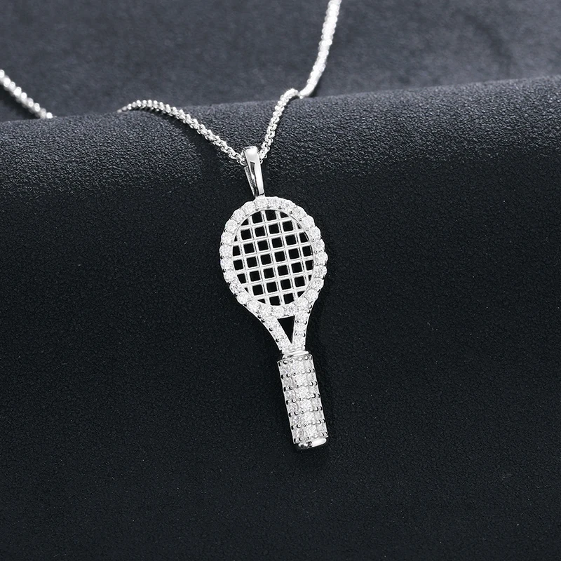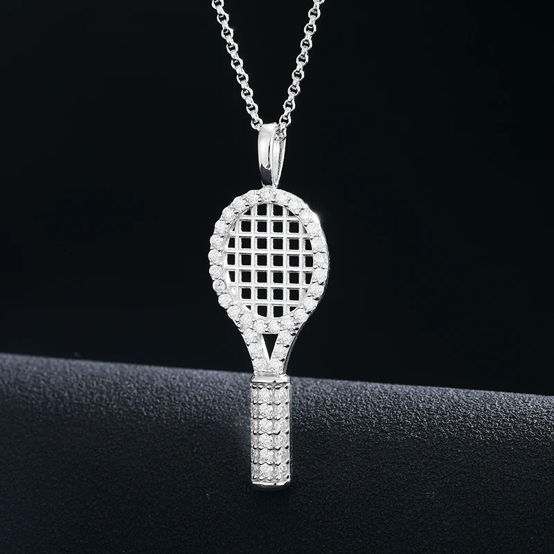 Women Fashion Jewellery 925 Sterling Silver Tennis Badminton Racket Moissanite & Diamond Vvs Floating Pendant Necklace