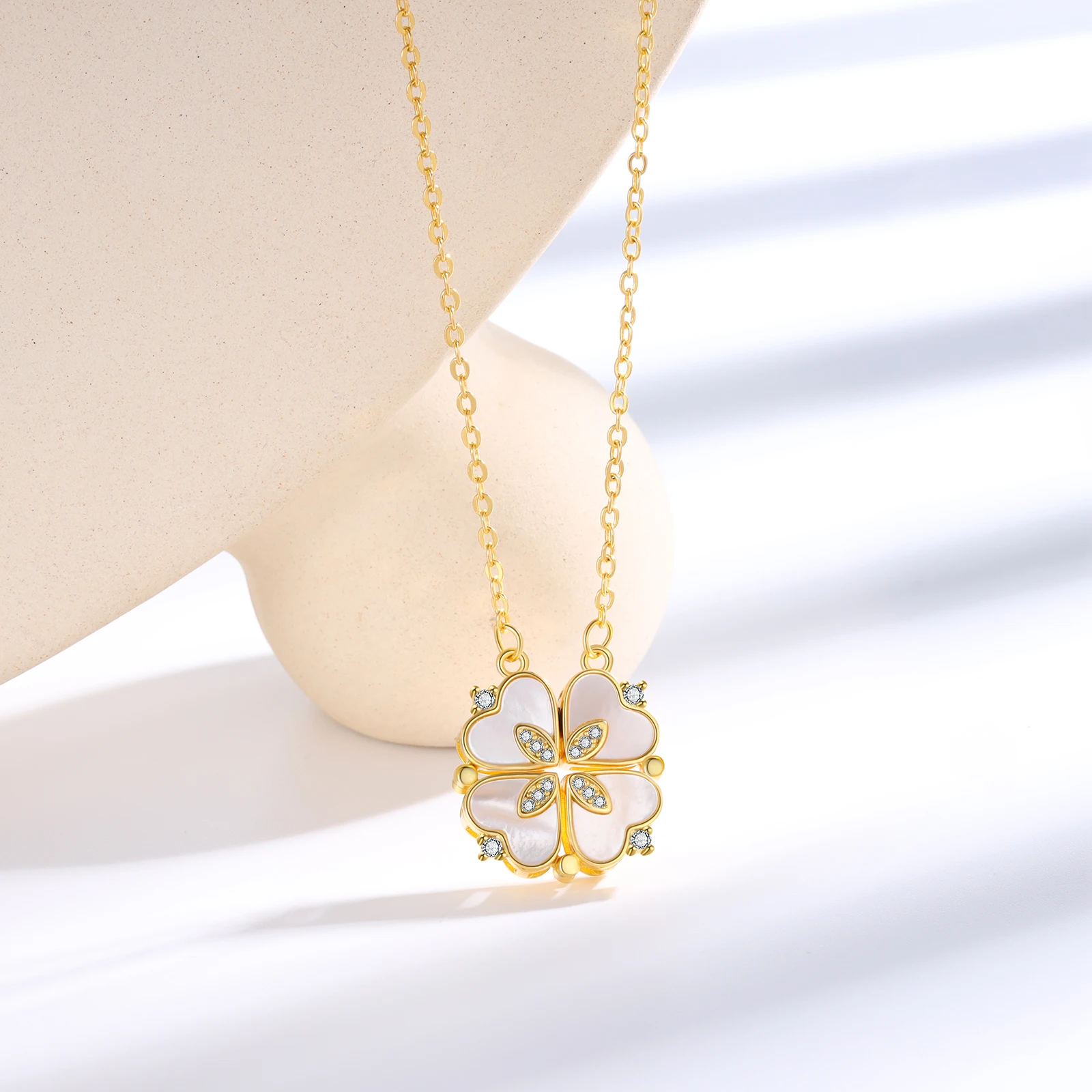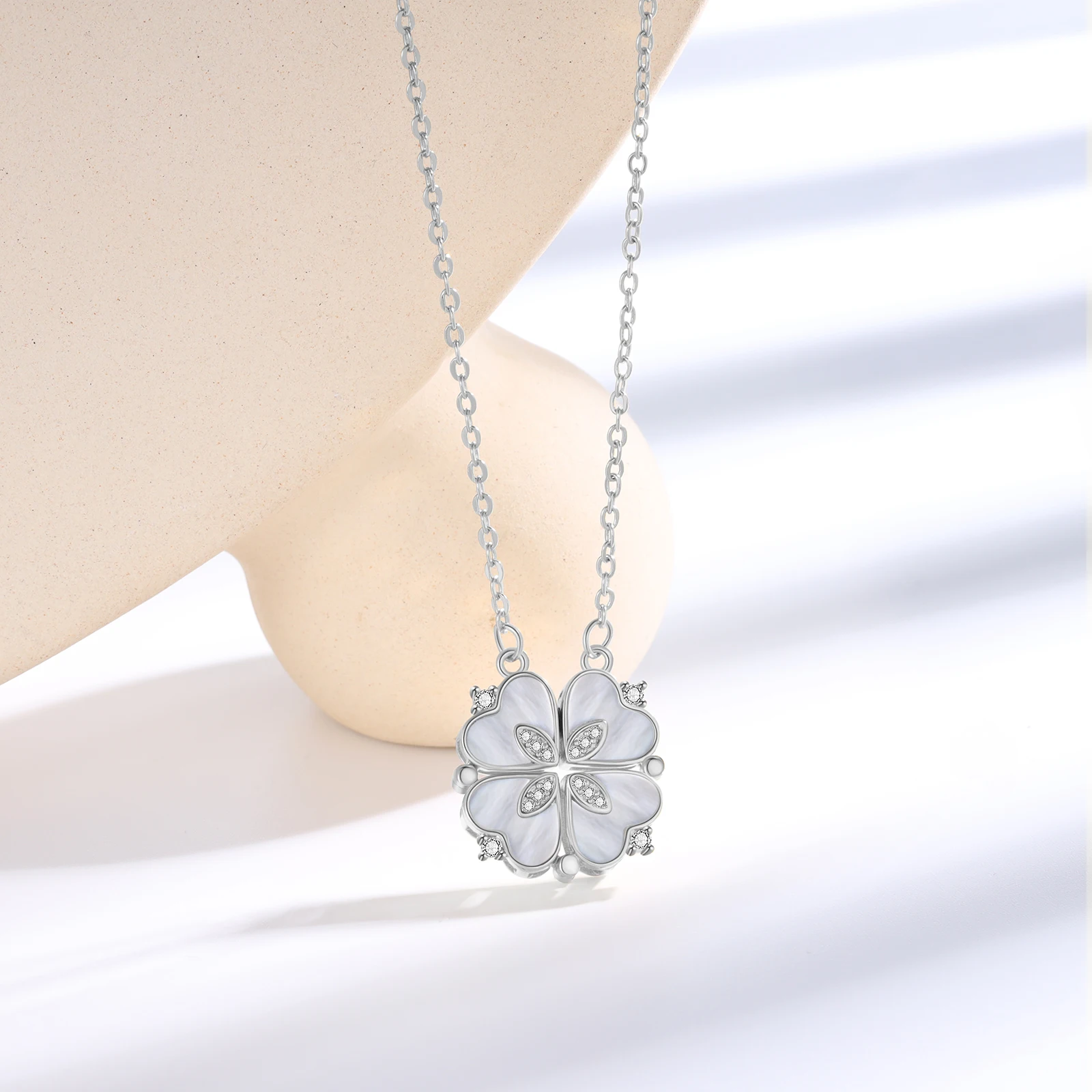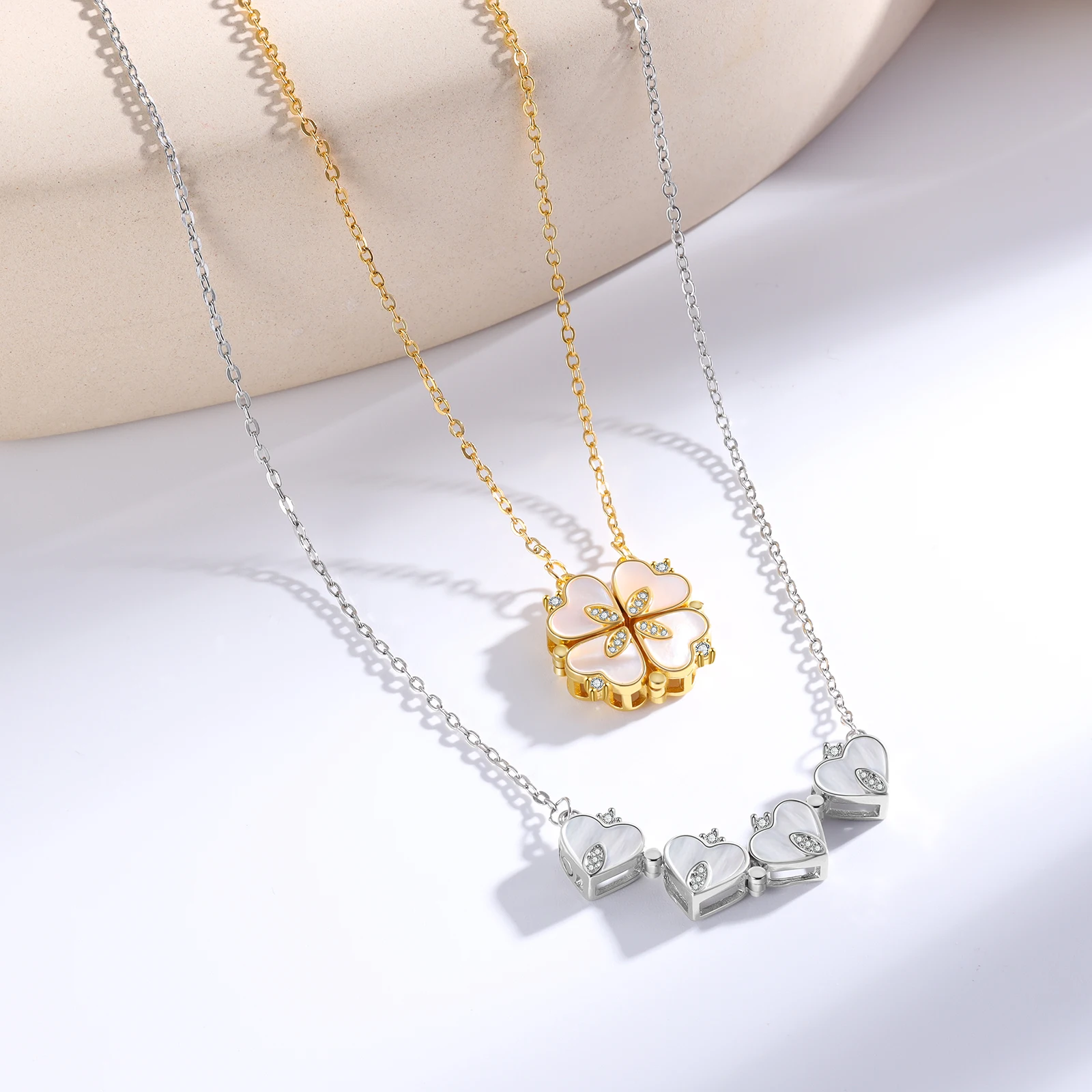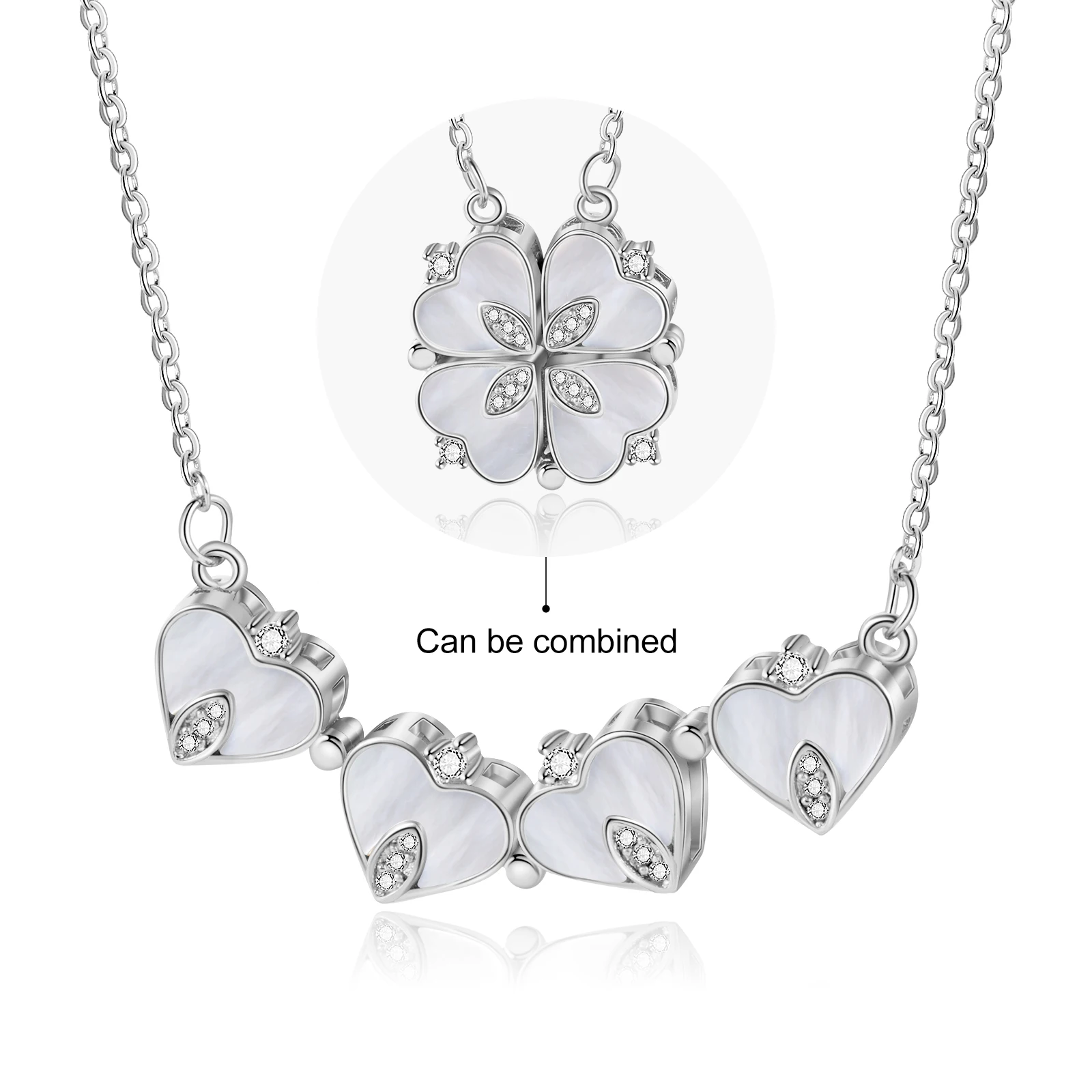 Women Fashion Jewelry Rhodium Plated Four Leaf Clover Necklace Combination Four Heart Necklace