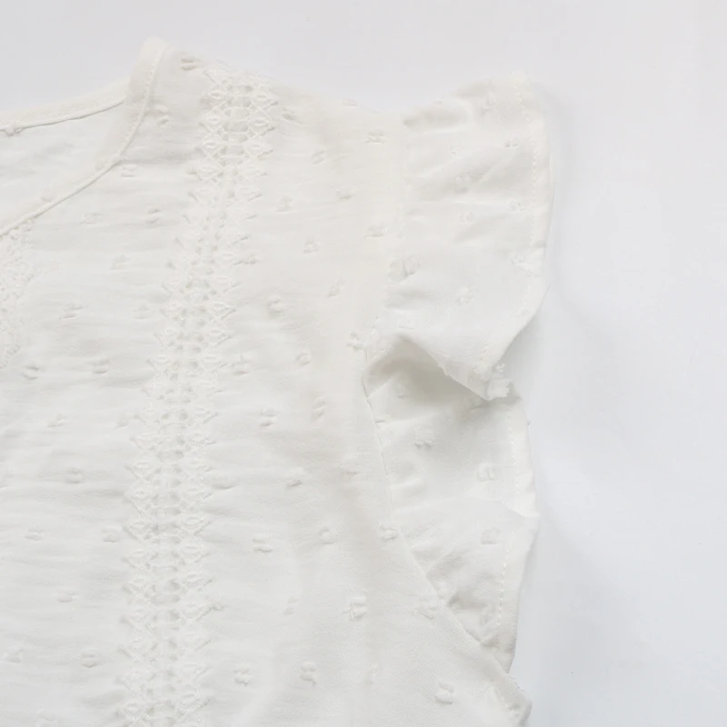 Women Fashion Plain Casual Tops Short Sleeve V Neck Lace Up White Ruffles T-shirt