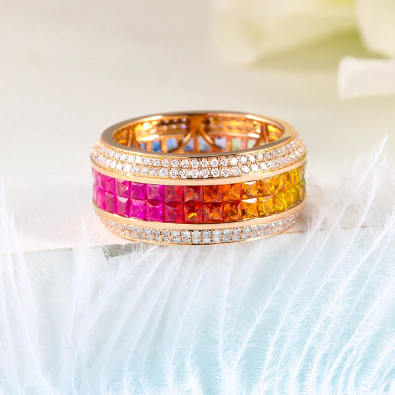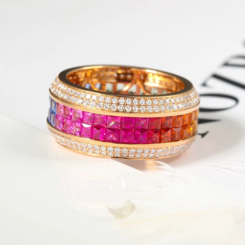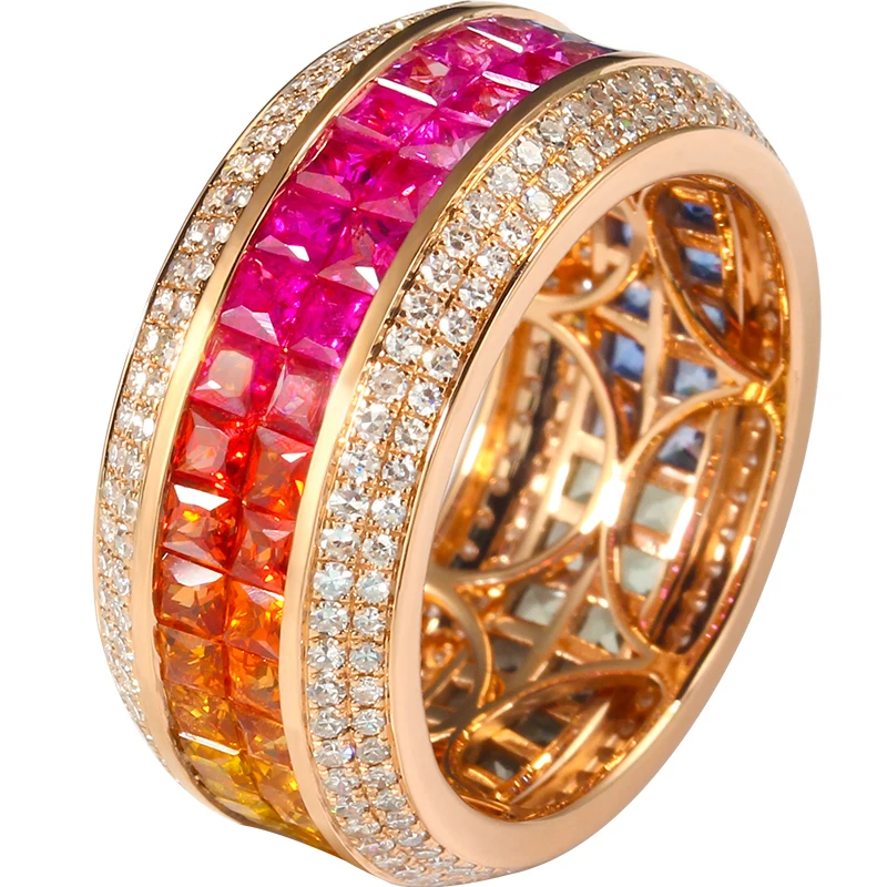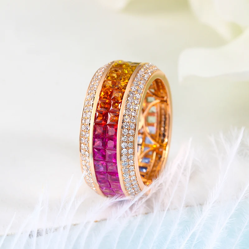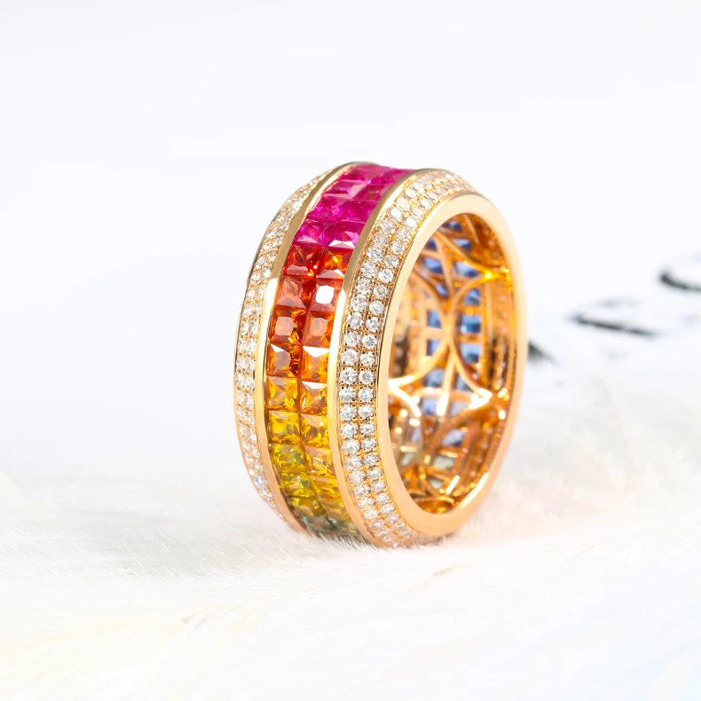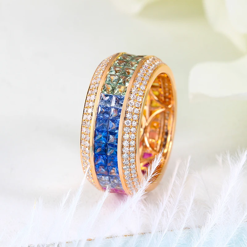 women jewelry small custom faceted rainbow gemstone sapphire china supplier 18ct gold wedding genuine 18k gold ring