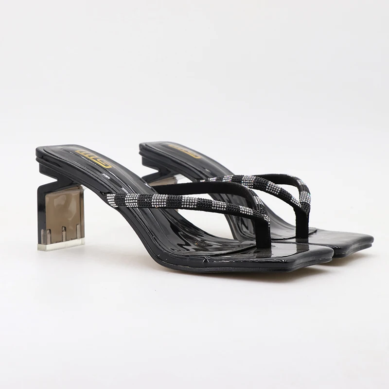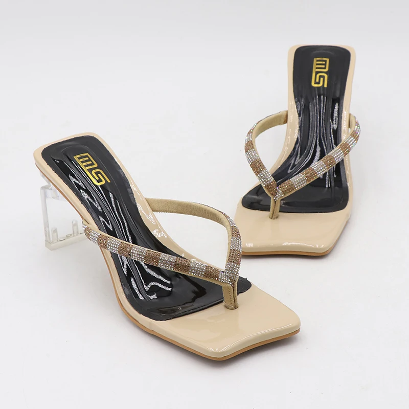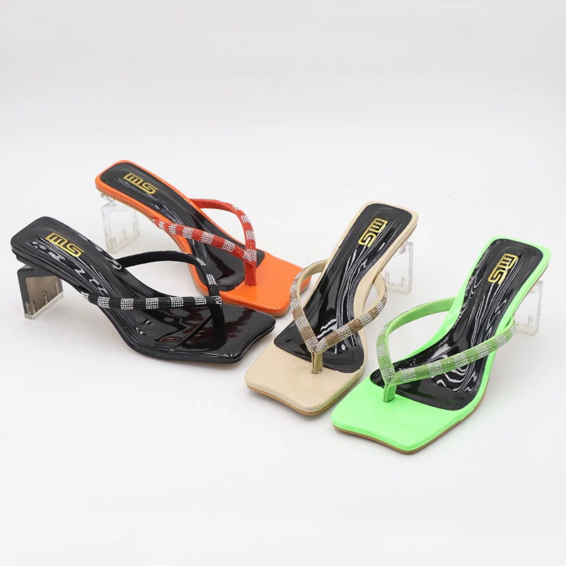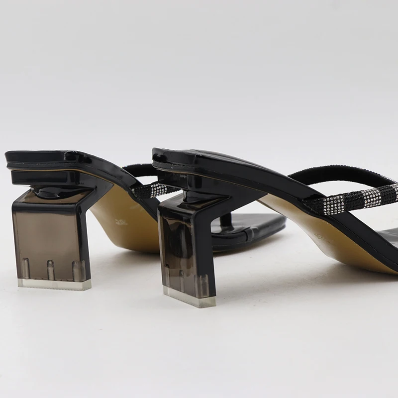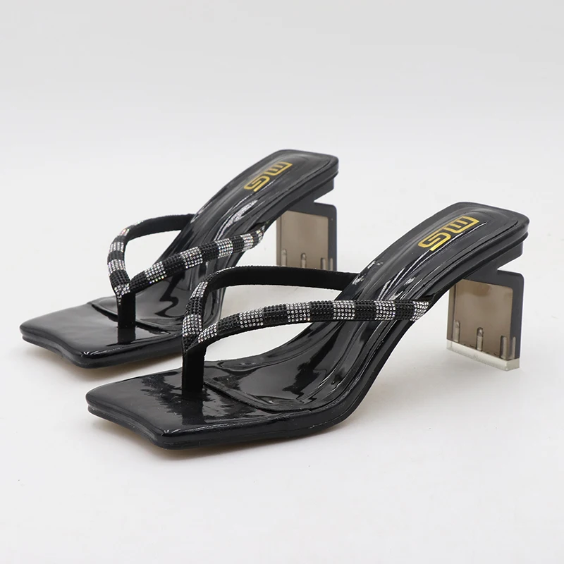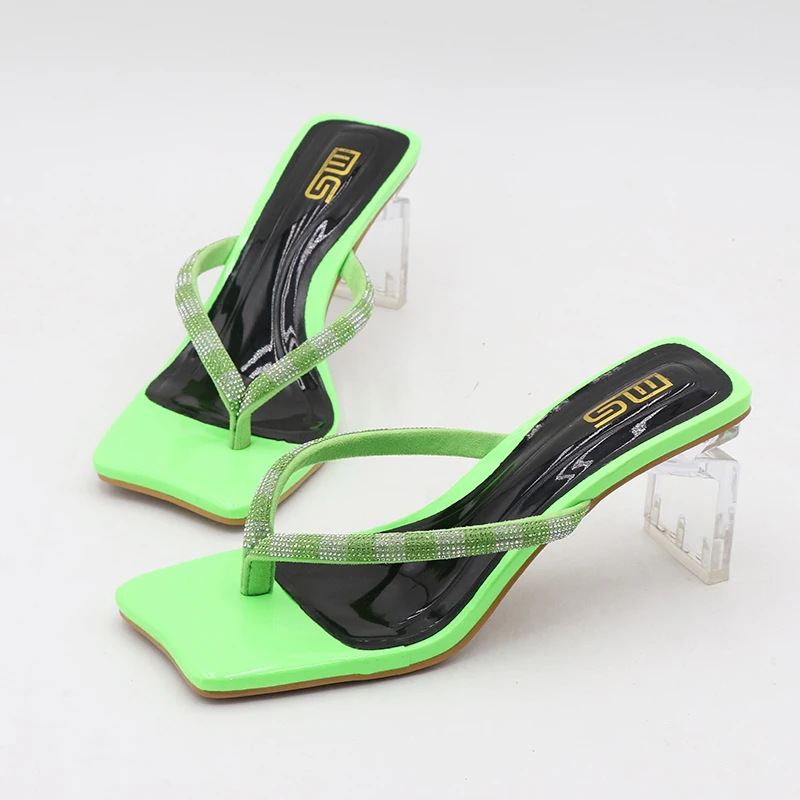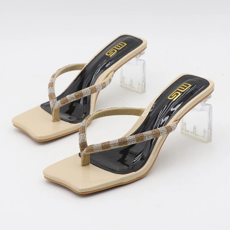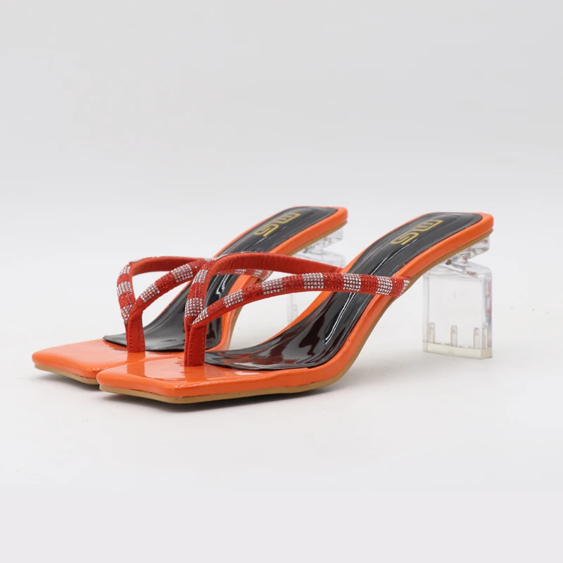 Women Ladies Female Women Open Toes Square Head High Transparent Thick Wide Block Heels Flip-Flops Slippers Heeled Sandals Women