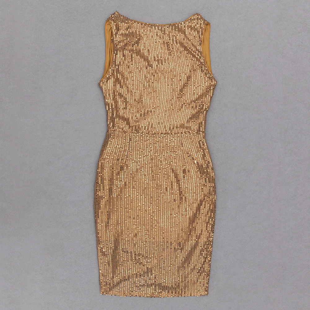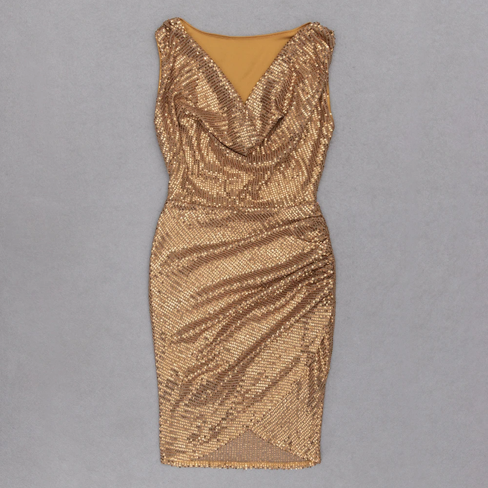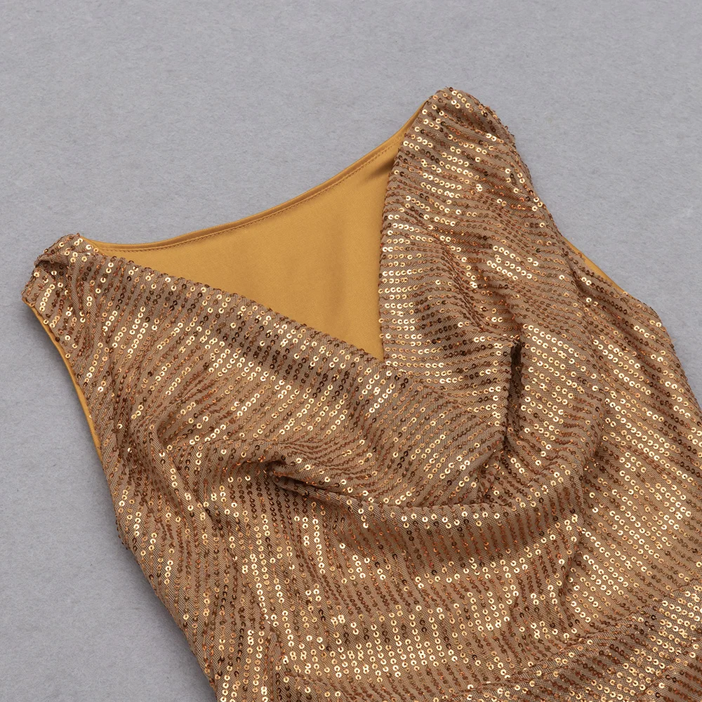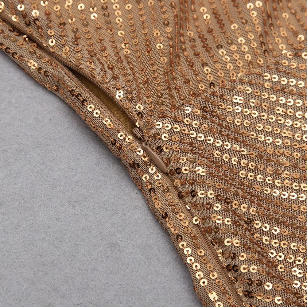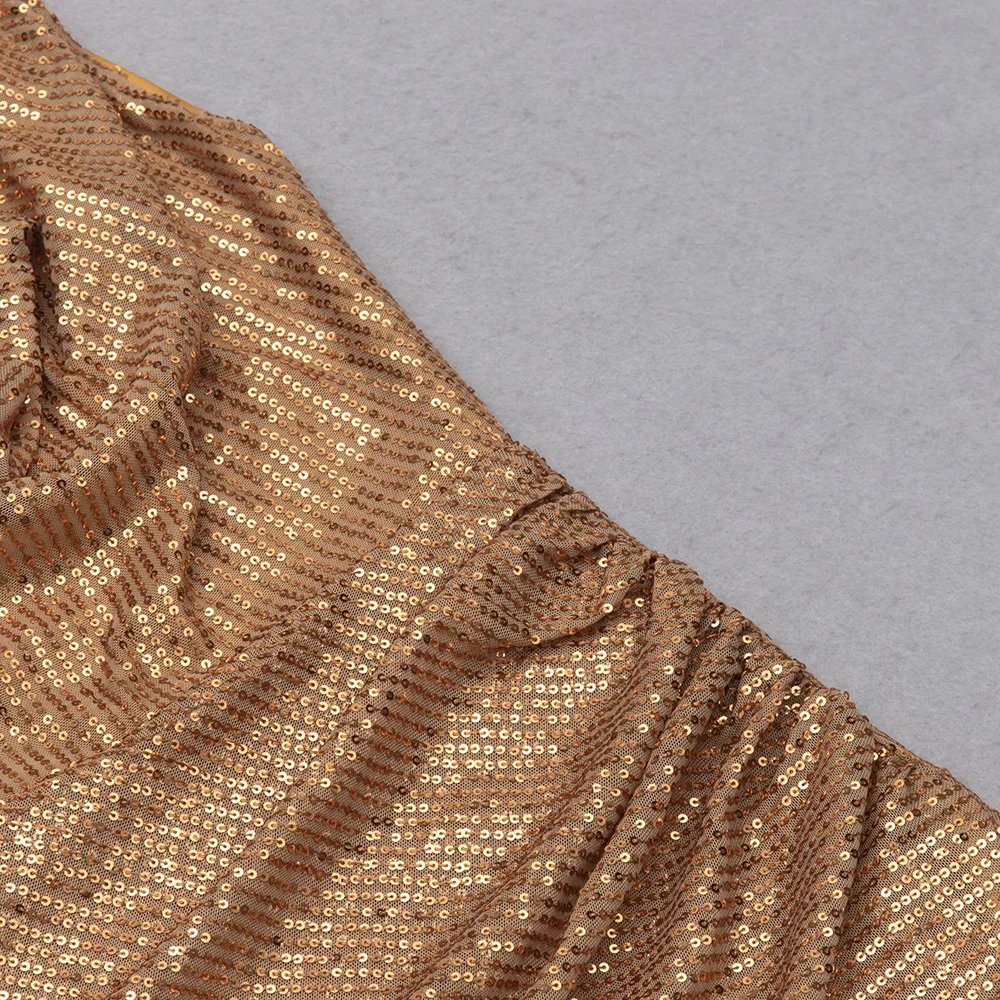Women Lady Elegant Party Evening Formal Deep V-neck Layer Sheer Golden Sequin Dresses