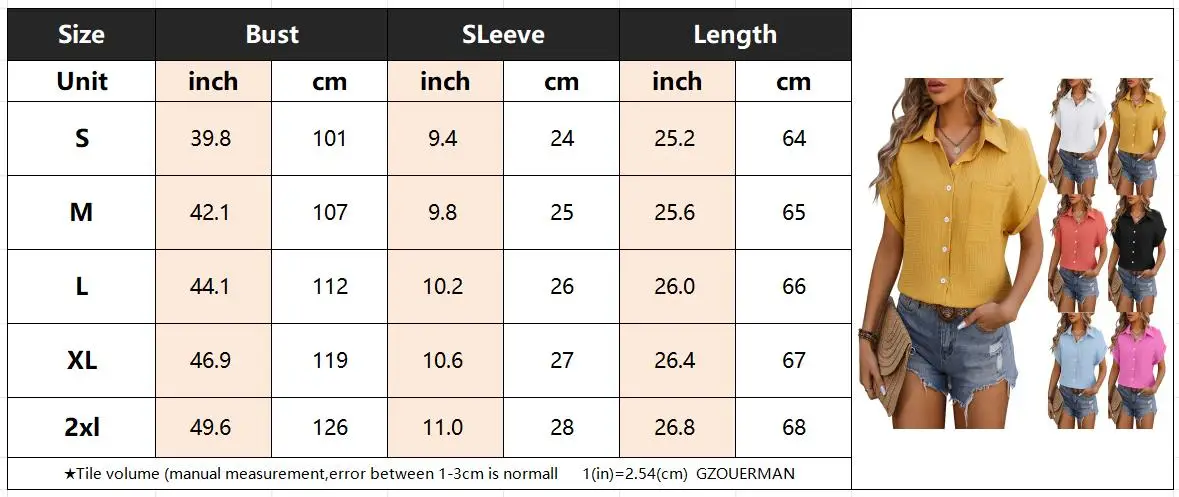Women Lady Girls Loose Short Sleeve Shirt Hot Sale Slim Spring Summer Elegant Pocket Casual Crinkle Blouse Commuting Shirt