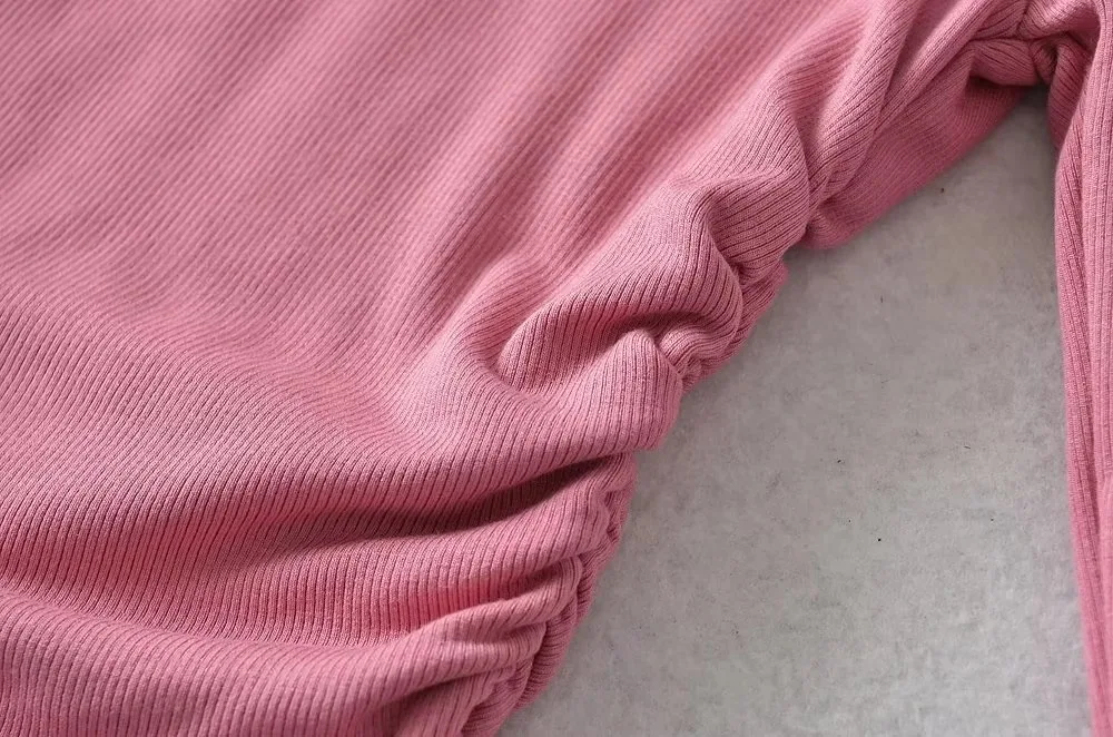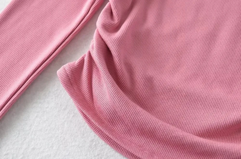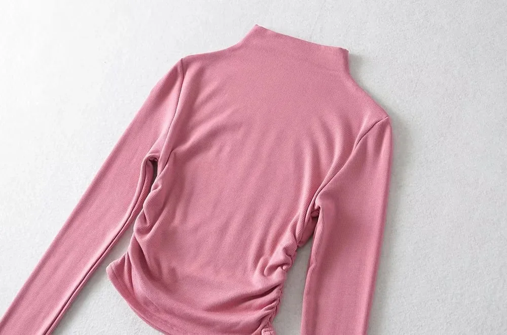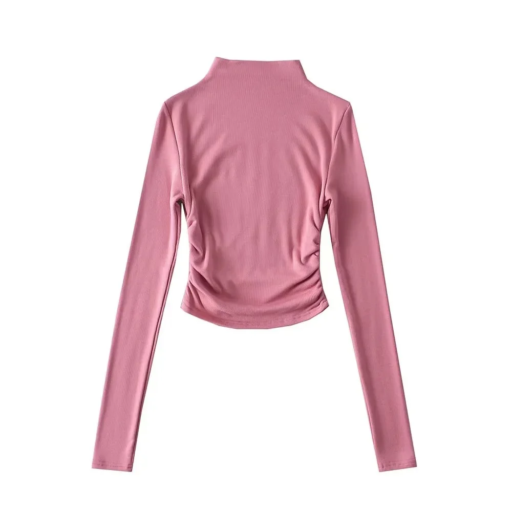 Women Long Sleeve Basic Candy Color Turtleneck Crop Top with Elastic Side Stack High Stretch Cotton Mock Neck Tops