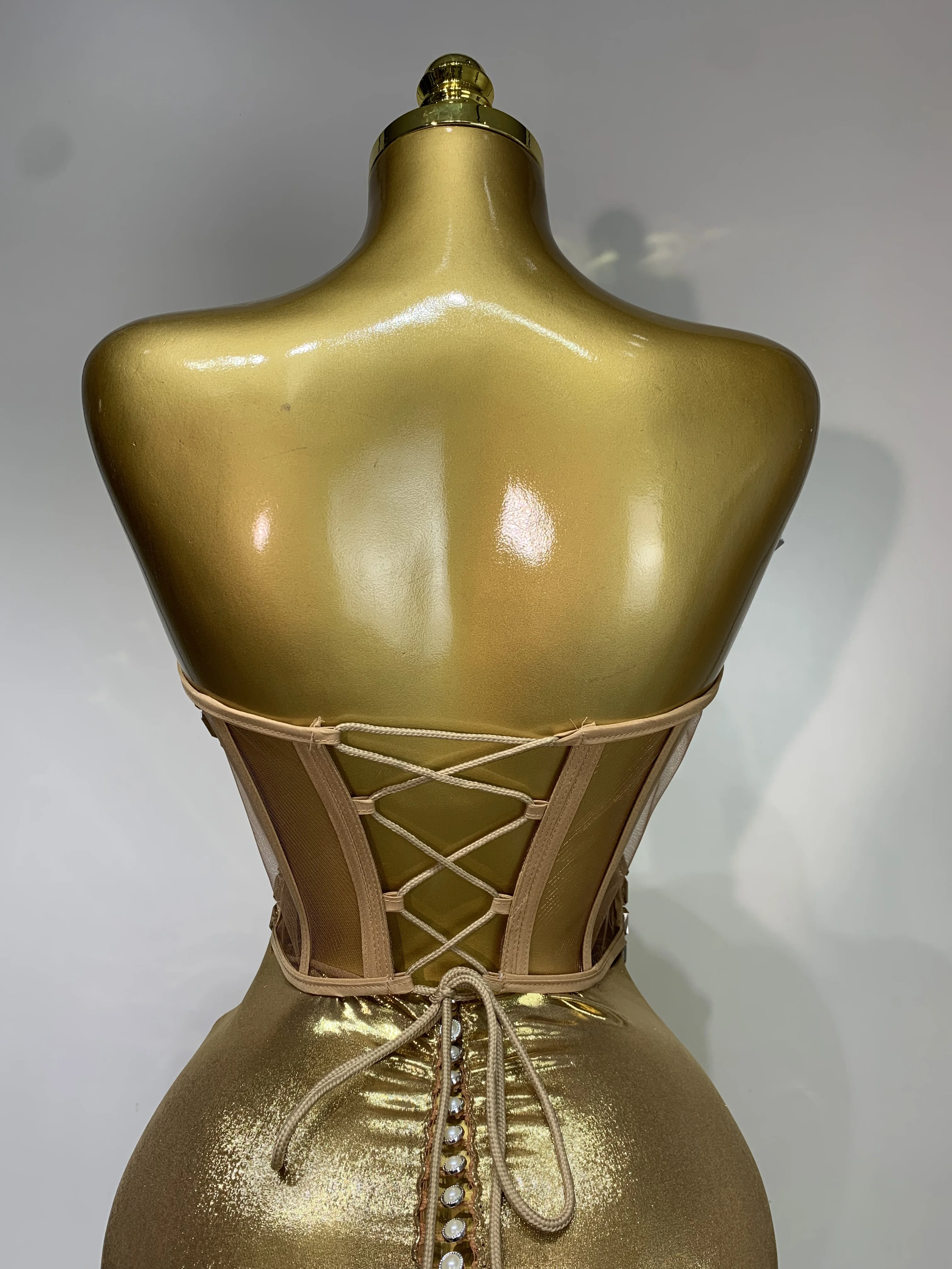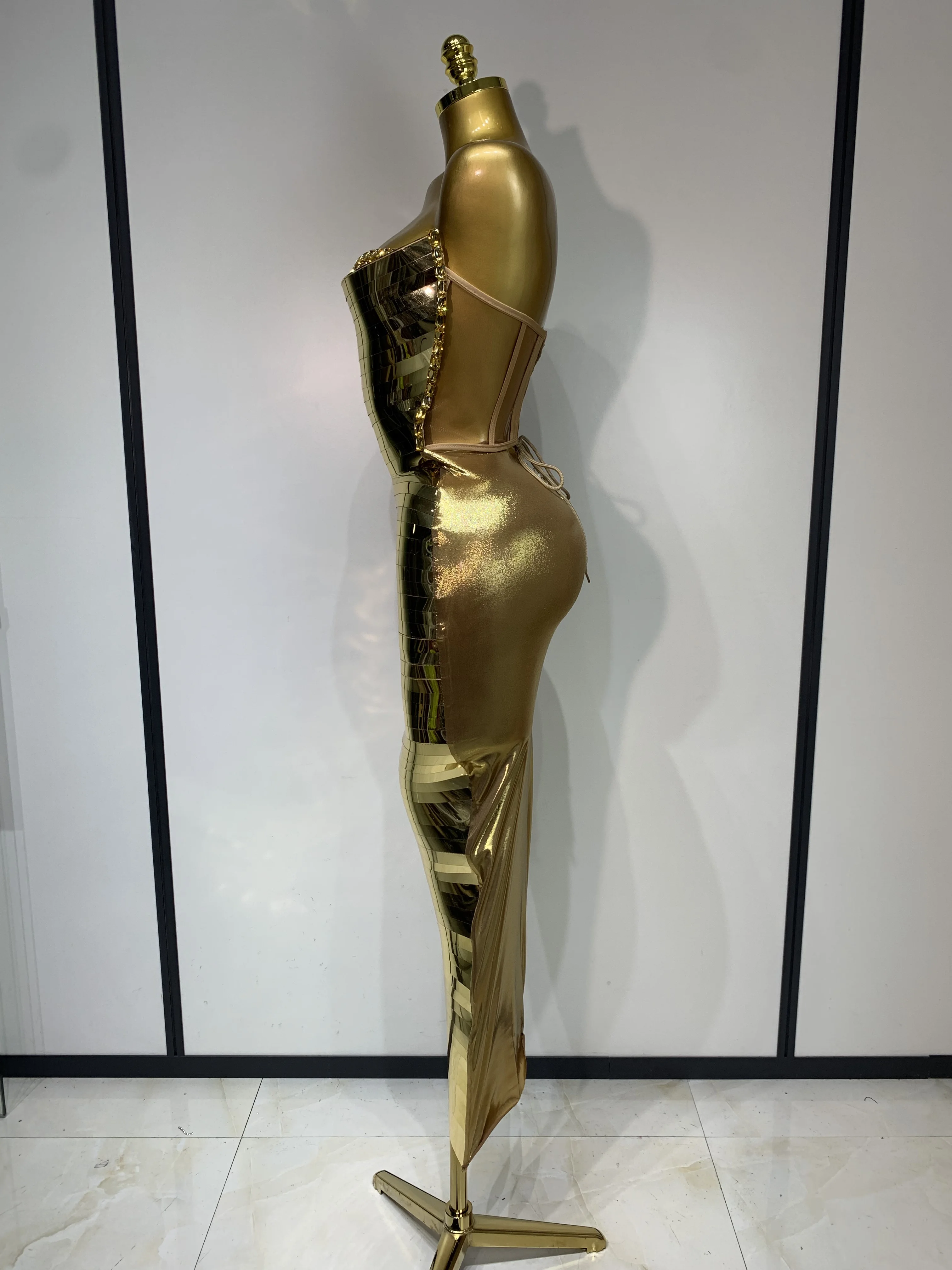Women Luxury Gold Sequin Strapless Crystal Bodycon Y2K Evening Party Dress One Piece Celebrity Gala Gown Birthday Club Dress