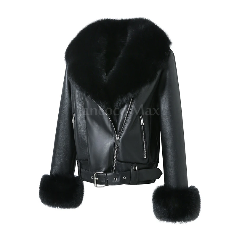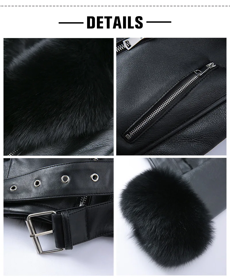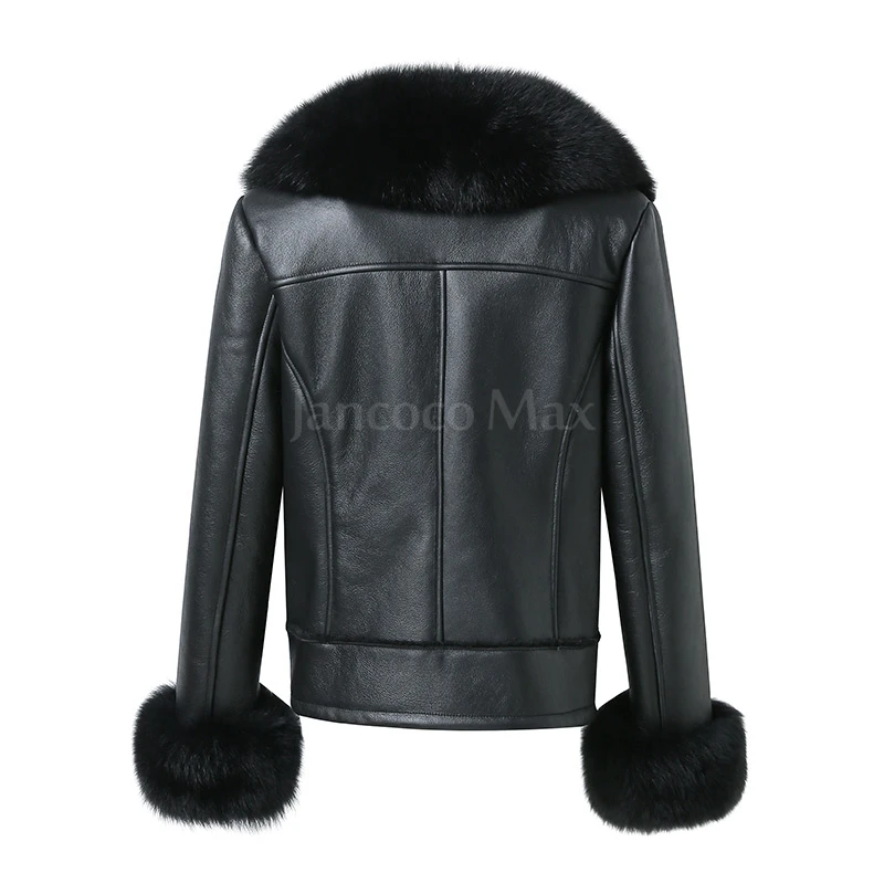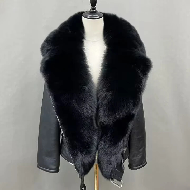 Women Luxury Shearling Real Leather Jacket Double Faced Sheepskin Fur Leather Jacket