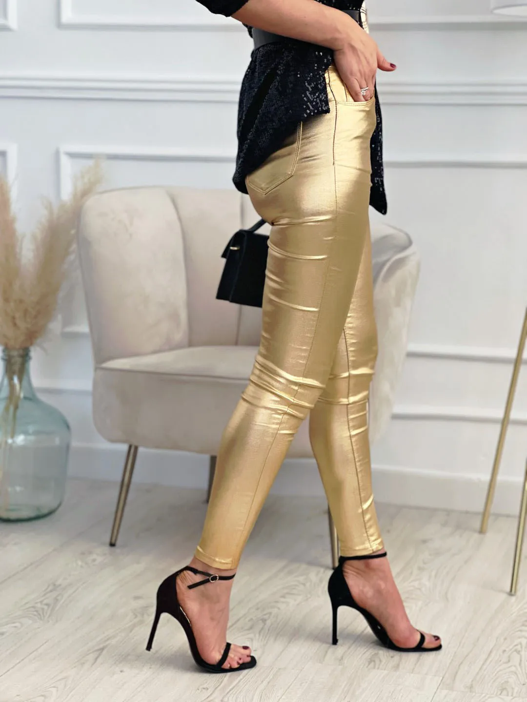 Women Midi Waist Gradient PU Bright Leather Tights Female Push Up Sexy Party Leggings Skinny Pencil Pants