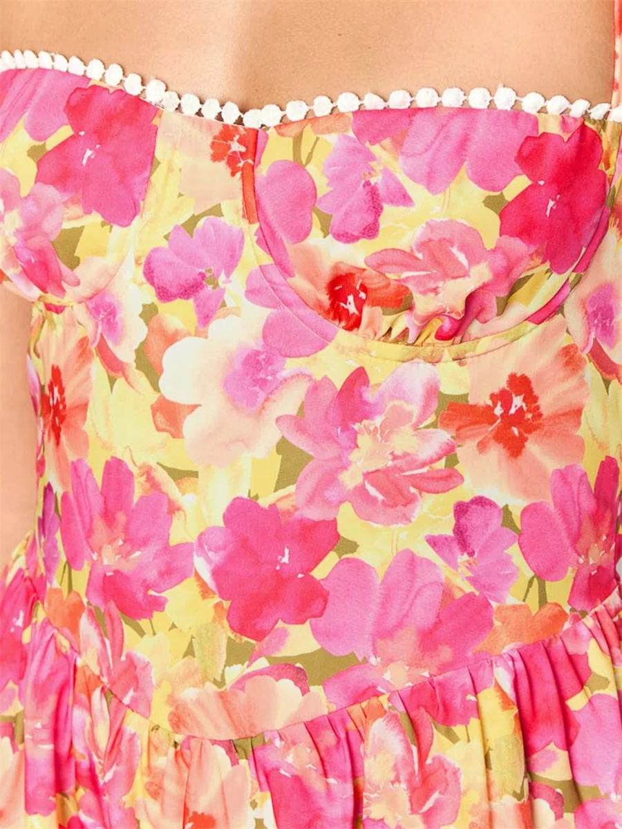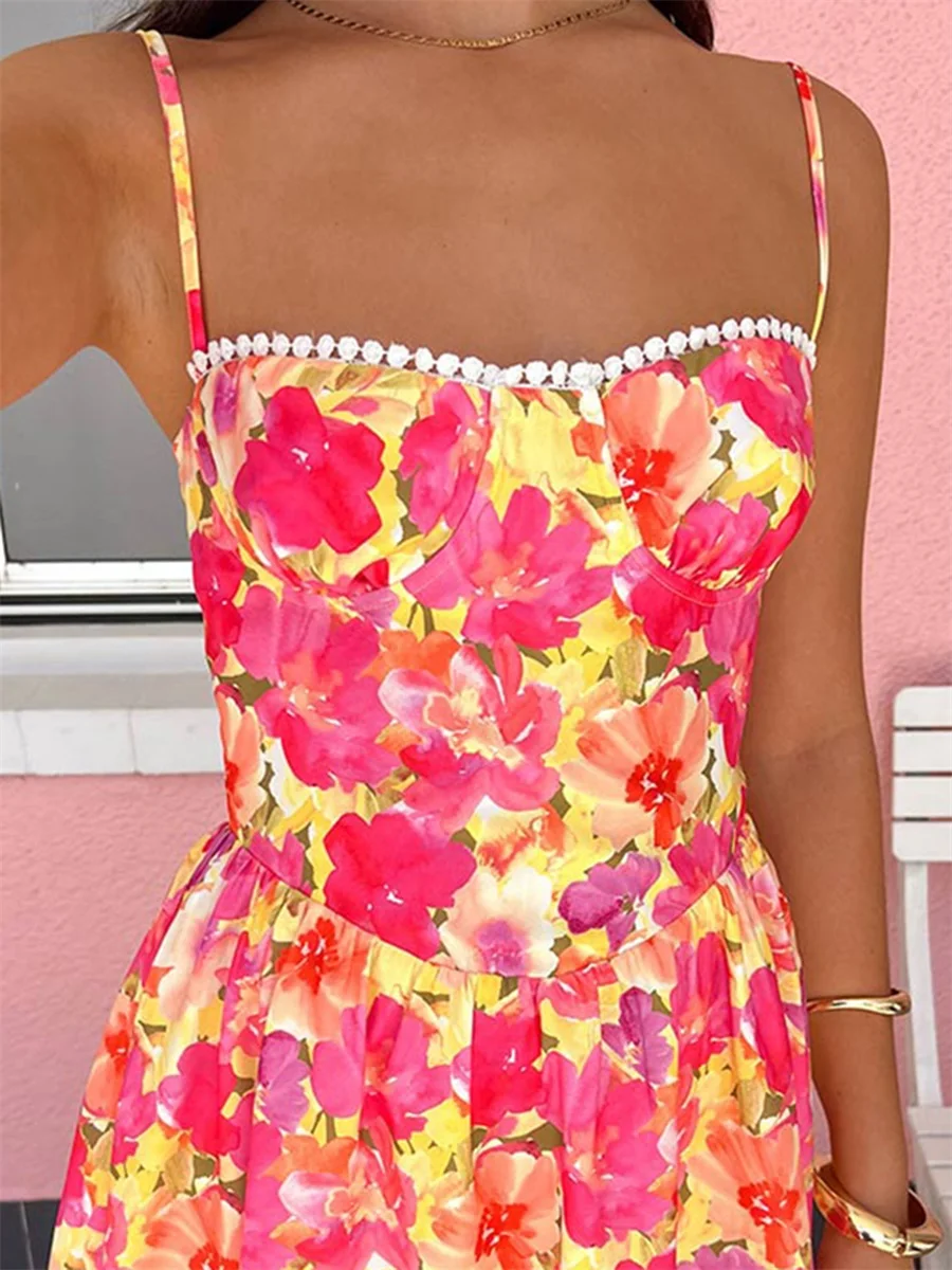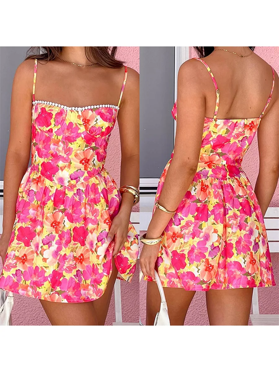 Women Mini Dress Floral Print Spaghetti Strap Cami Dress Summer Fashion Sleeveless Casual Dress
