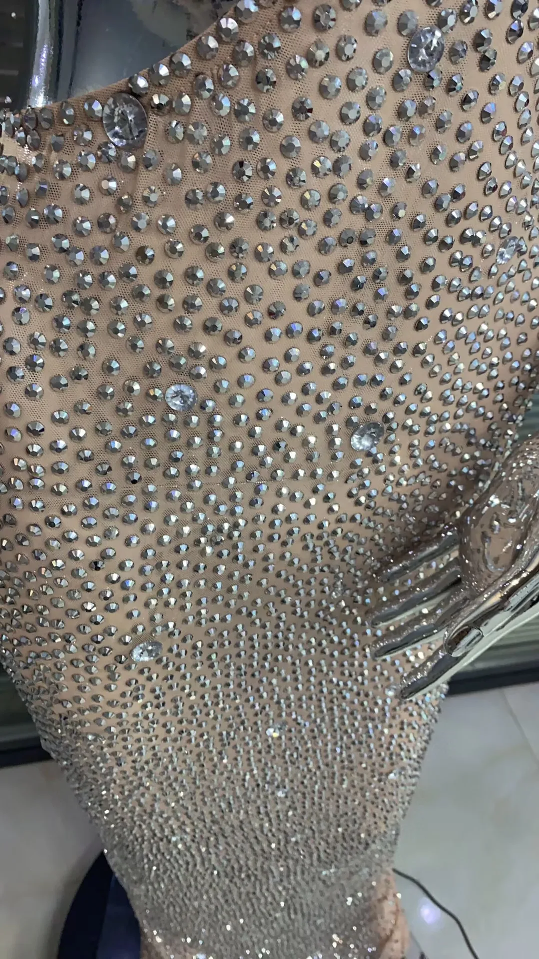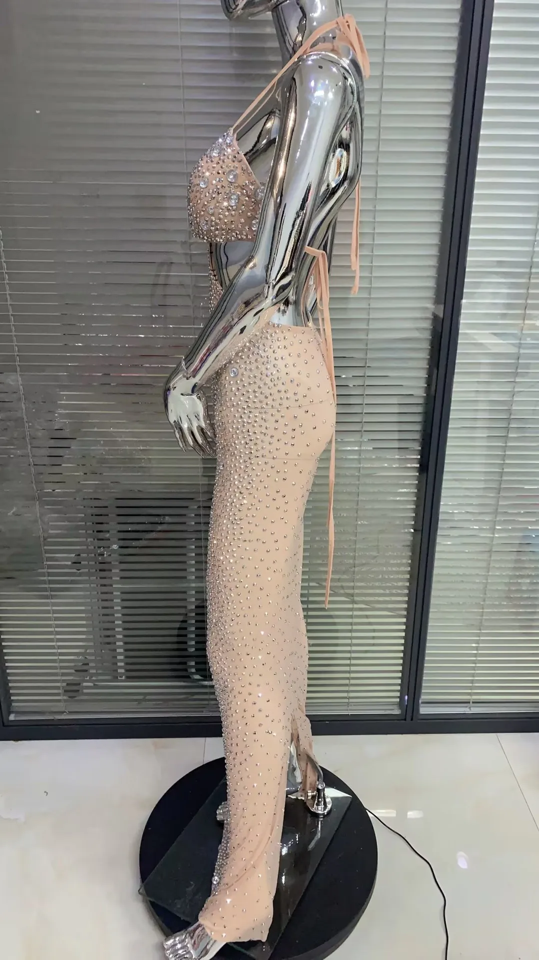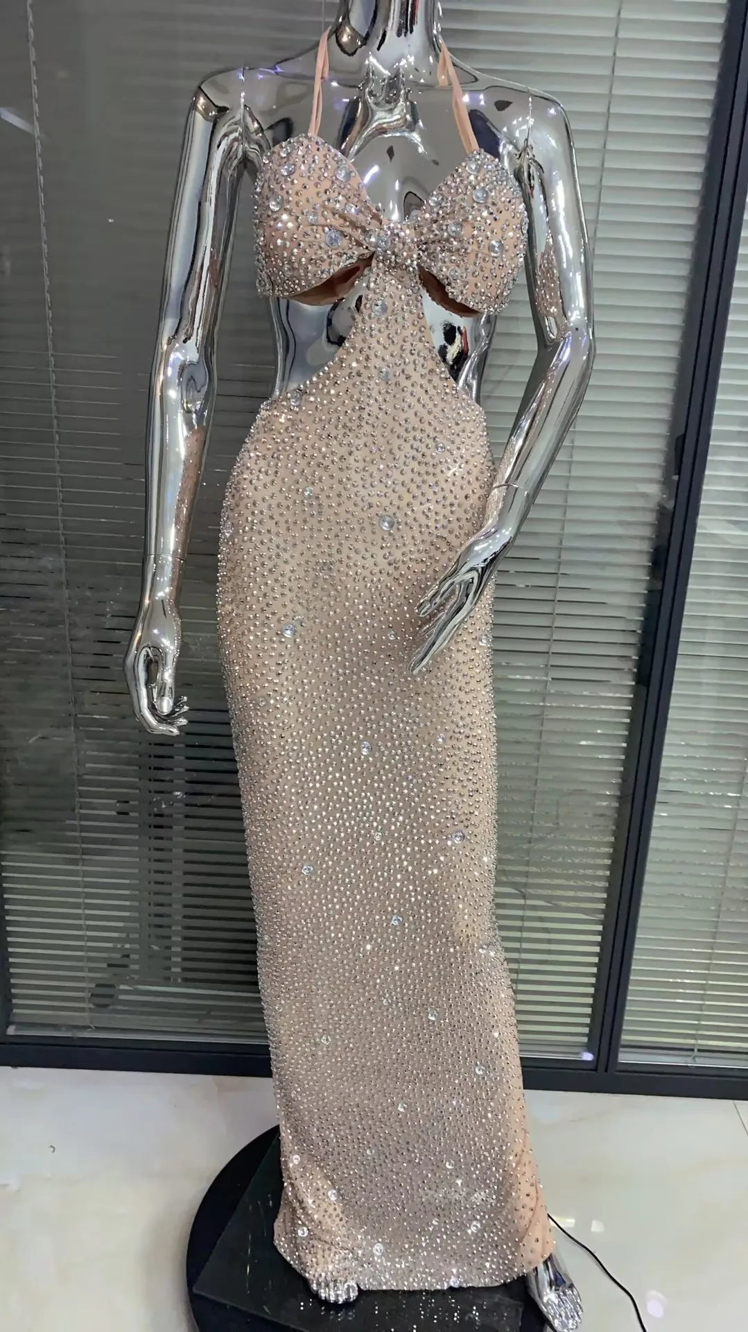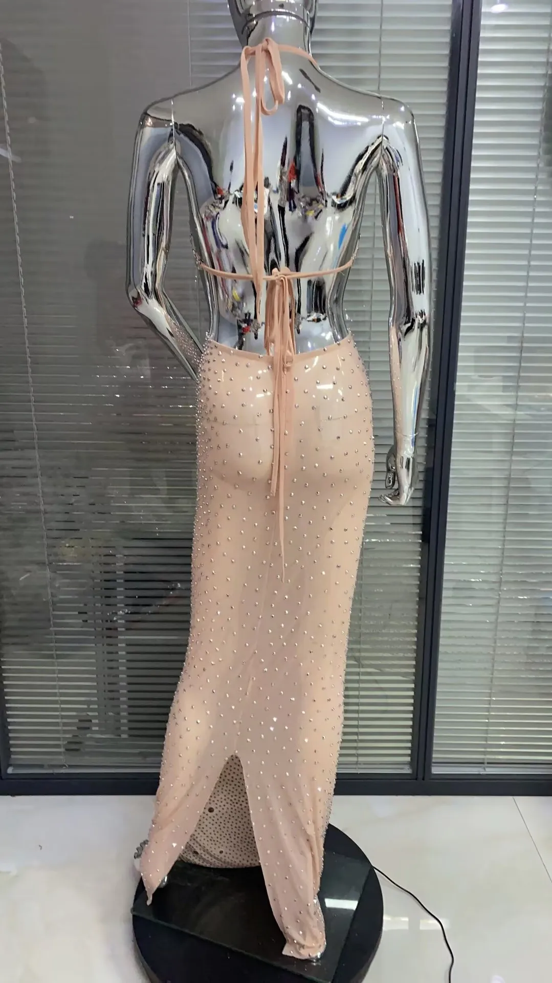 Women Partying Luxury Dress Diamond Rhinestones Halter Slit Sleeveless Design Elegant Evening Gown Dress Autotest K005