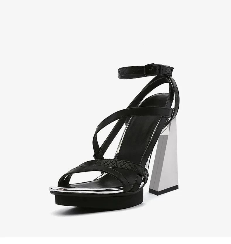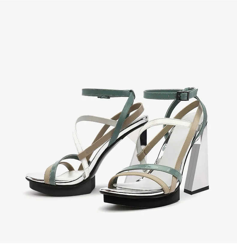 Women Platform Shoes Simple Color Patchwork Open-toe Mujer Shoes Round-toe Ankle Strap High Heel Sandals Ladies Dating Sandalias