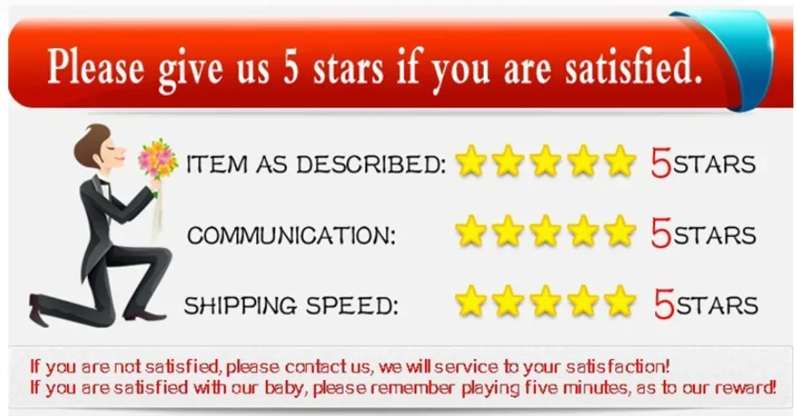 give us a 5 star review,your small actiong will be of great help to our store.If there are anything wrong with our goods,please feel free to contact us ,we will give you best solution to solve the problem.