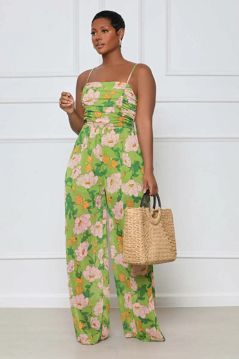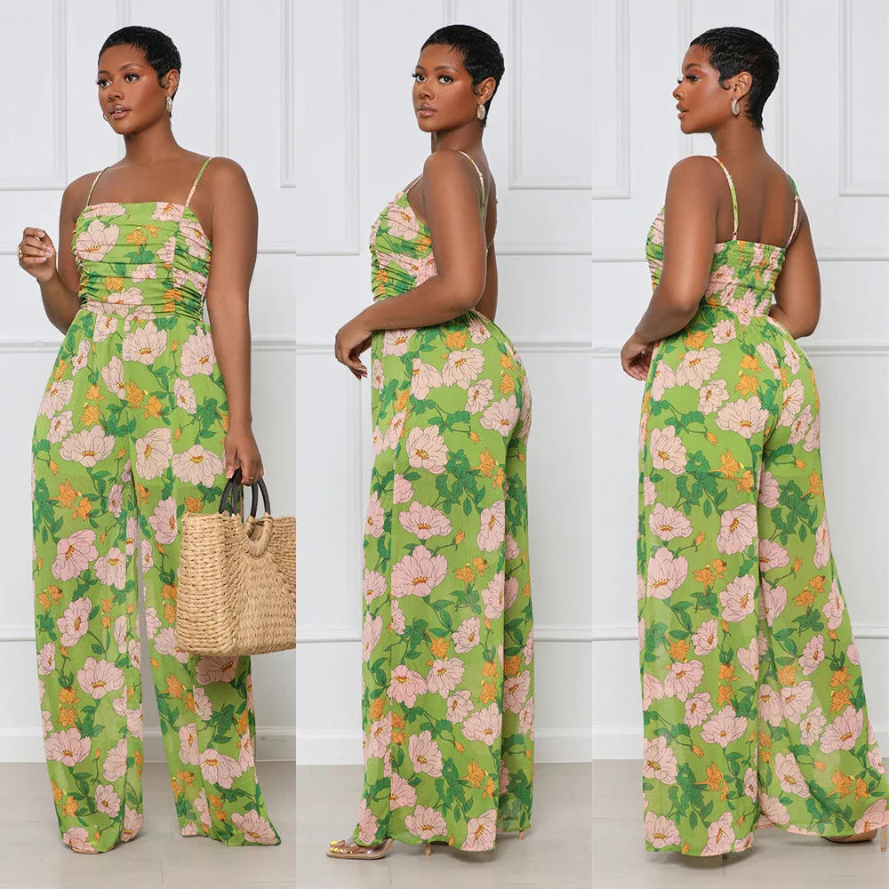 Women Plus Size Clothes One Piece Floral Jumpsuit Wide Leg Pant For Women