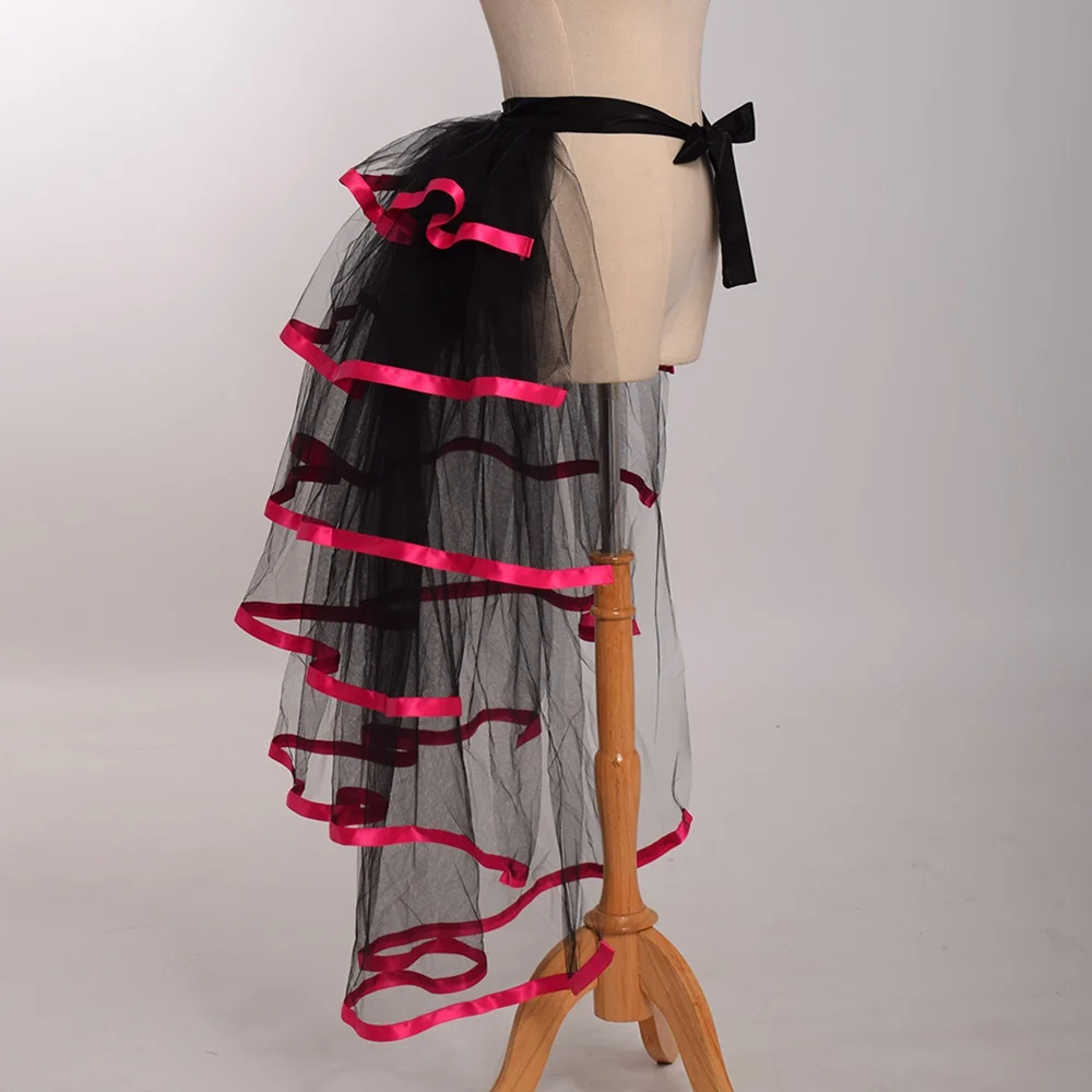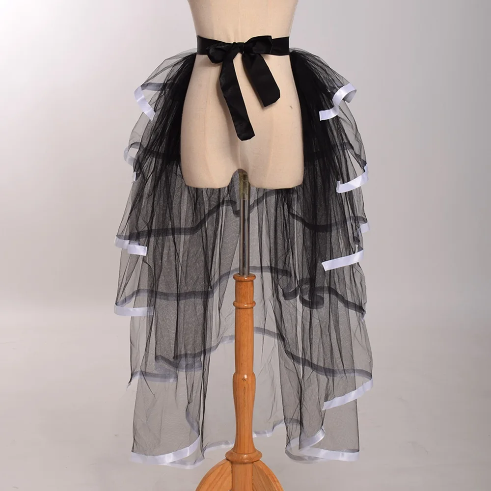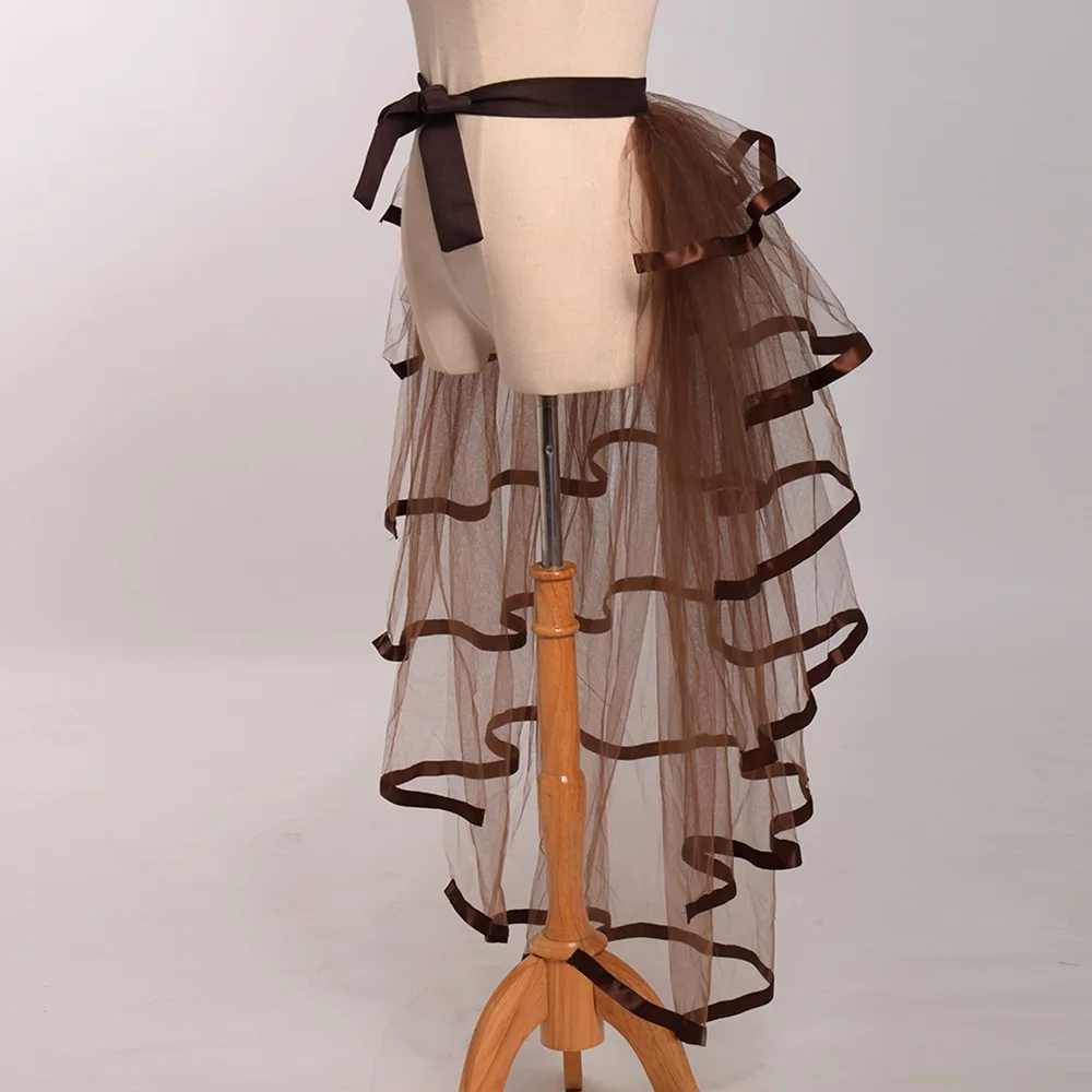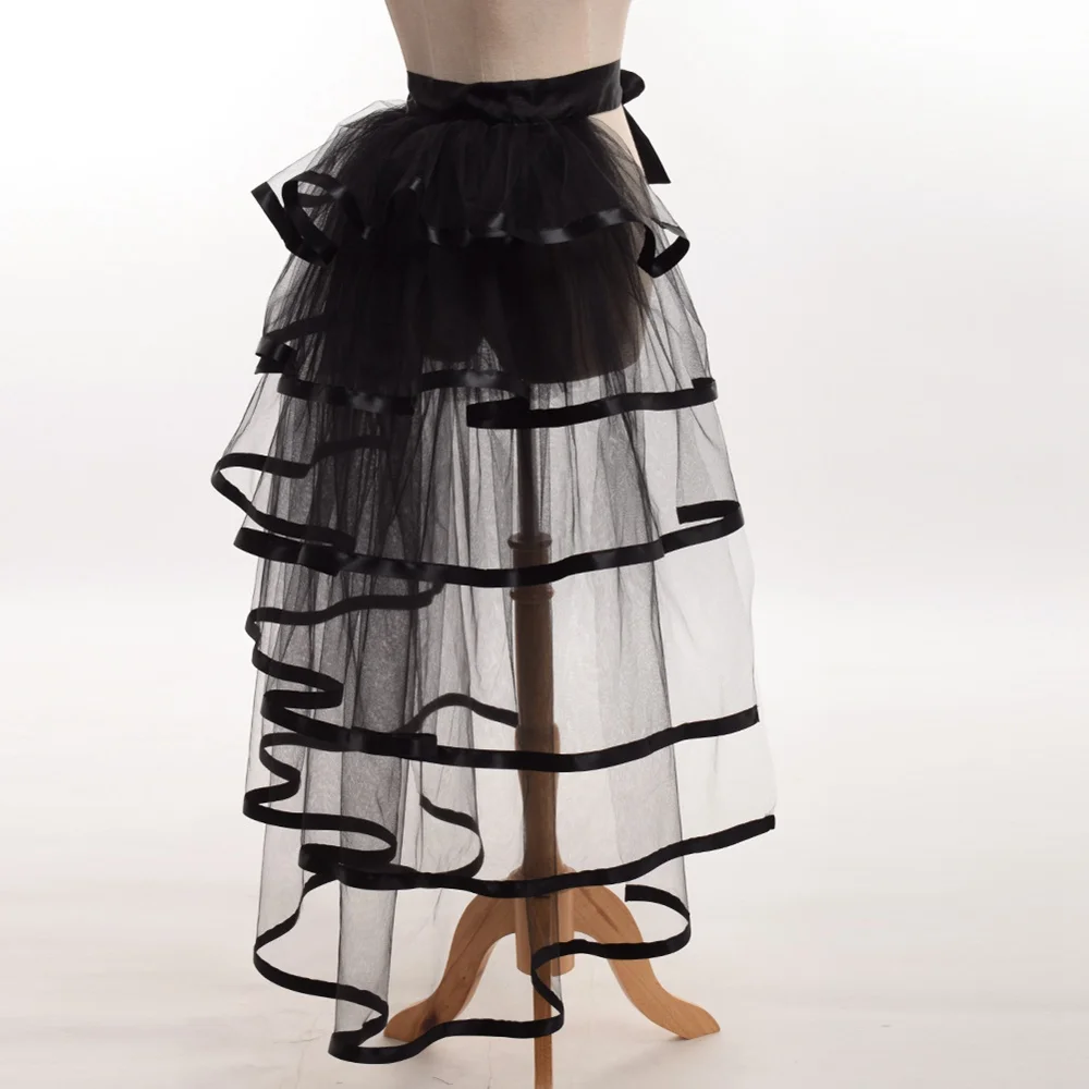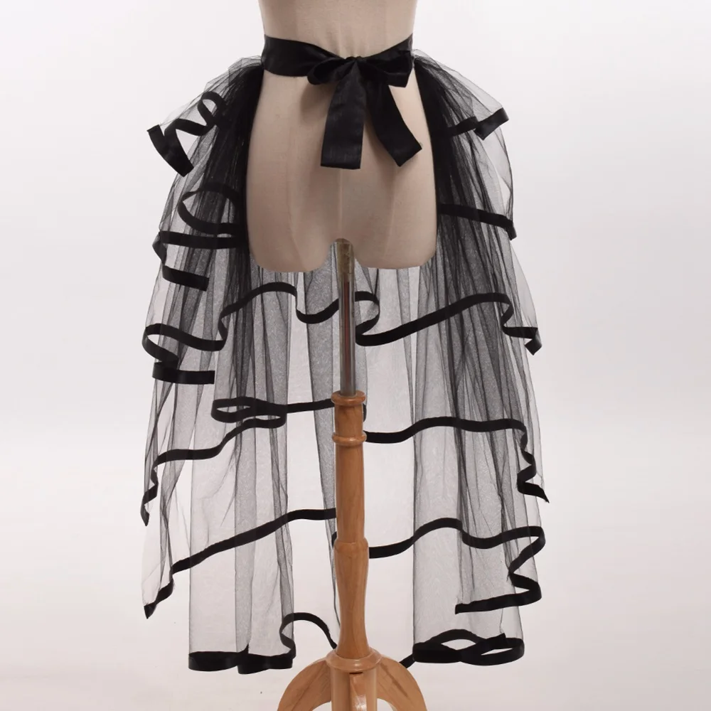 Women Punk Puffy Ruffle Tutu Bustle Skirts Sexy Steampunk Cocktail Party Tie-on Overskirt Gothic Tulle Skirt for Female
