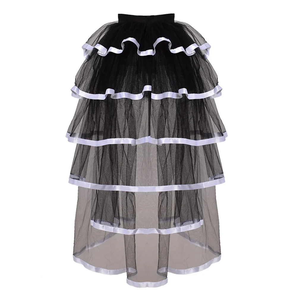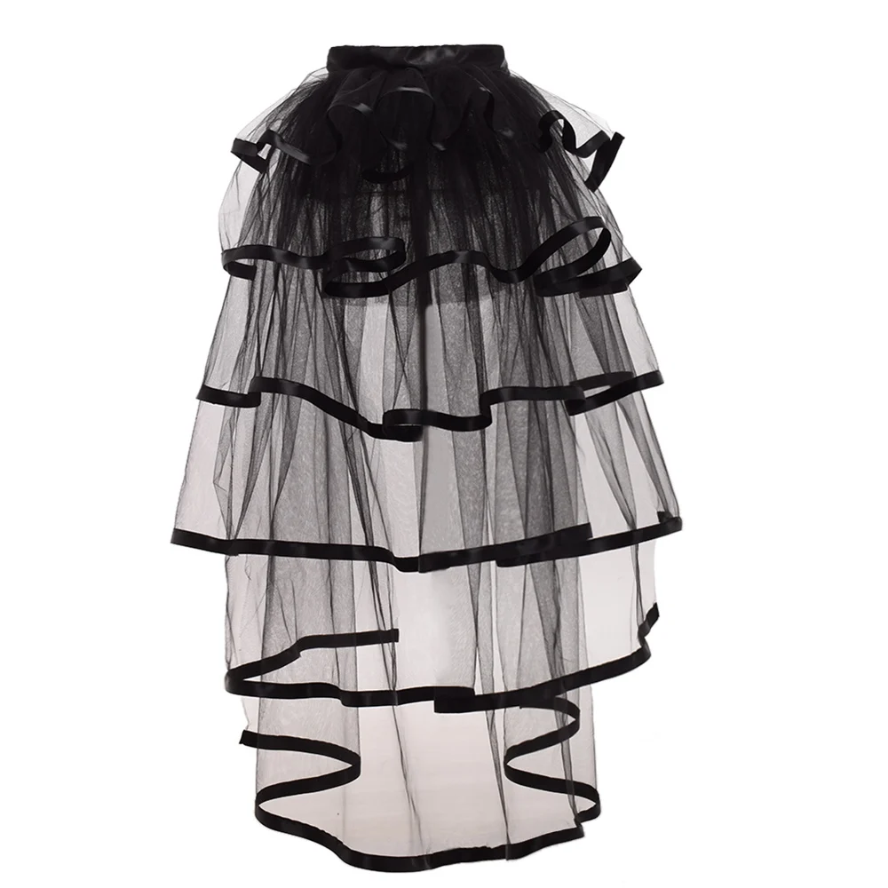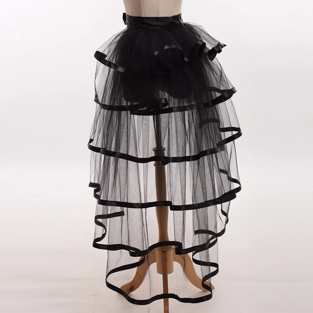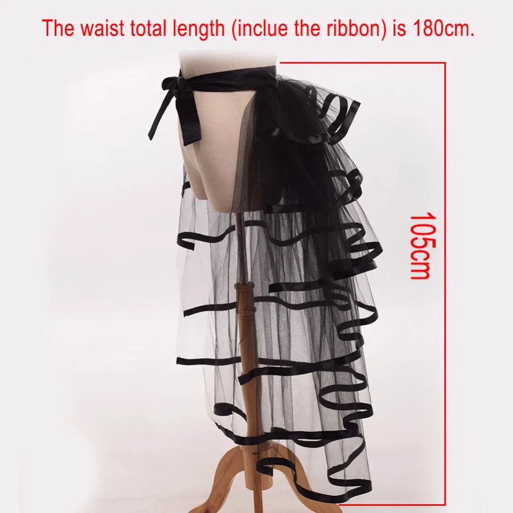 Women Punk Puffy Ruffle Tutu Bustle Skirts Sexy Steampunk Cocktail Party Tie-on Overskirt Gothic Tulle Skirt for Female