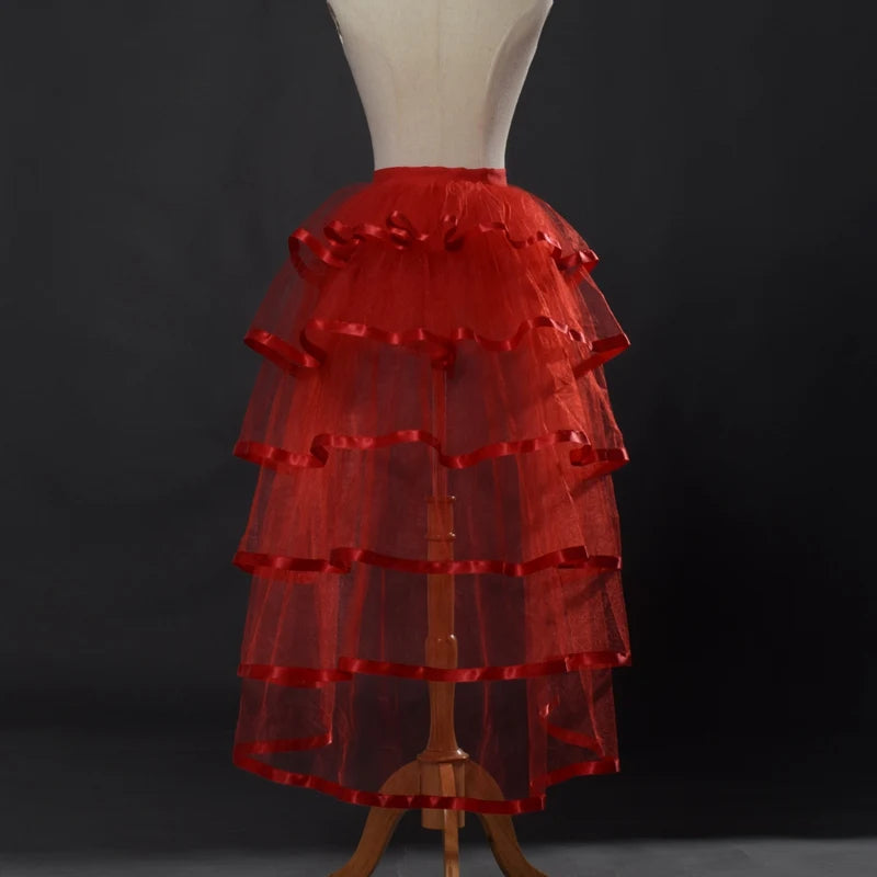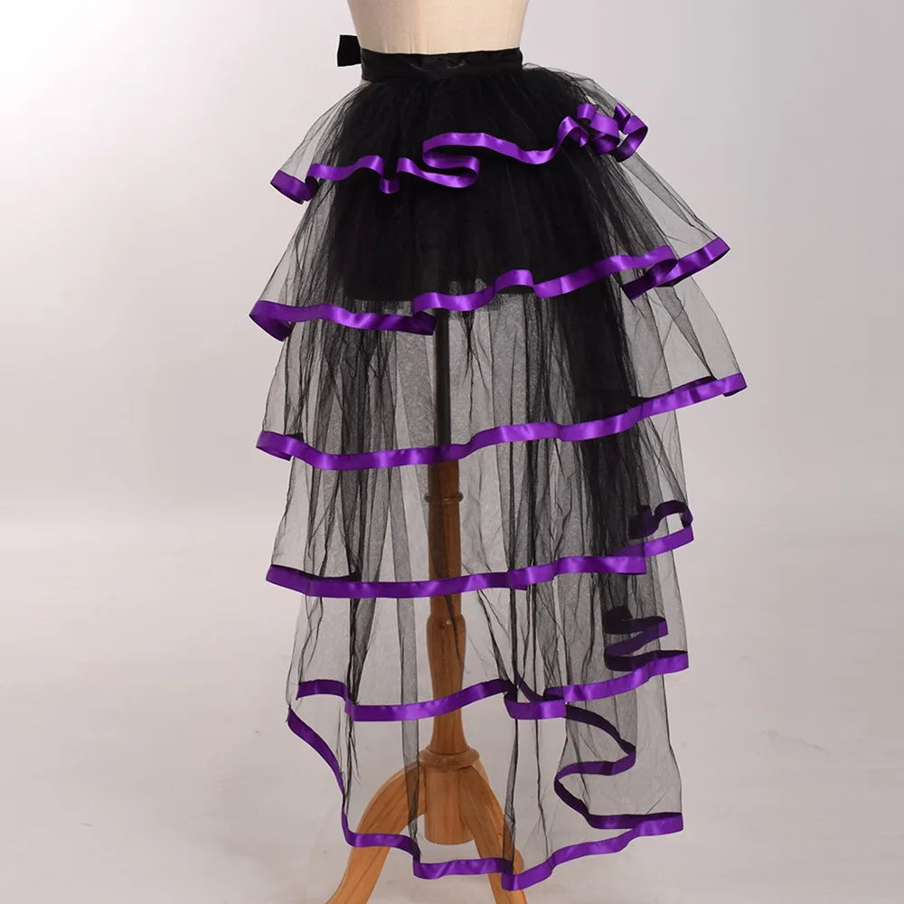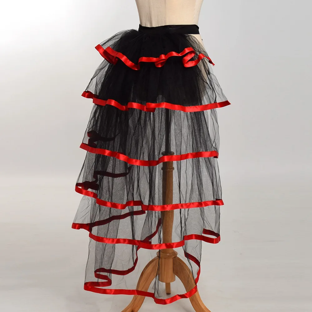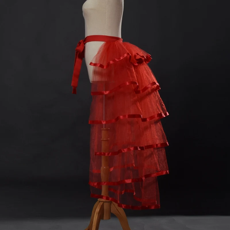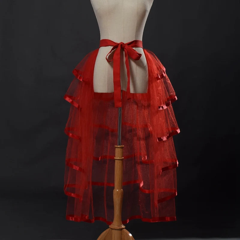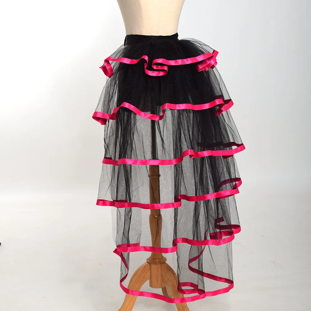 Women Punk Puffy Ruffle Tutu Bustle Skirts Sexy Steampunk Cocktail Party Tie-on Overskirt Gothic Tulle Skirt for Female