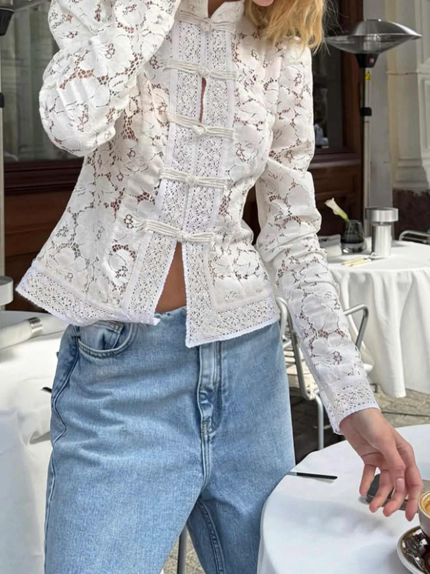 Add a touch of sophistication to your wardrobe with our lace shirt, perfect for a stylish and trendy look.