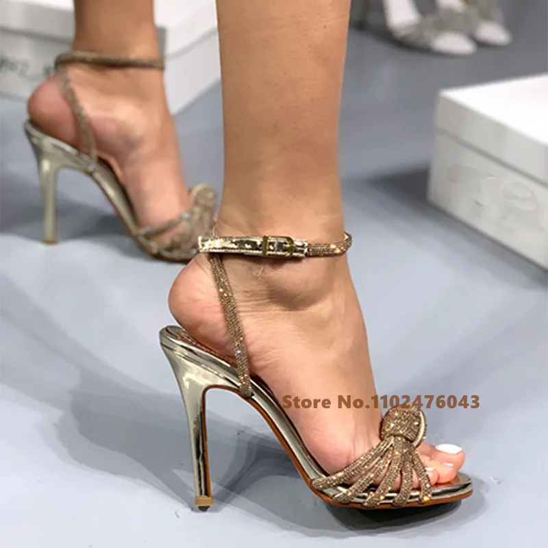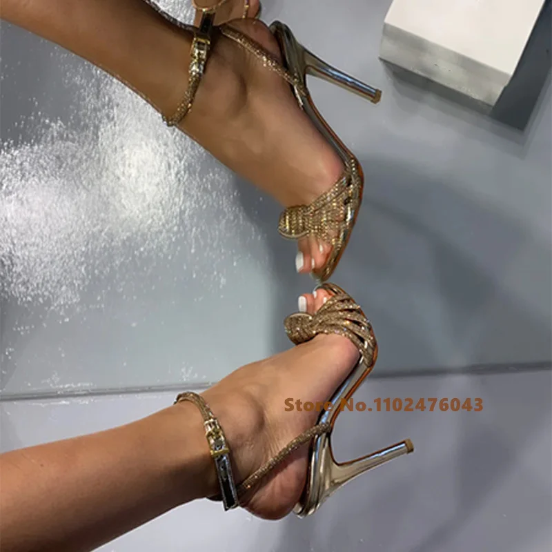 Women Sandals Sexy High Heels Peep Toe Rhinestones Summer New Brown Crystal Buckle Strap Stiletto Heel Party Dress Sandals