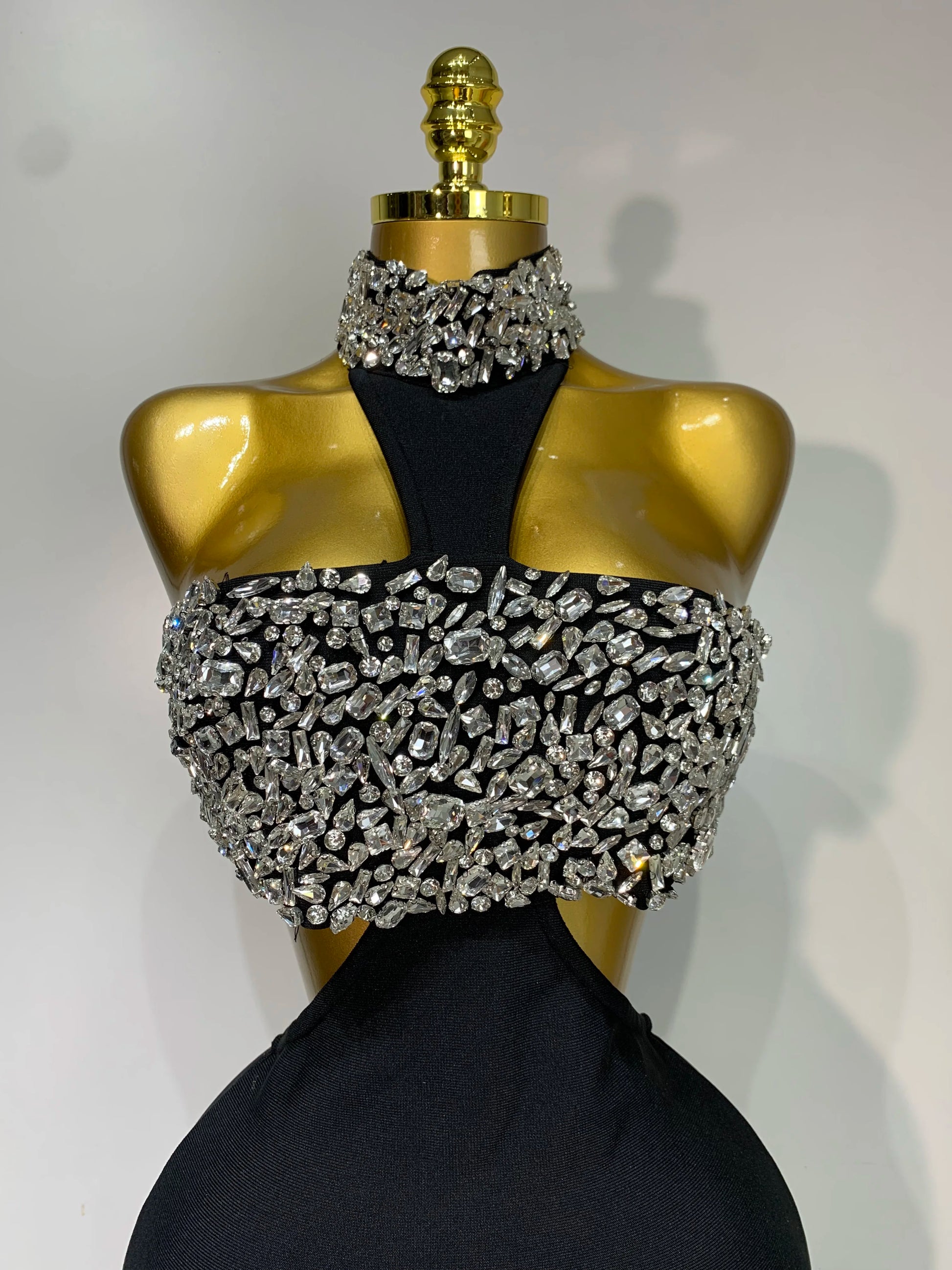 Women Sexy Backless Sparkly Crystal Diamonds Black Bodycon Bandage Dress Celebrity Elegant Evening Club Party Birthday Dresses