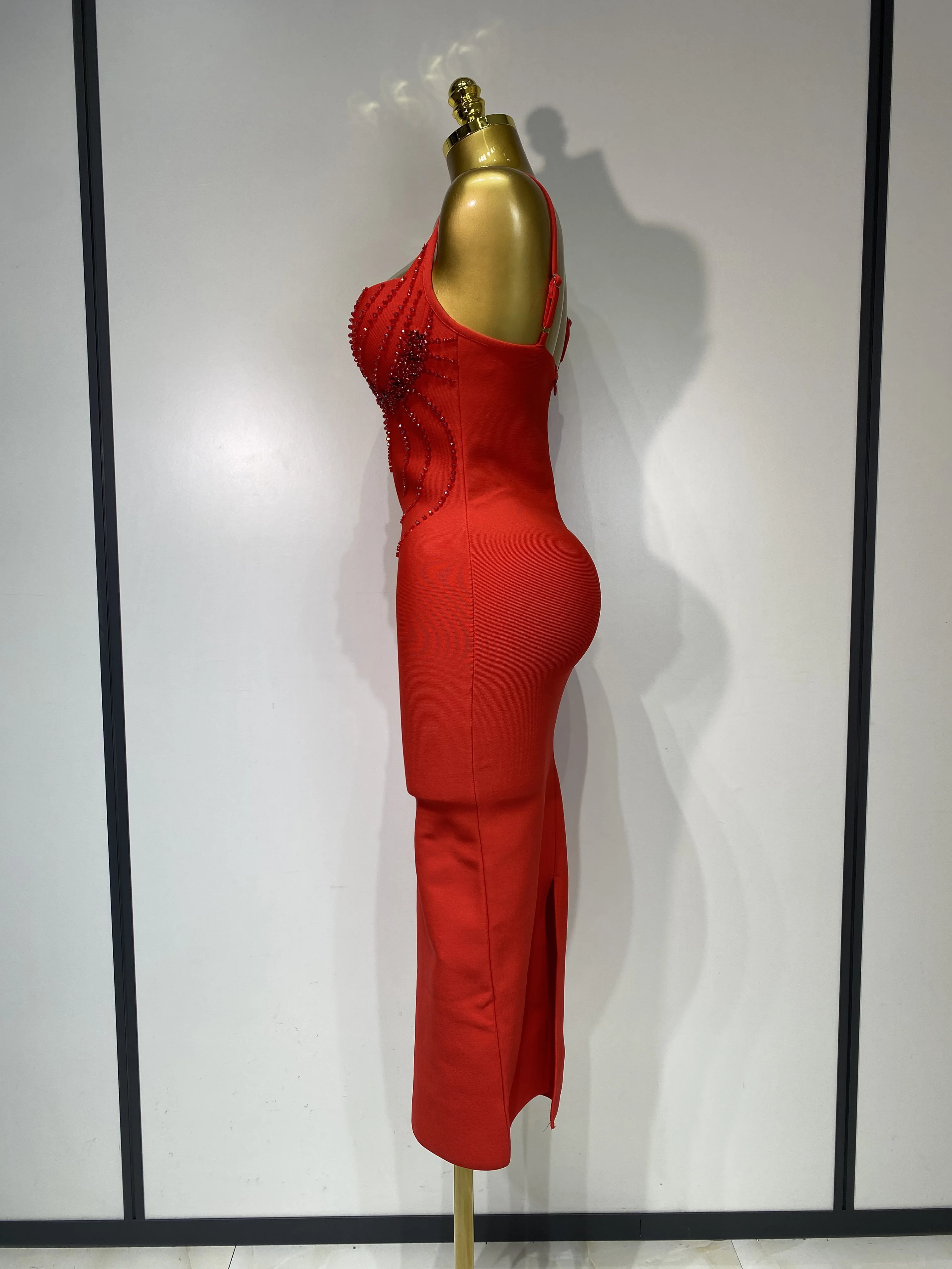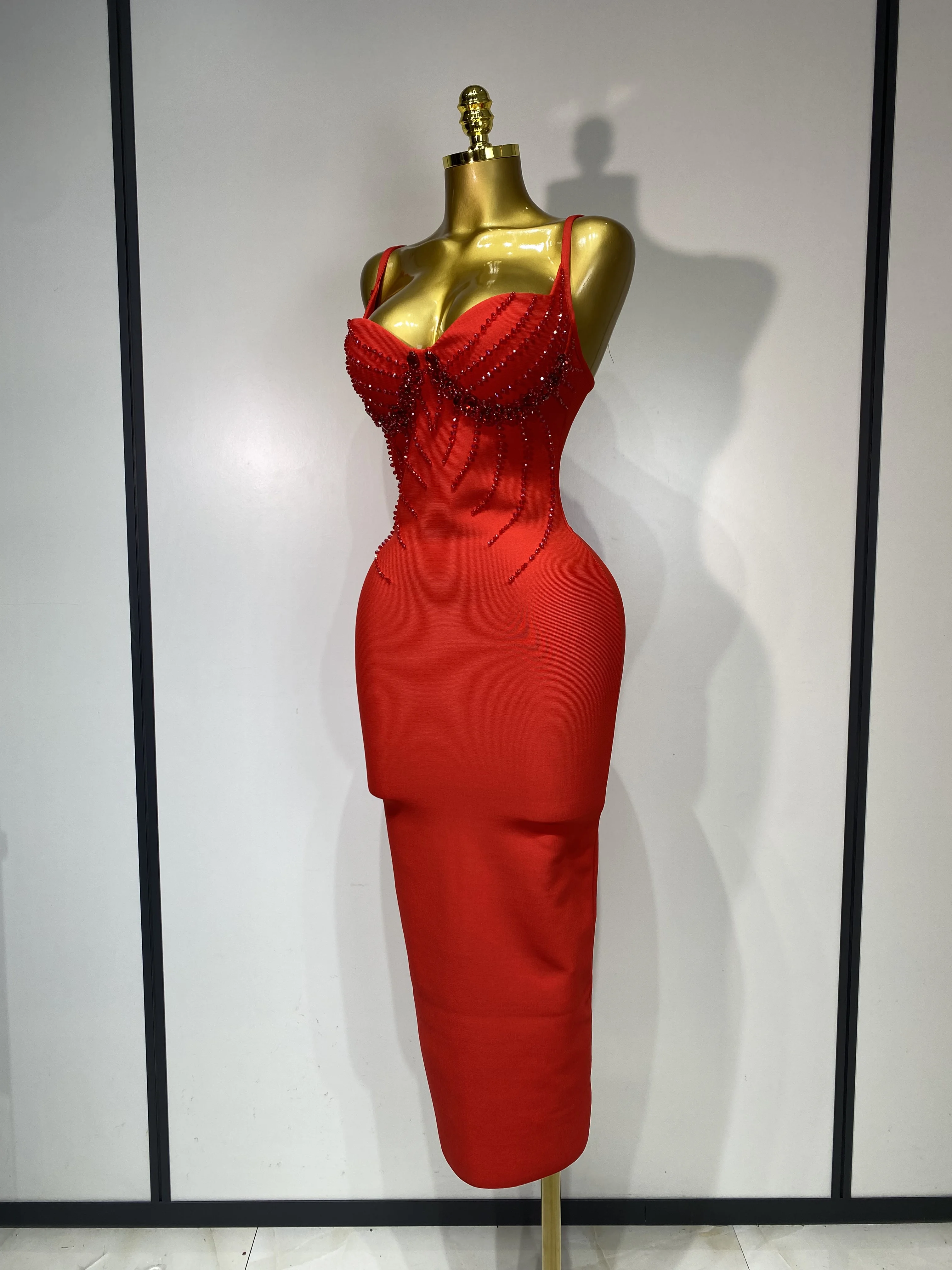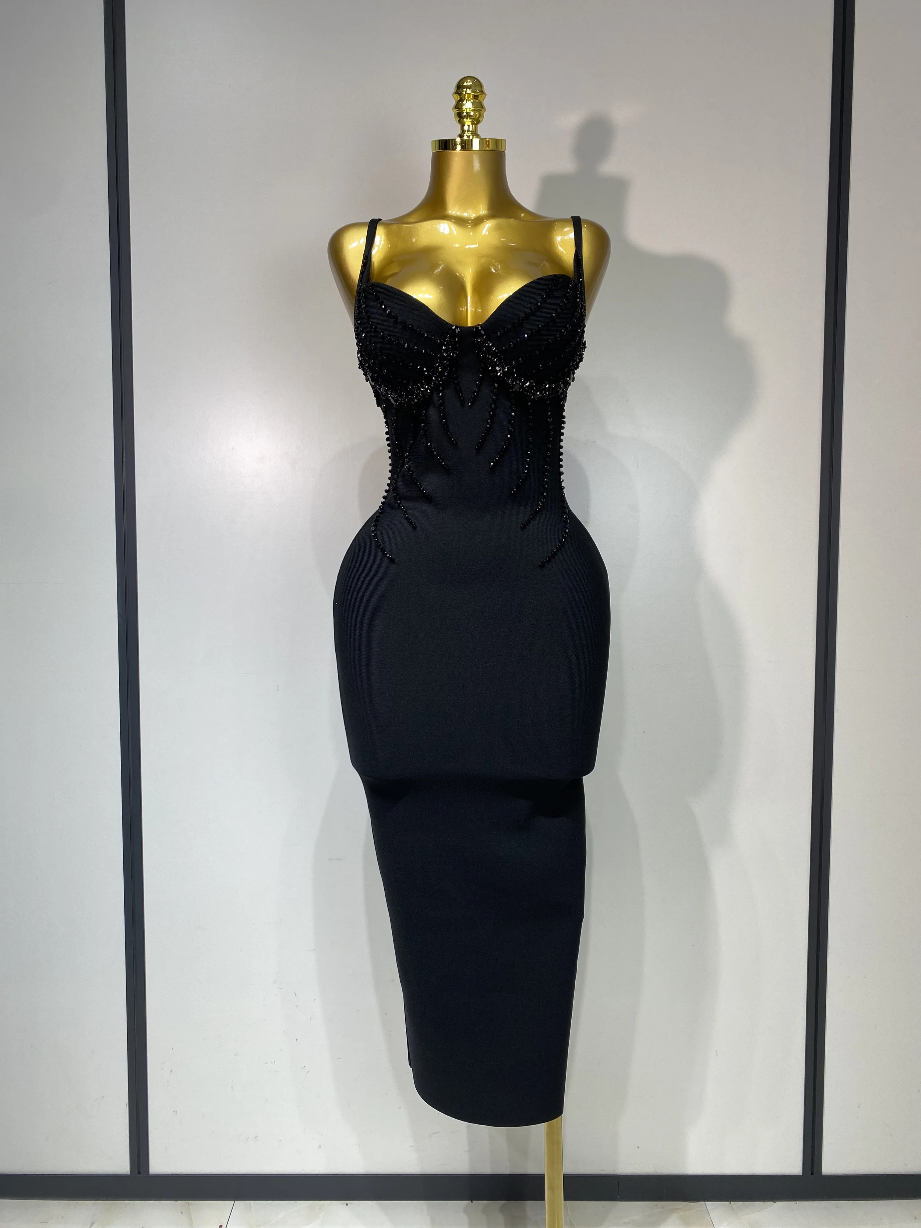 Women Sexy Beading Spaghetti Strap Bodycon Bandage Dress Club Party Luxury Birthday Celebrity Elegant Dresses Wedding Guest Gown