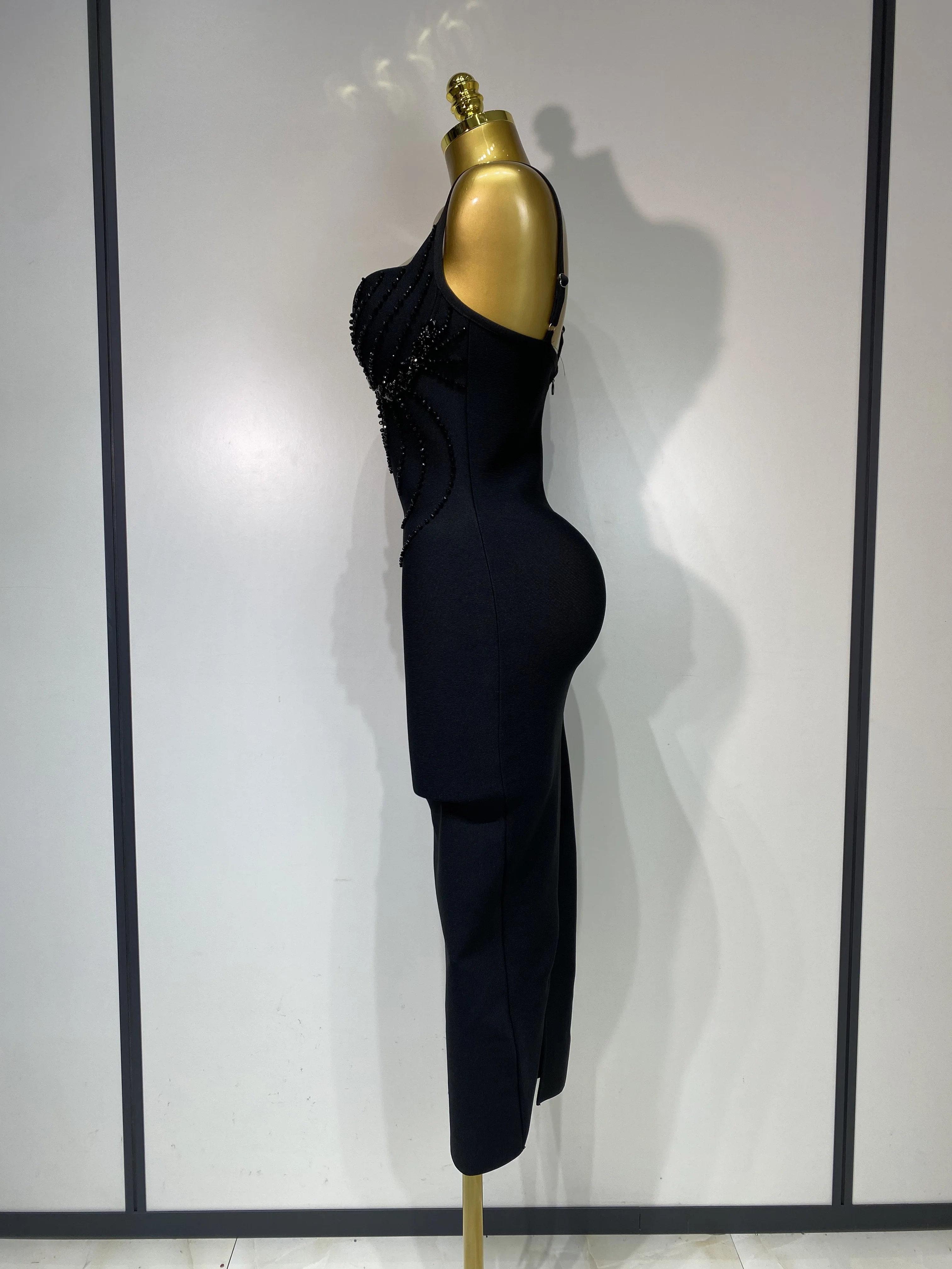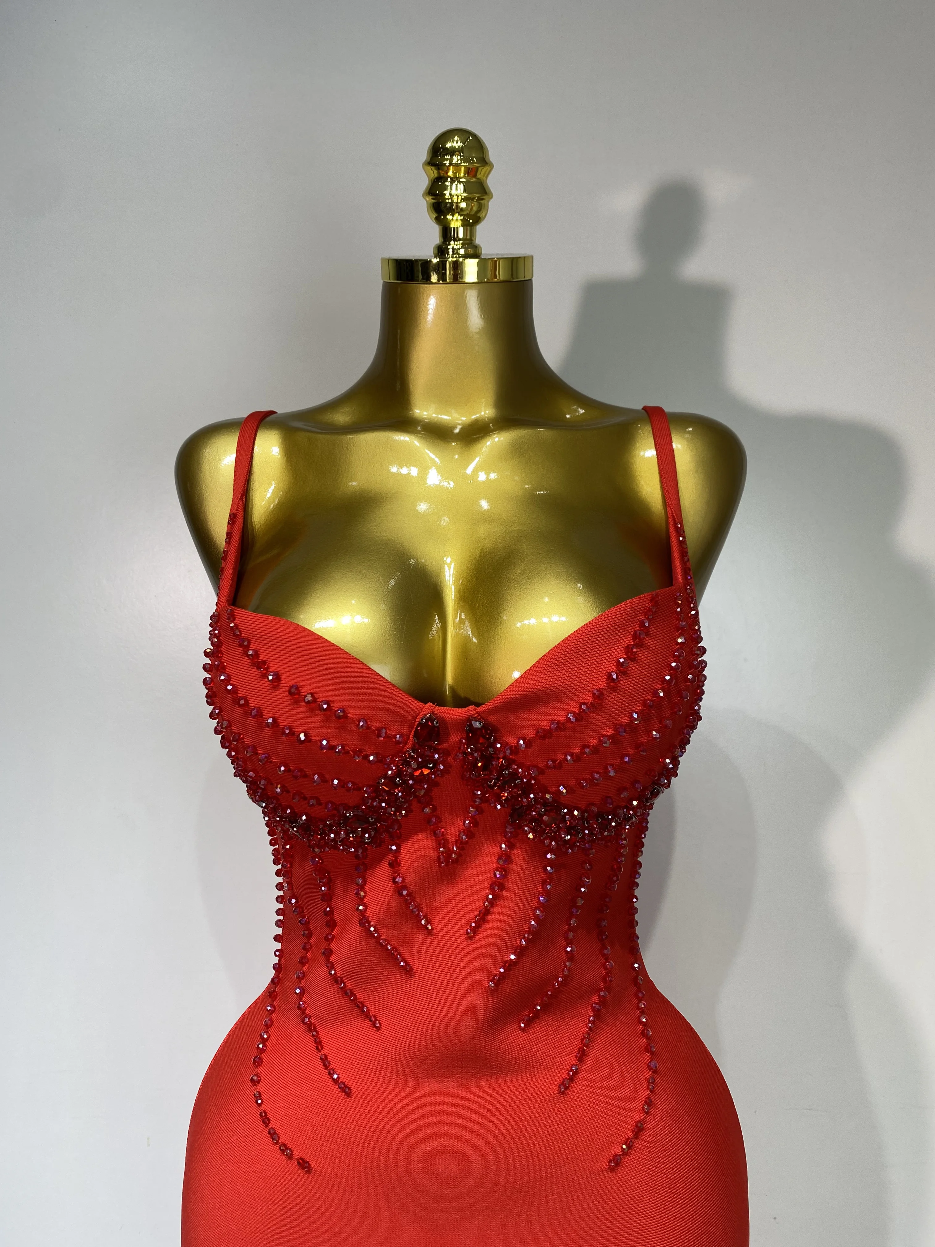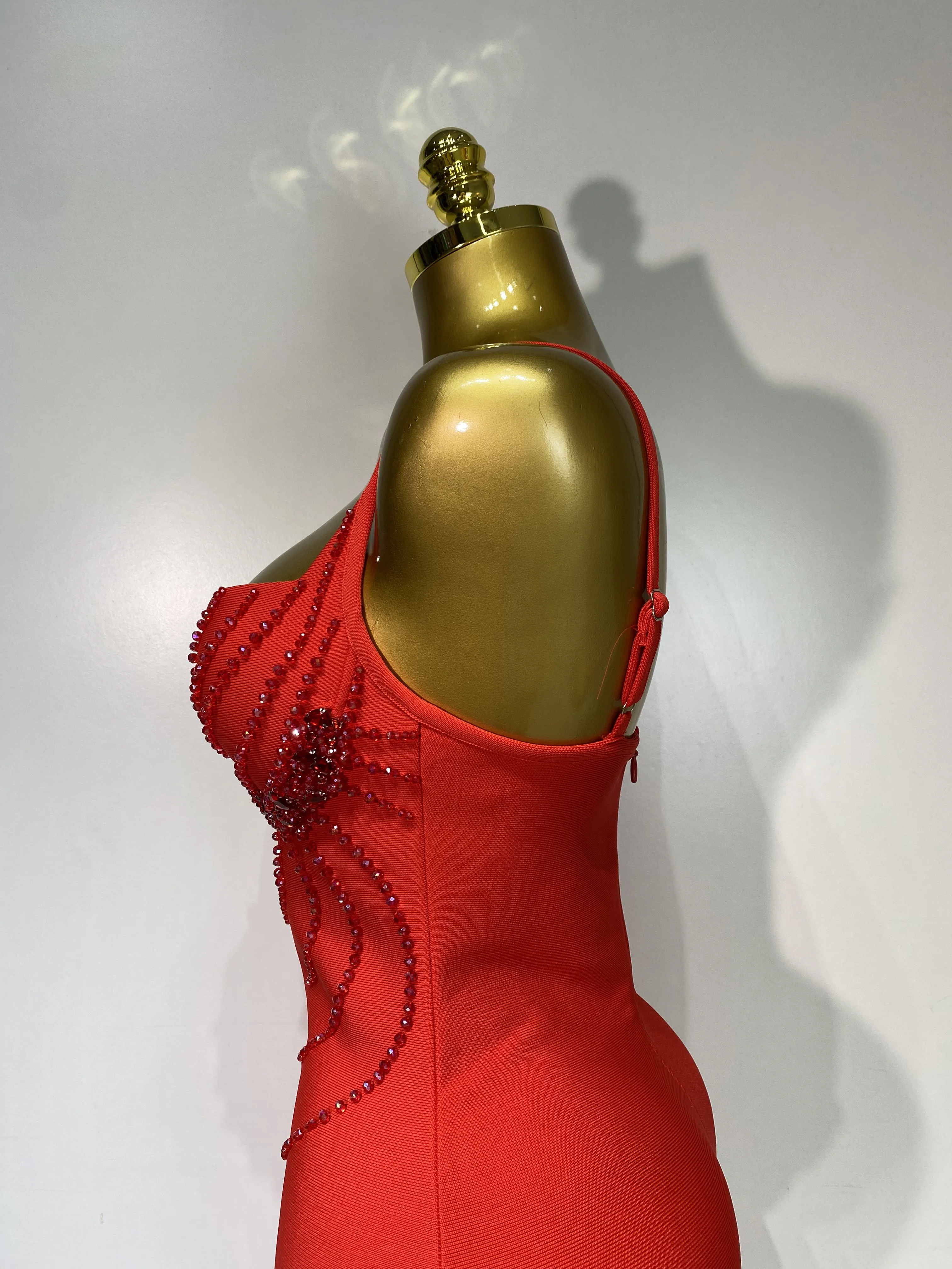 Women Sexy Beading Spaghetti Strap Bodycon Bandage Dress Club Party Luxury Birthday Celebrity Elegant Dresses Wedding Guest Gown
