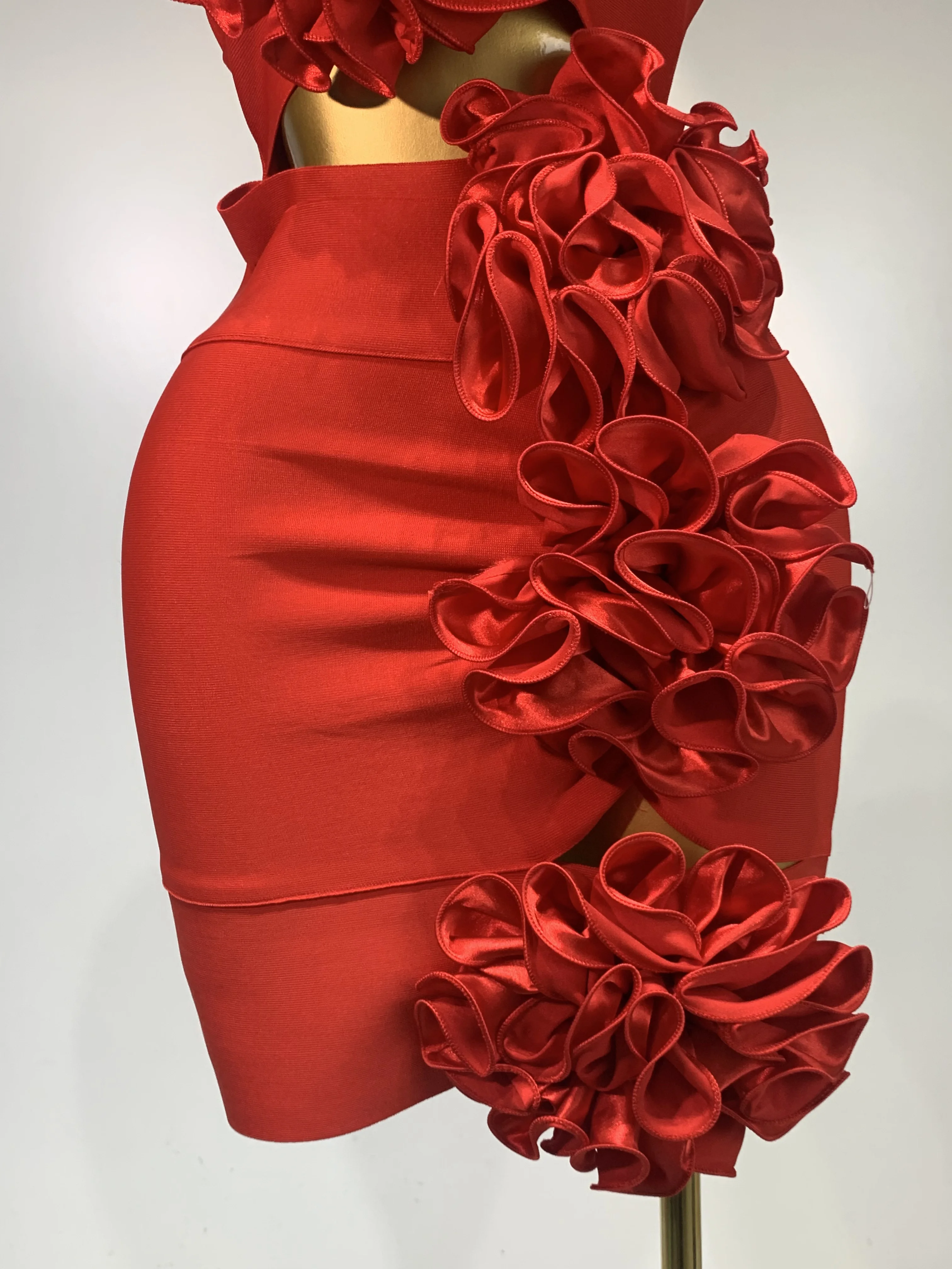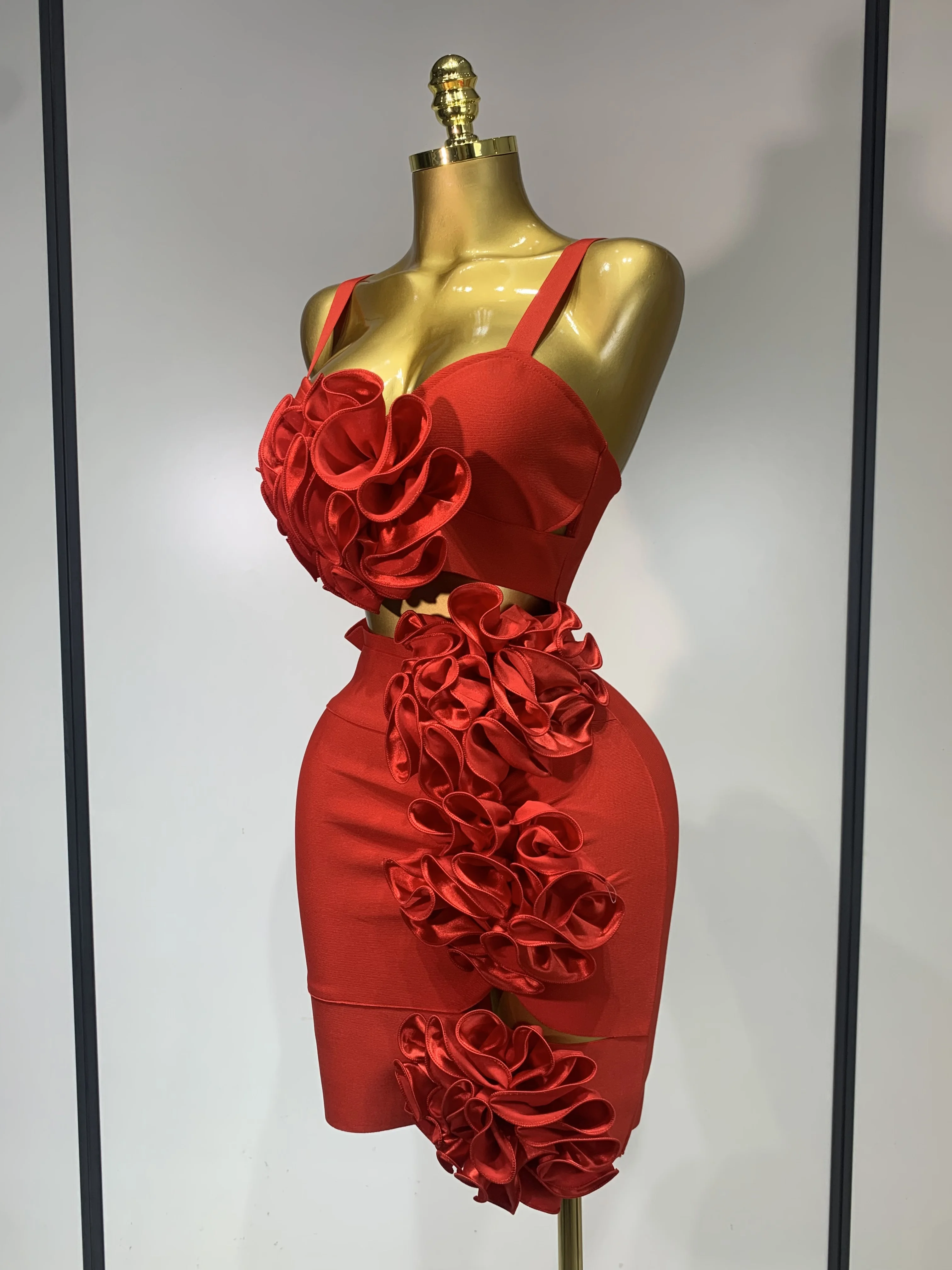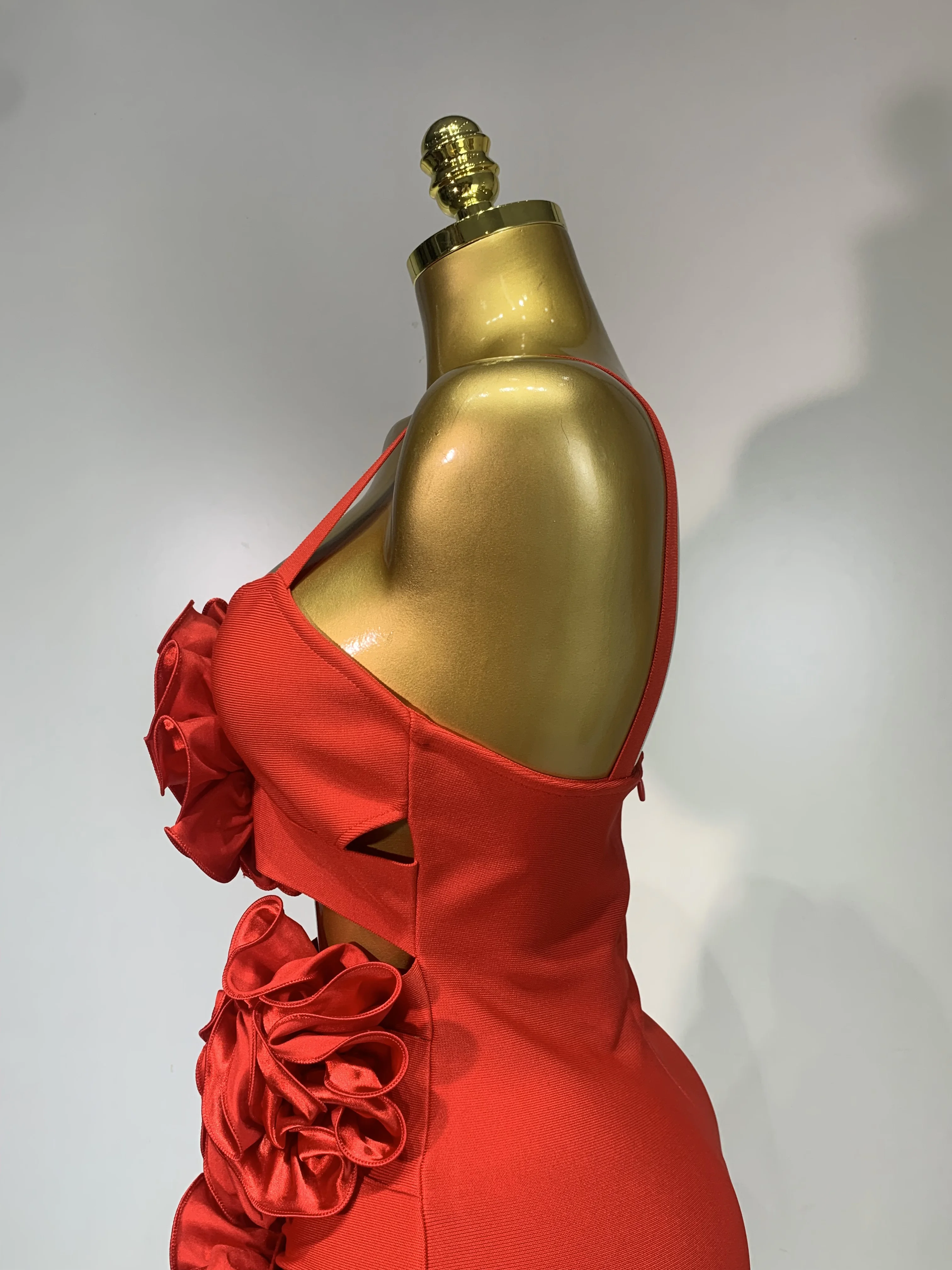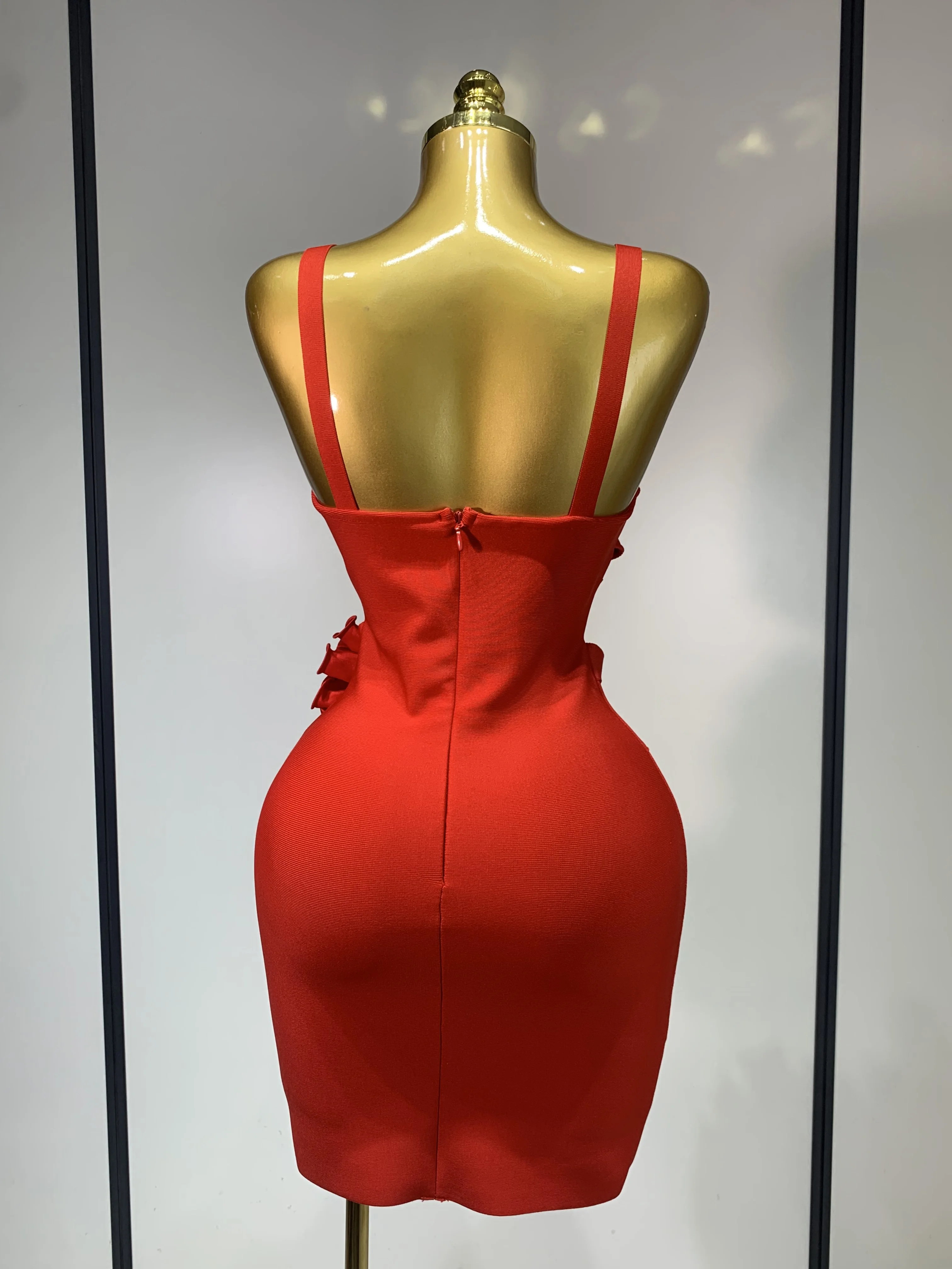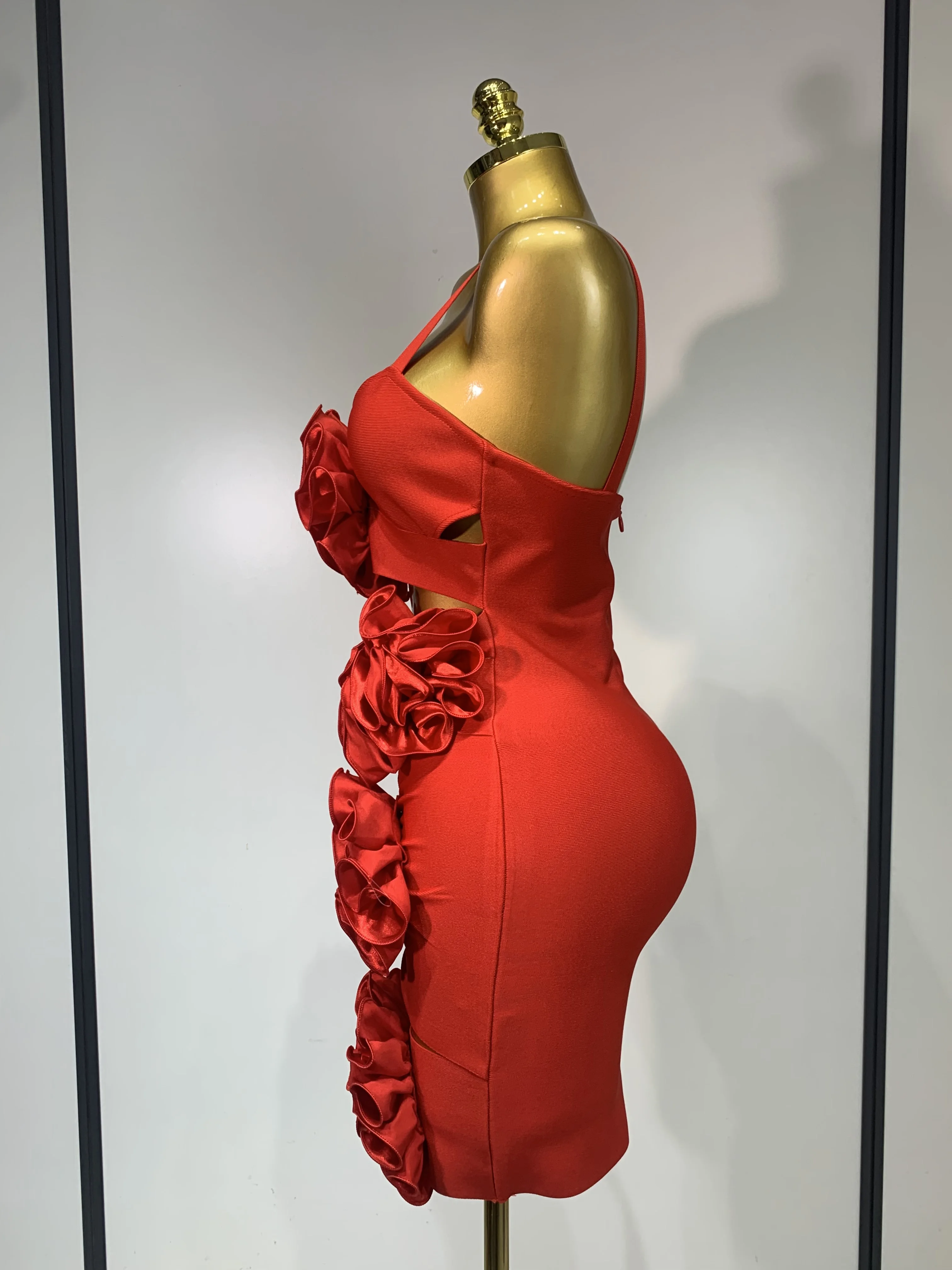 Women Sexy Cut Out Bodycon Flower Mini Dress Women Red Backless Dress Nightclub Celebrity Elegant Evening Party Birthday Dress