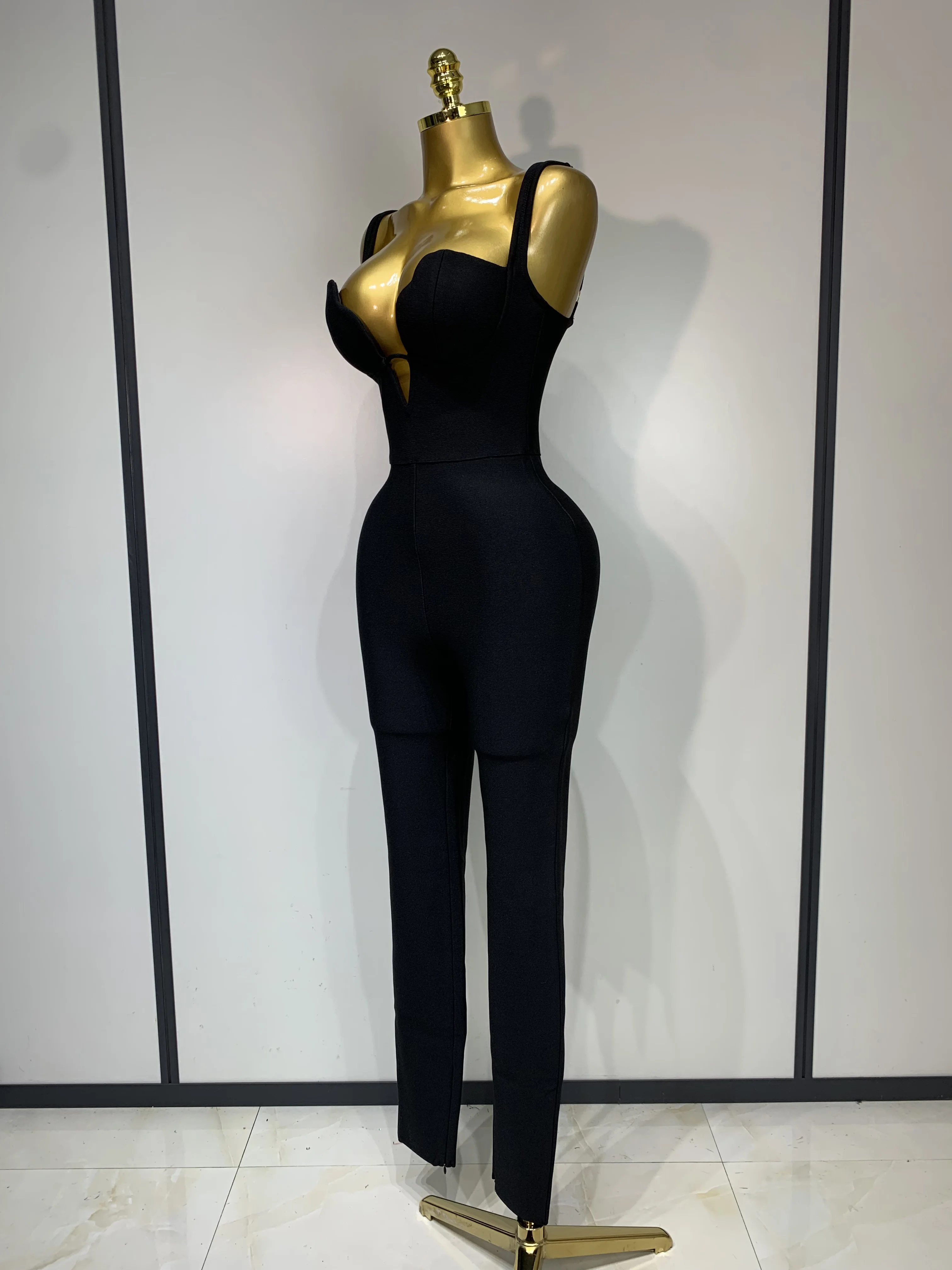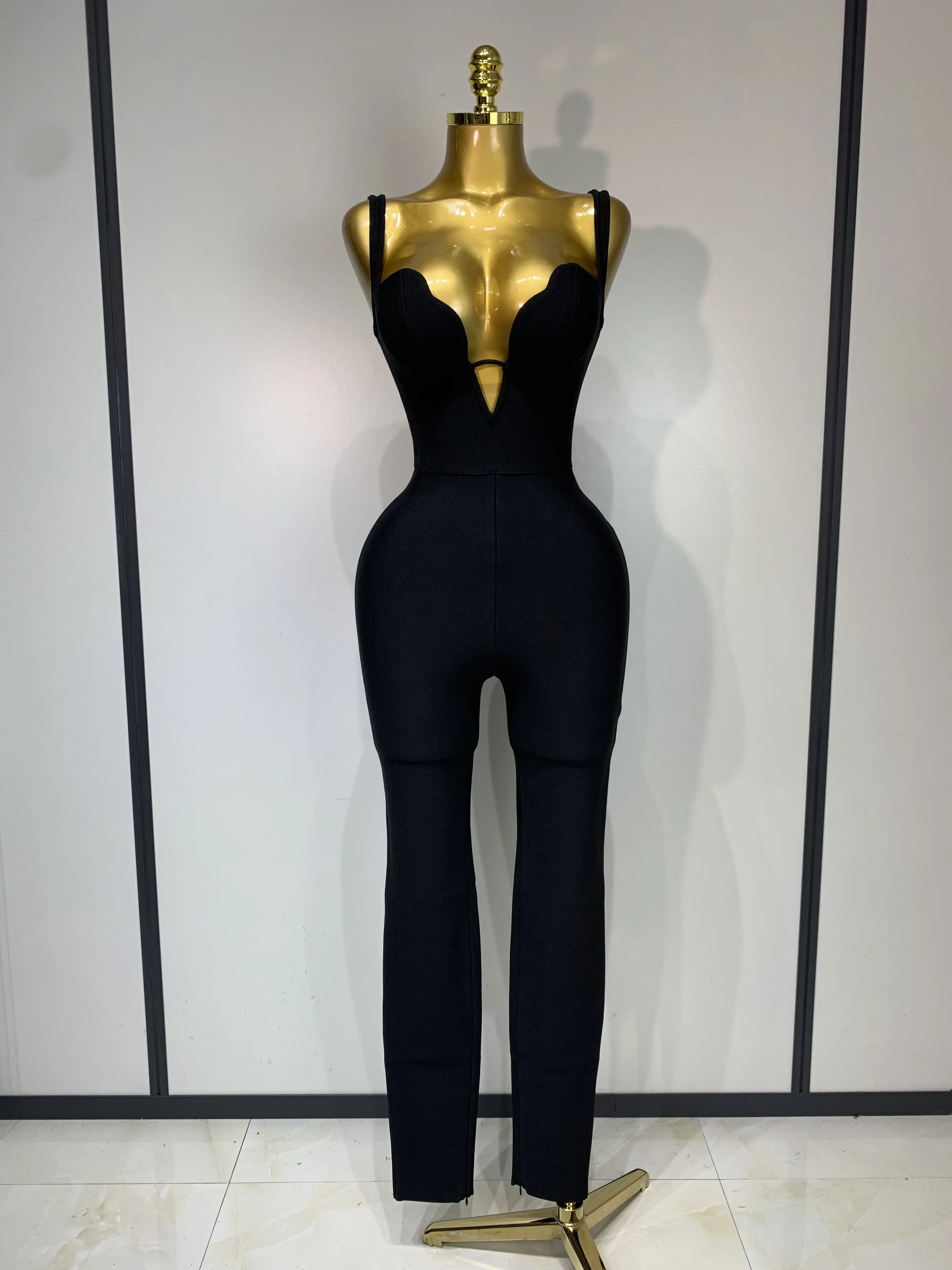 Women Sexy Sleeveless V-Neck Bodycon Bandage Jumpsuit Celebrate Birtyday Fancy Club Party Cocktail Outfit Evenin Party Gown