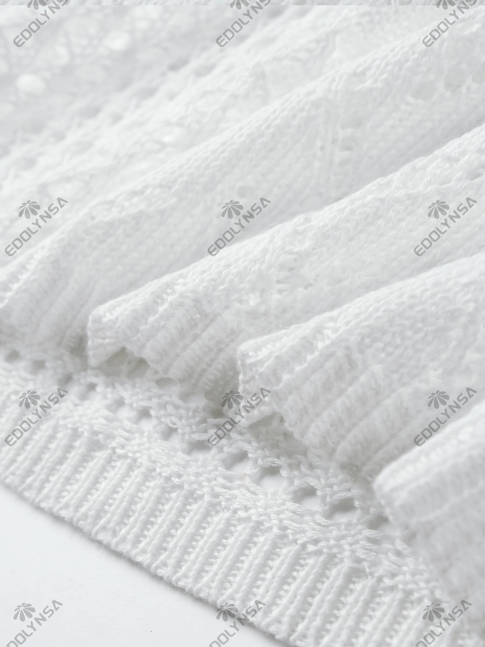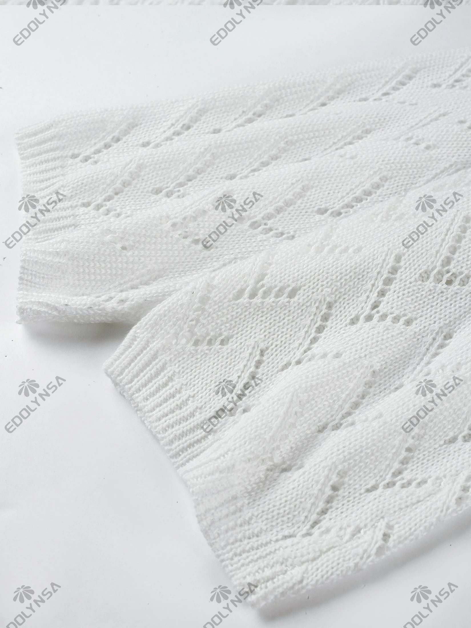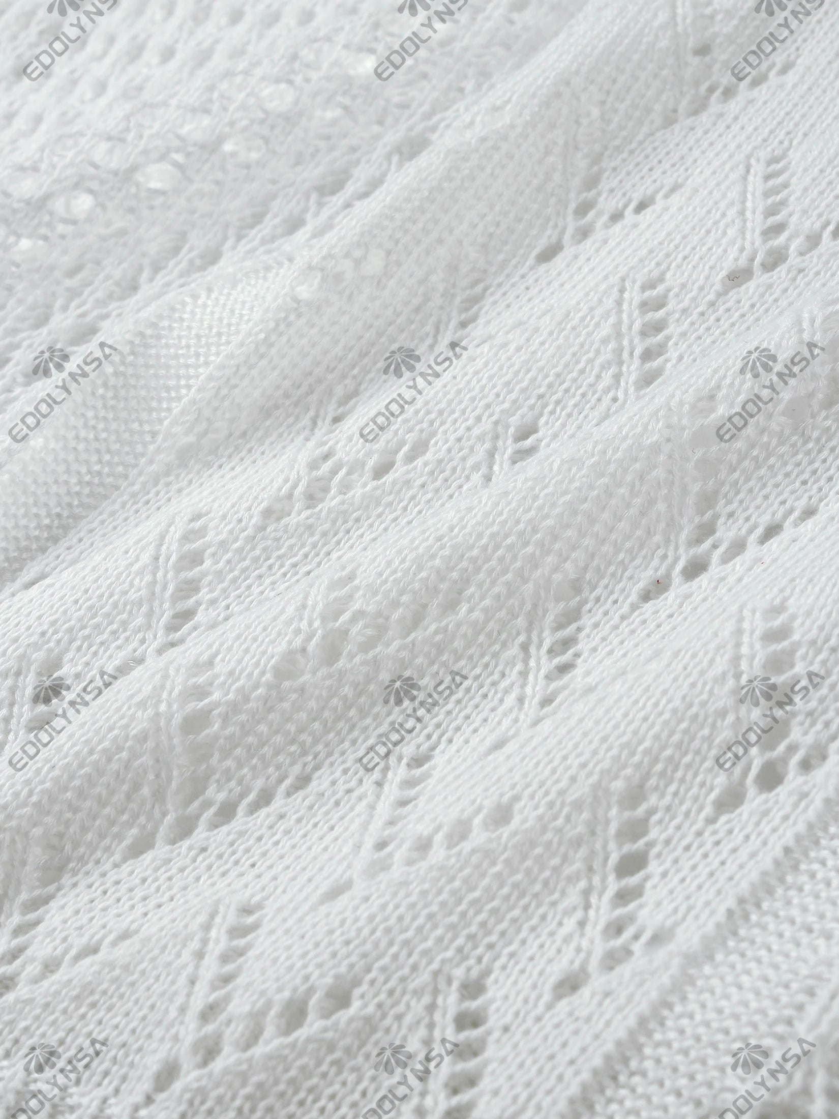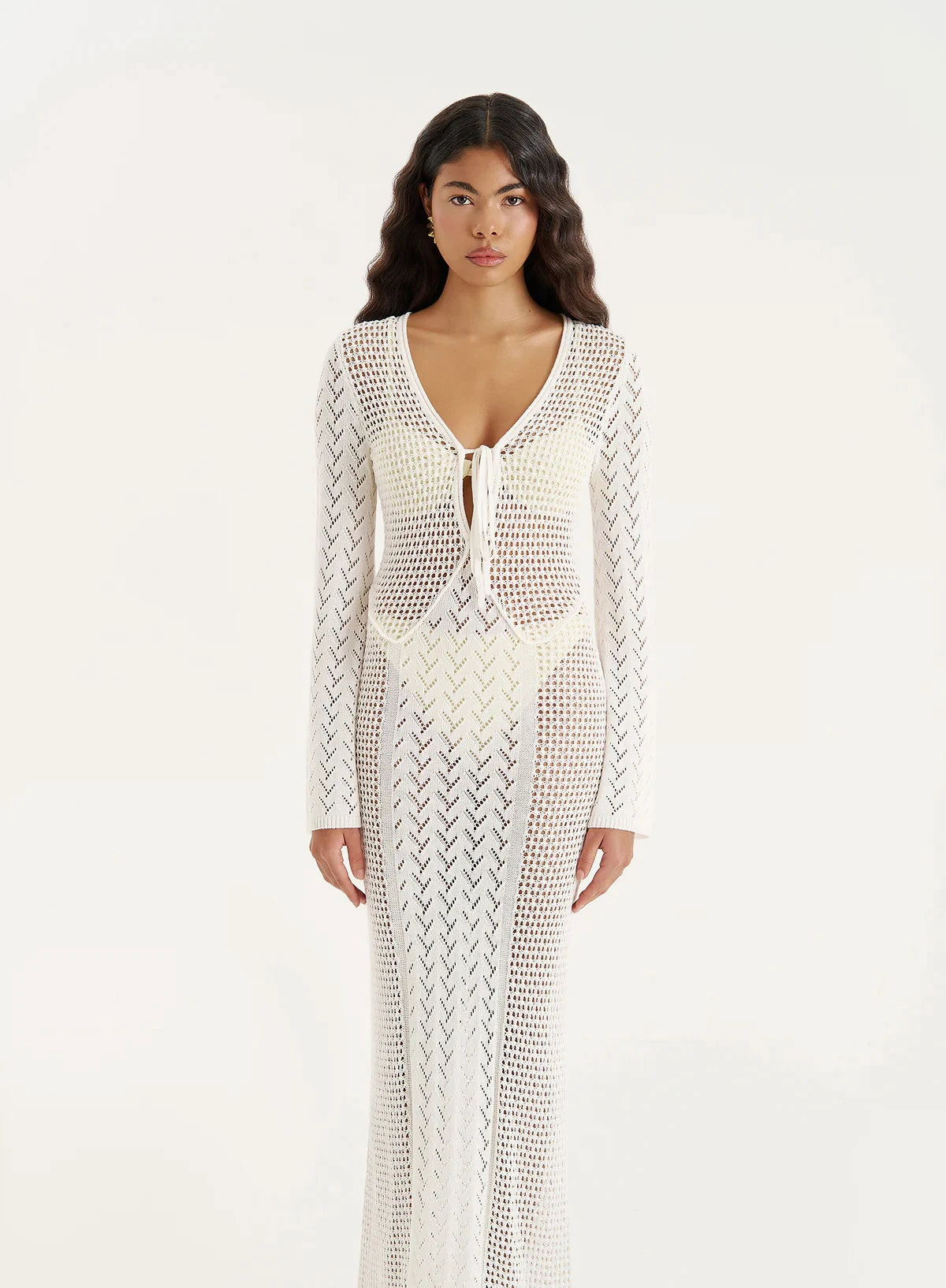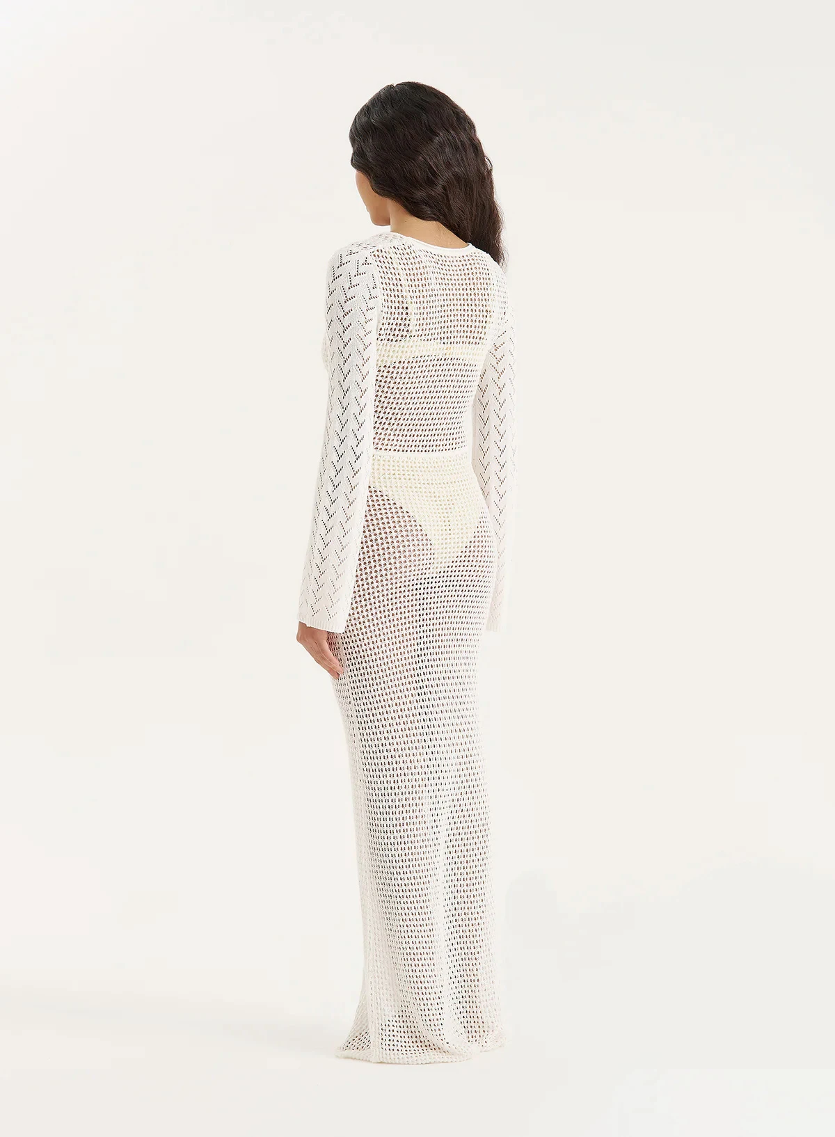 Women Sexy White Knit Swimsuit Cover Up Deep V-neck Tie Hollow Out Long Sleeve Beach Maxi Dress 2025 Summer Holiday Outfit K186