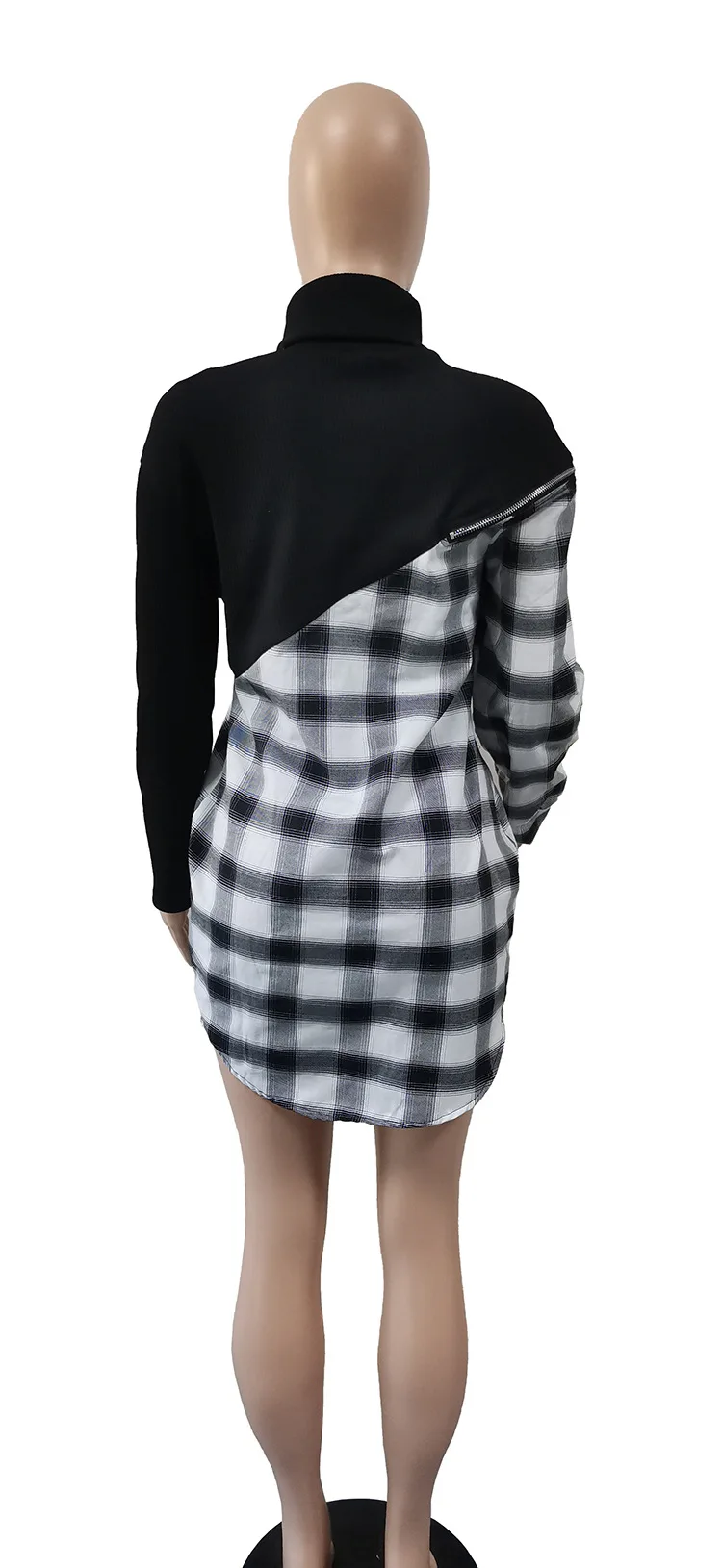 Women Short Plaid Shirt Dress Long Sleeve Fall Asymmetric Office Casual Fashon 2021 Fall Mini Dress