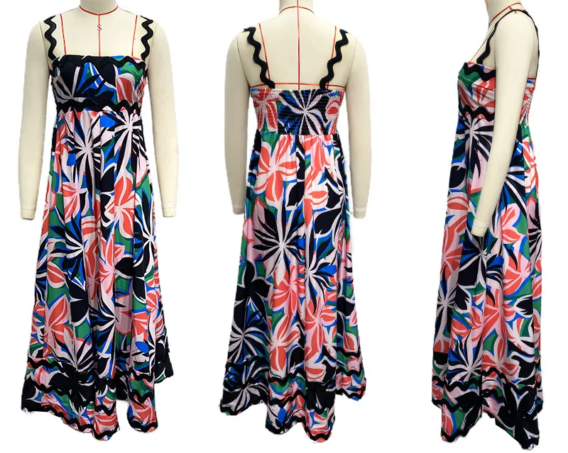 Women Sleeveless Halter Dress Printed Solid Color Long Spring Summer New Loose Straight Casual Daily Long Dress