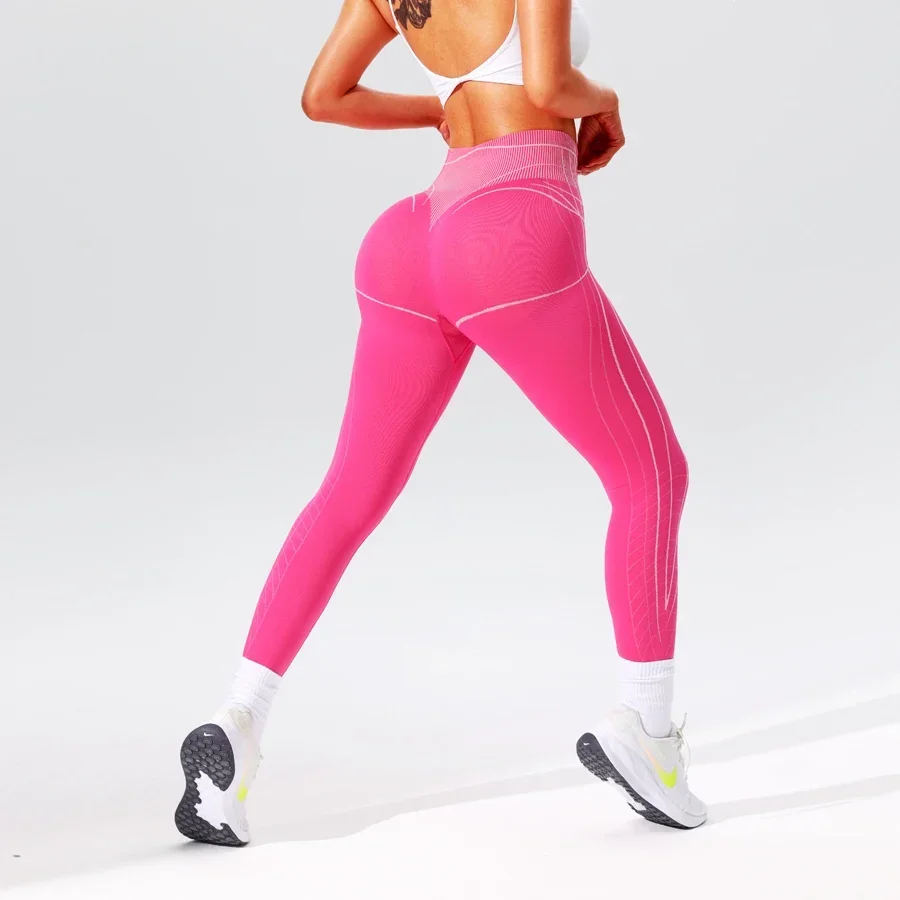Women Sports Stripe Leggings Seamless Yoga Pants Sportswear Woman Gym Trousers High Waist Tummy Control Fitness Workout Leggings