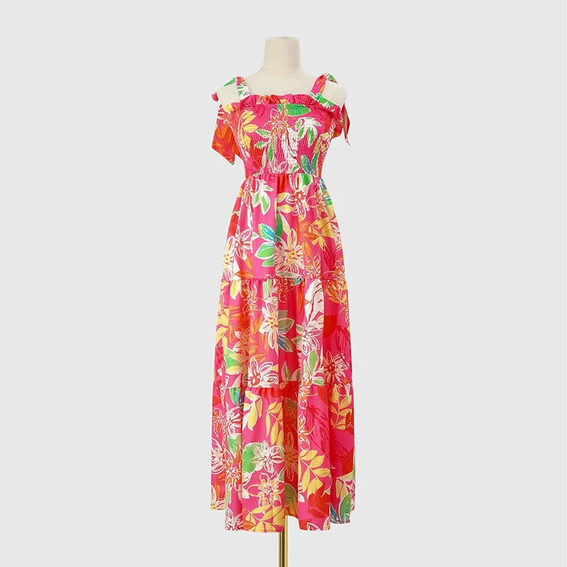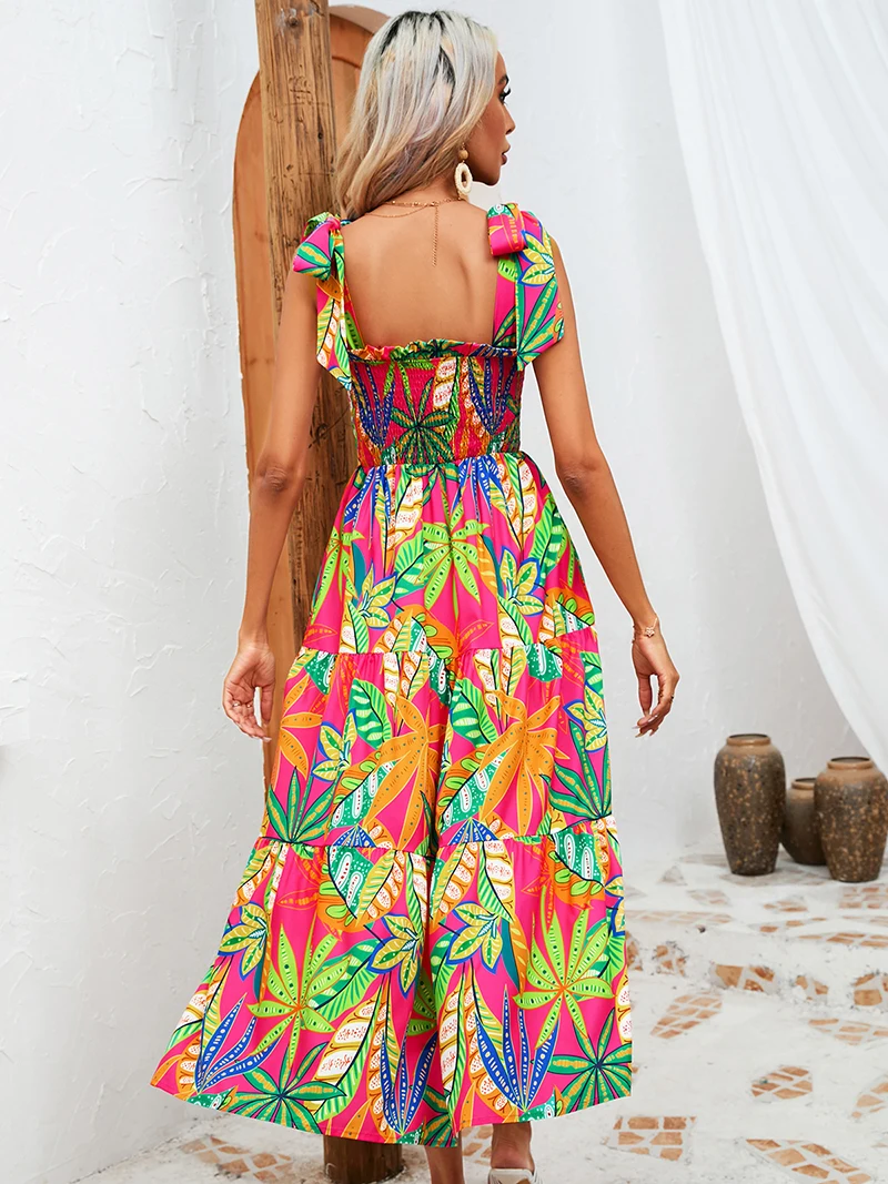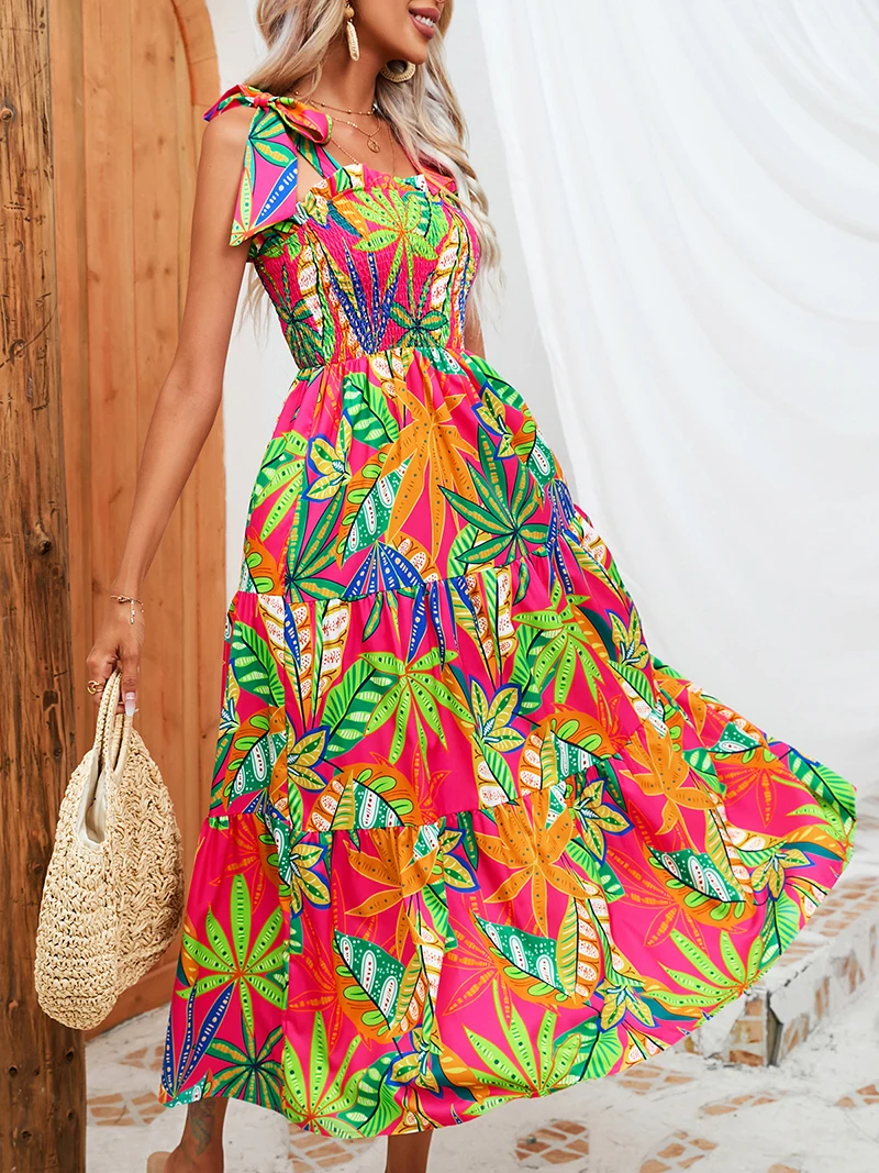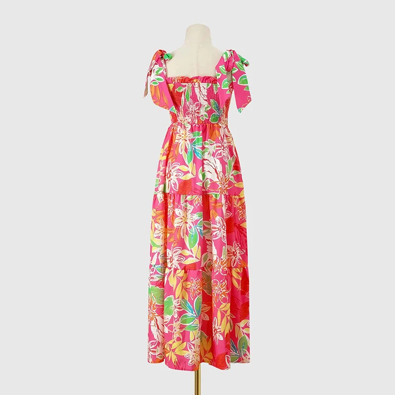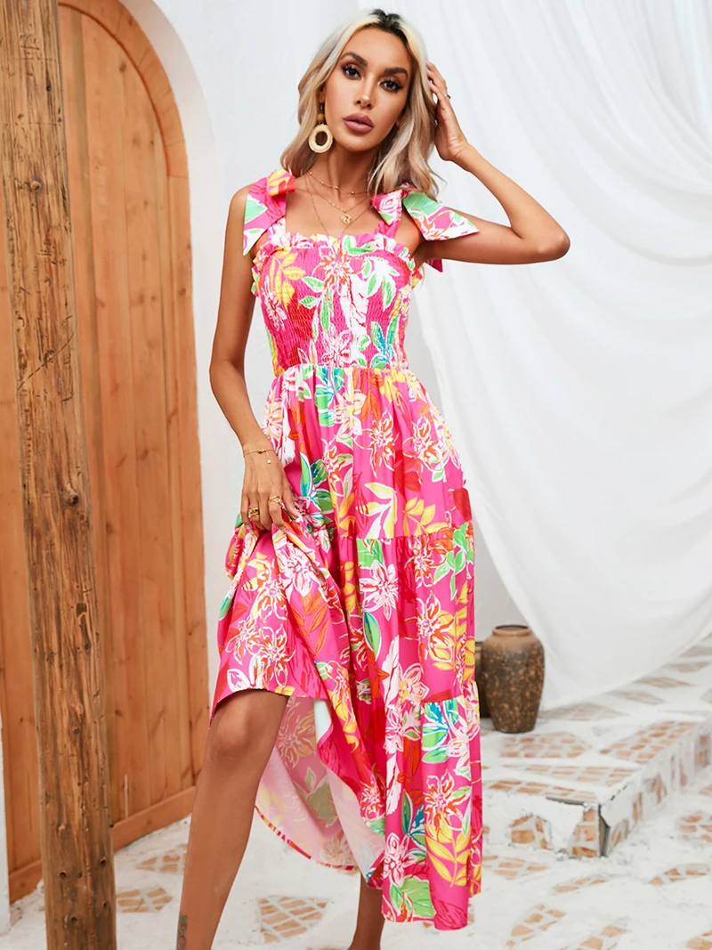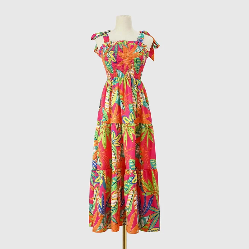 Women Strapless High Waist Dress Floral Printed Casual Summer Fashion Hot Sale Beach Long Midi Dresses Lace-up Sexy Party Robes
