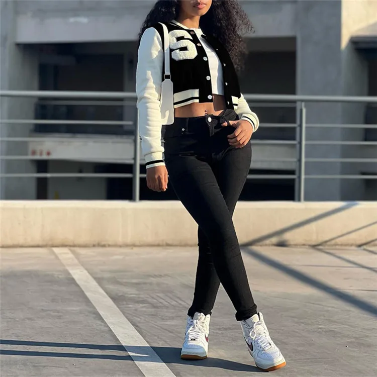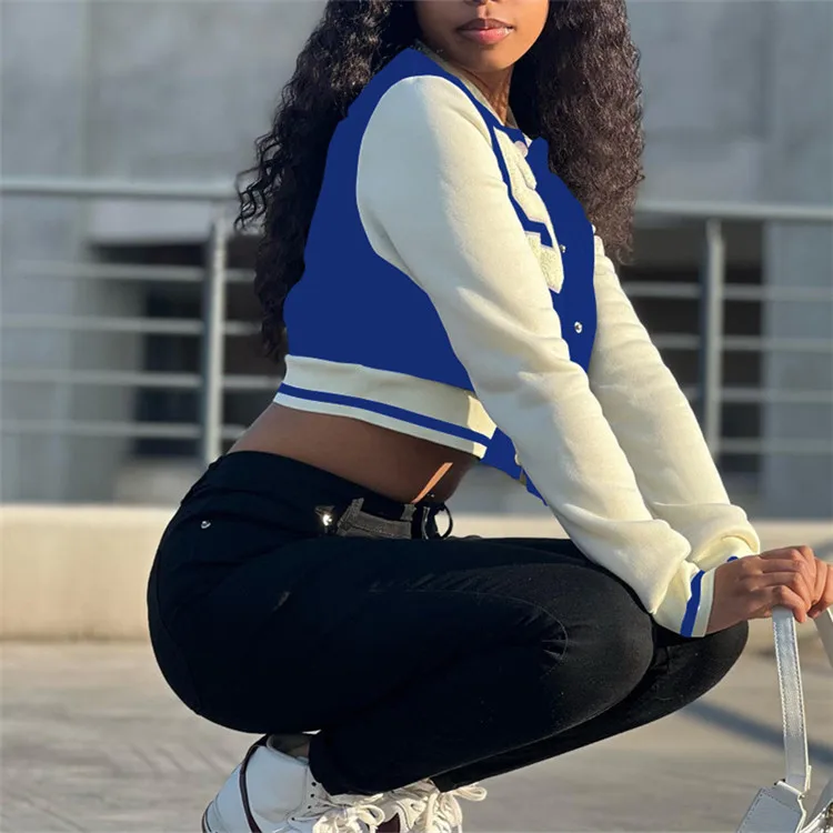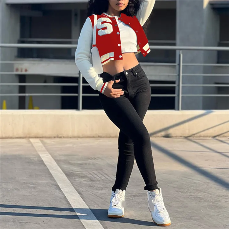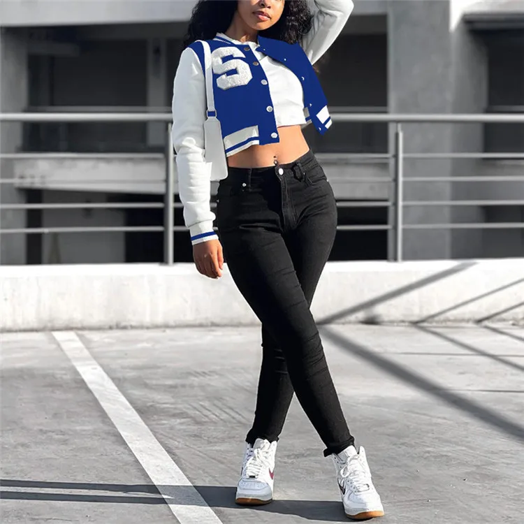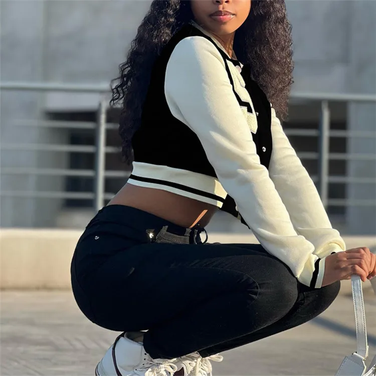 Women Striped Side Single Breasted Long Sleeve Baseball Sport Jacket Fashion 2023 Autumn Winter Moto Biker Jacket