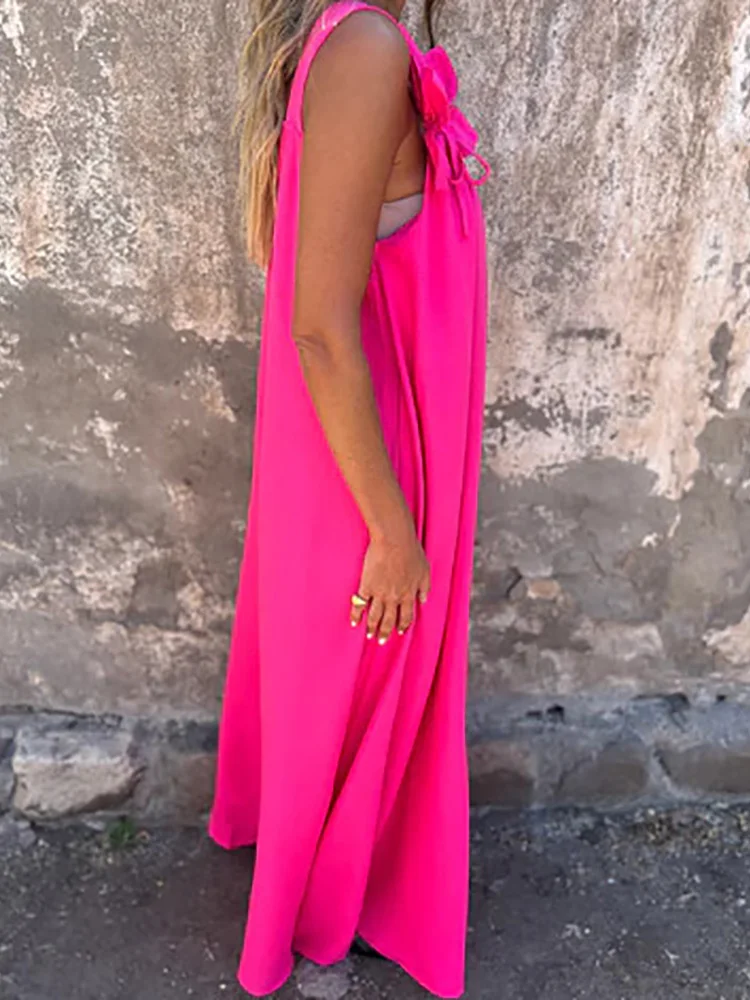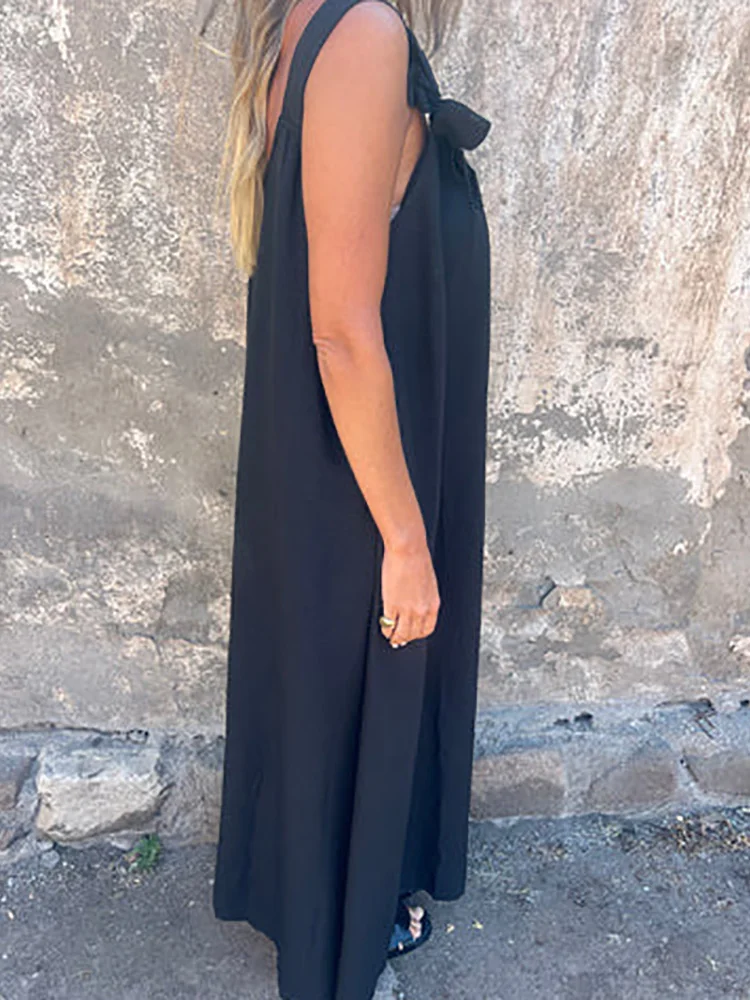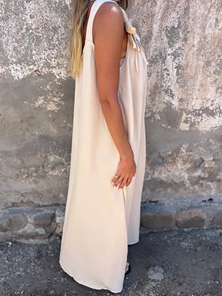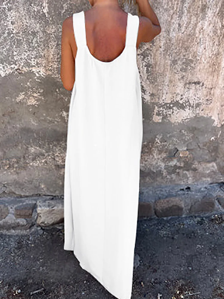 Women Summer Sleeveless Patchwork Party Dress, Solid O Neck Simple Fashion Maxi Dress, 2025 Loose Elegant Ladies Dress Vestidos