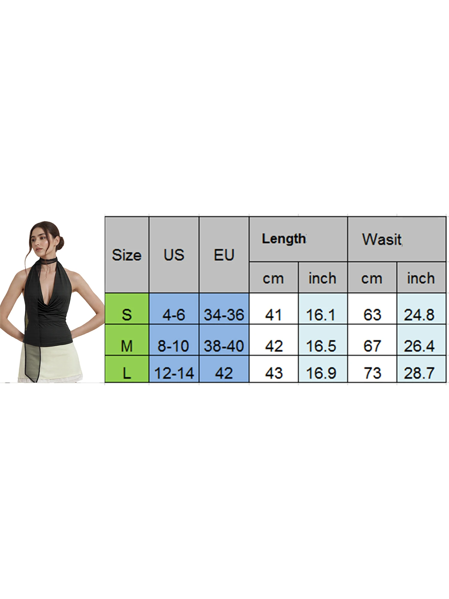 Women Tank Tops Solid Color Deep V-Neck Cowl Neck Halter Neck Casual Vests Summer Sleeveless Tops StreetwearSize (cm)