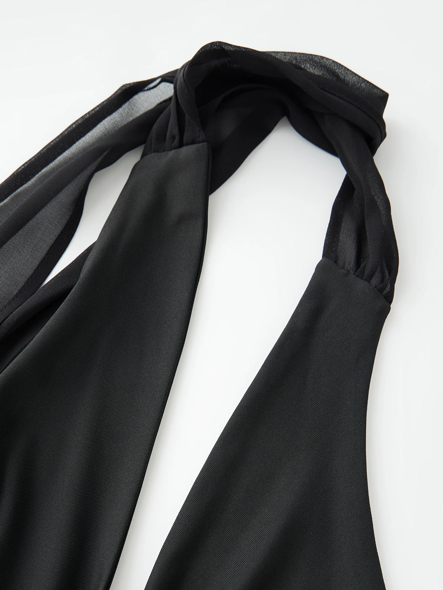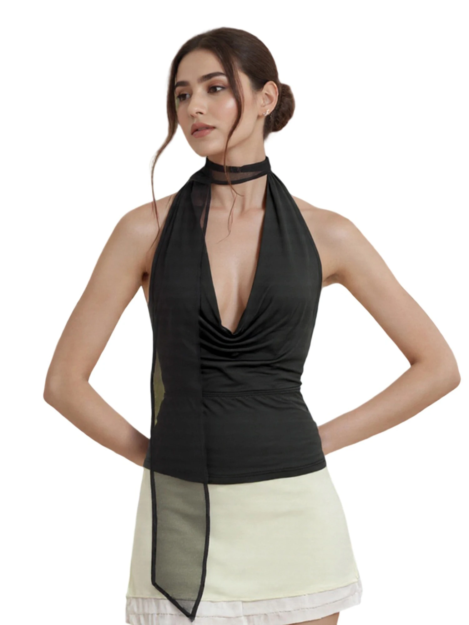 Women Tank Tops Solid Color Deep V-Neck Cowl Neck Halter Neck Casual Vests Summer Sleeveless Tops Streetwear