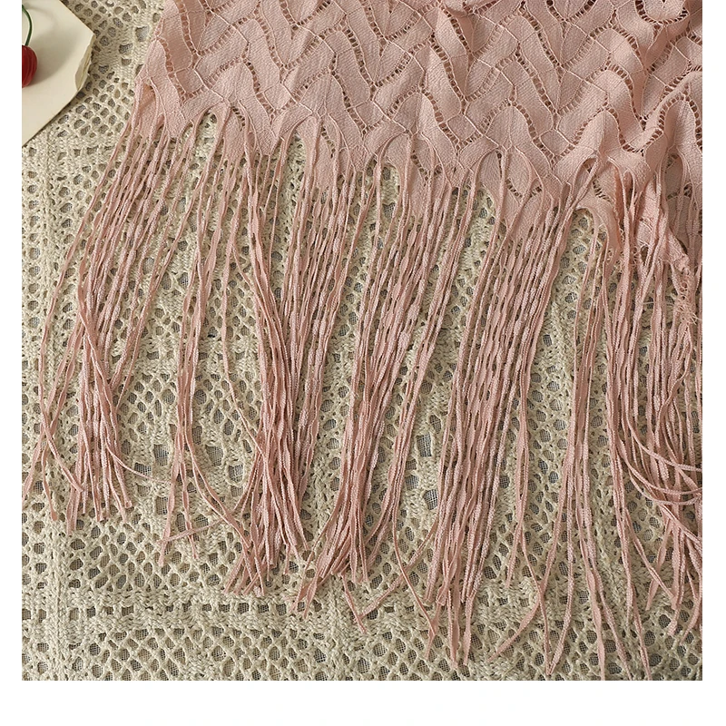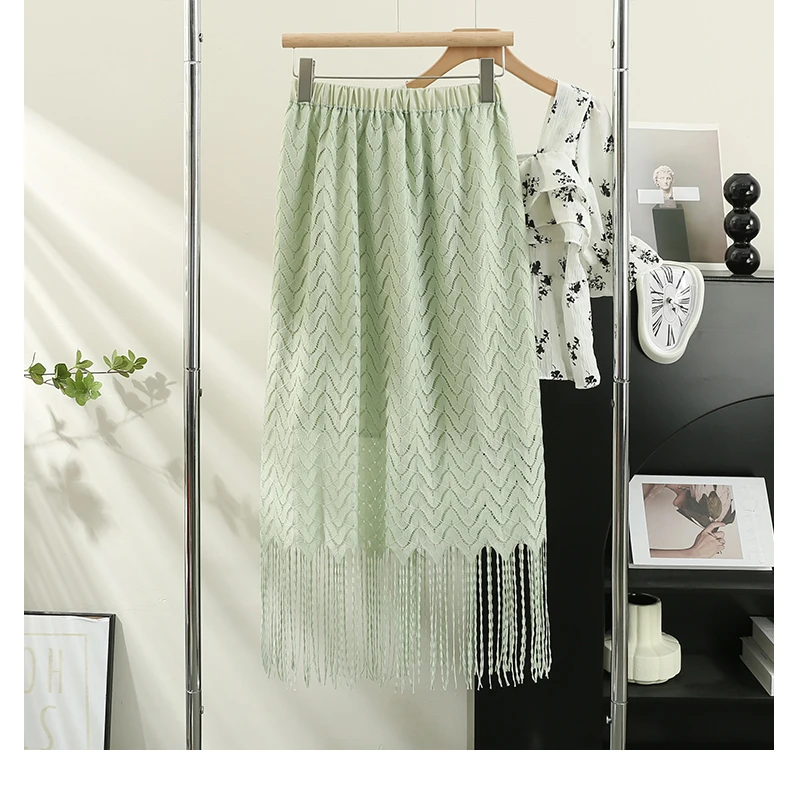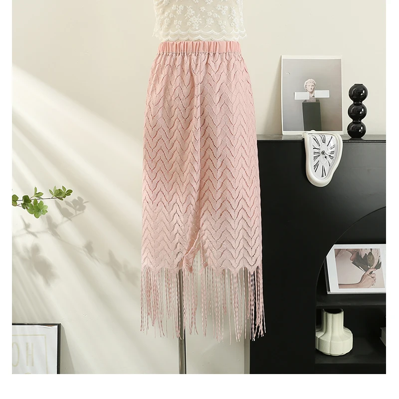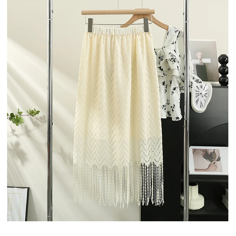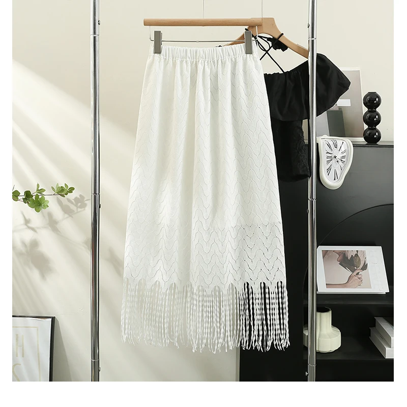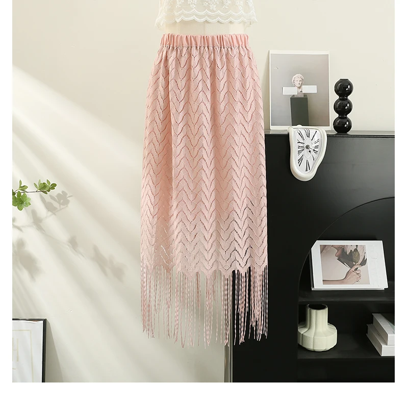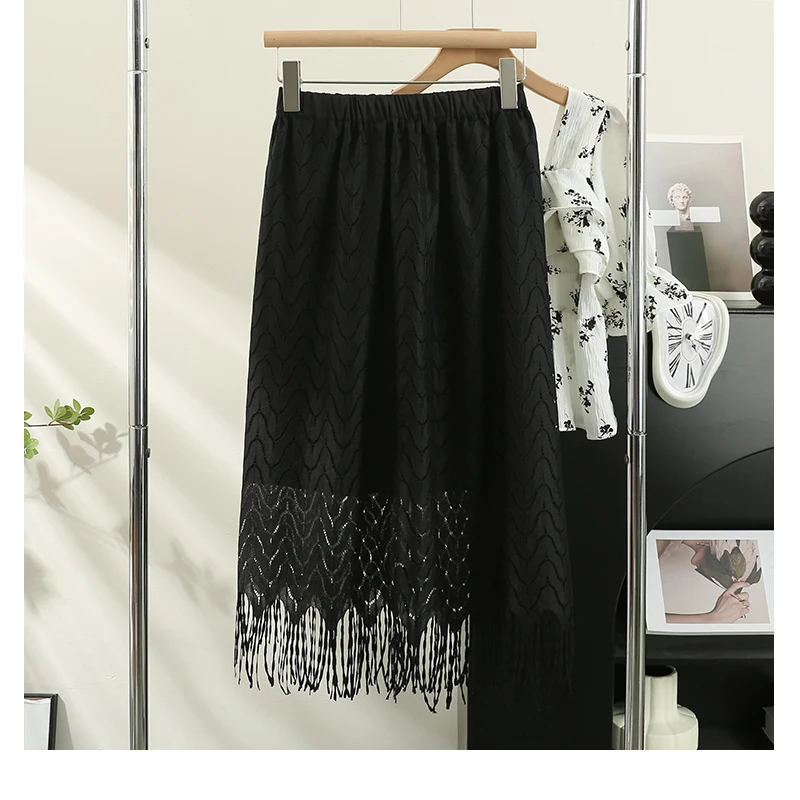 Women Tassel Lace Skirt Elegant Fashion Vintage Plain Hollow Out Midi Skirts Female New Fashion Spring Autumn Faldas Jupes Robe