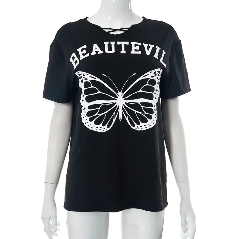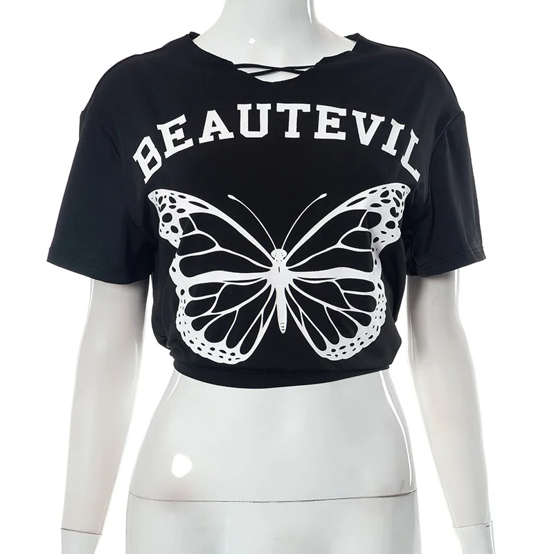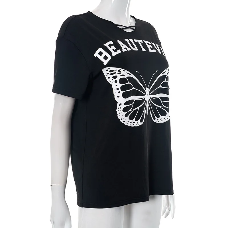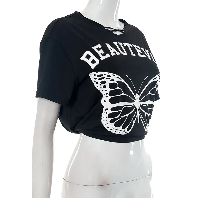 Women Top New Summer Casual Loose O Neck Butterfly Graphic T Shirts Short Sleeves Crop Top