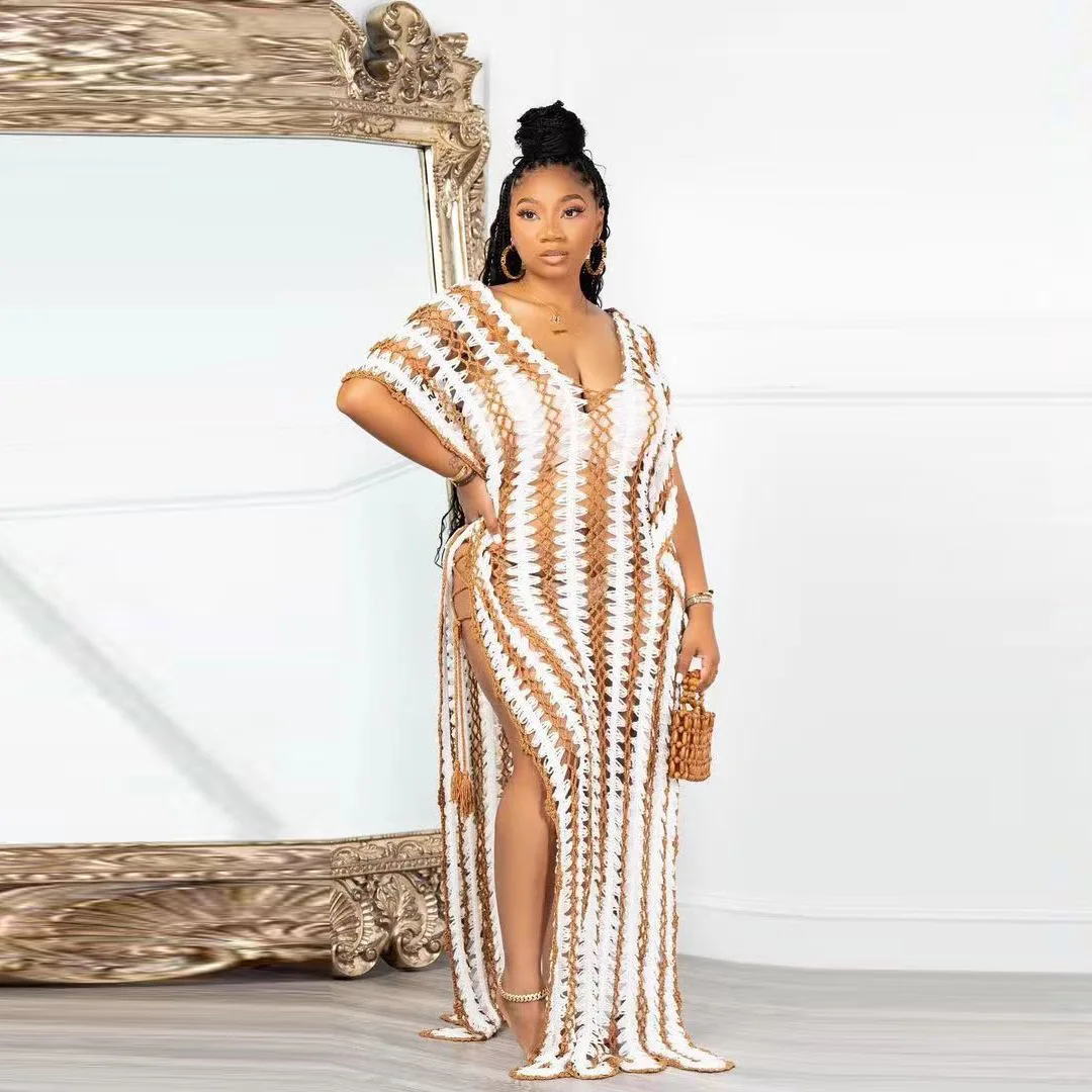 Women trendy beach cover up split maxi dresses summer beach 2024