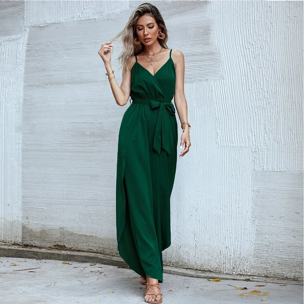 Women Work Out Cloth One Piece Solid Color Casual Pant Women Wide Leg Pants