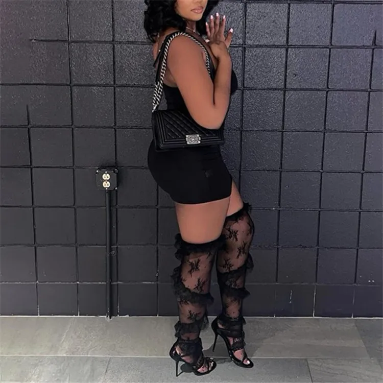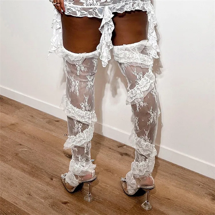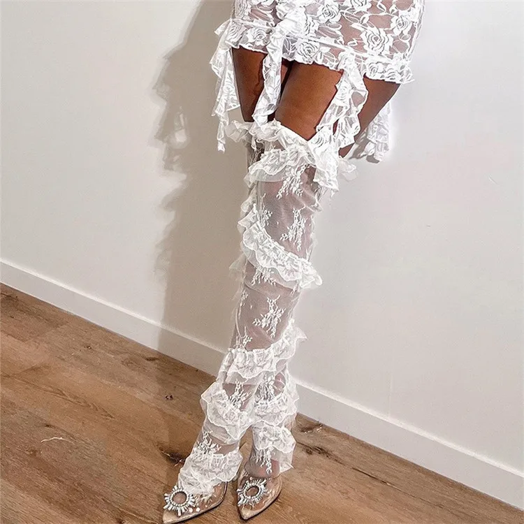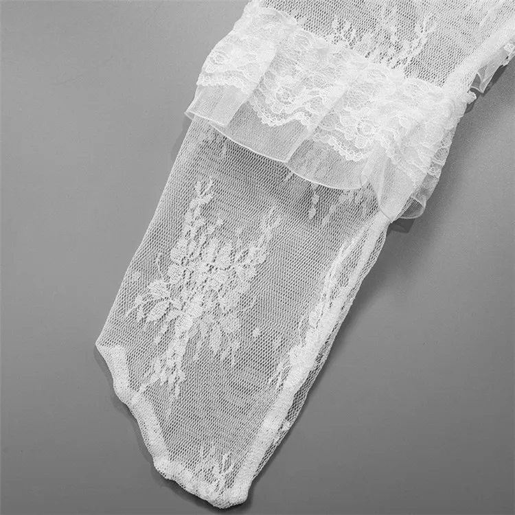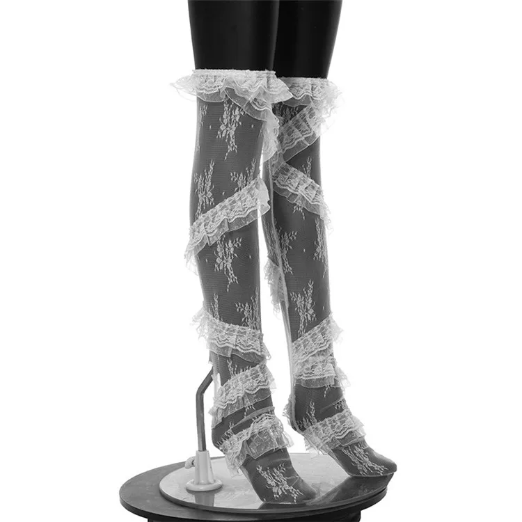 Women Y2K American Reto Hotsweet Summer Lace Thigh High Socks Sheer Ruffle Floral Stockings Socks